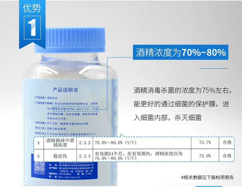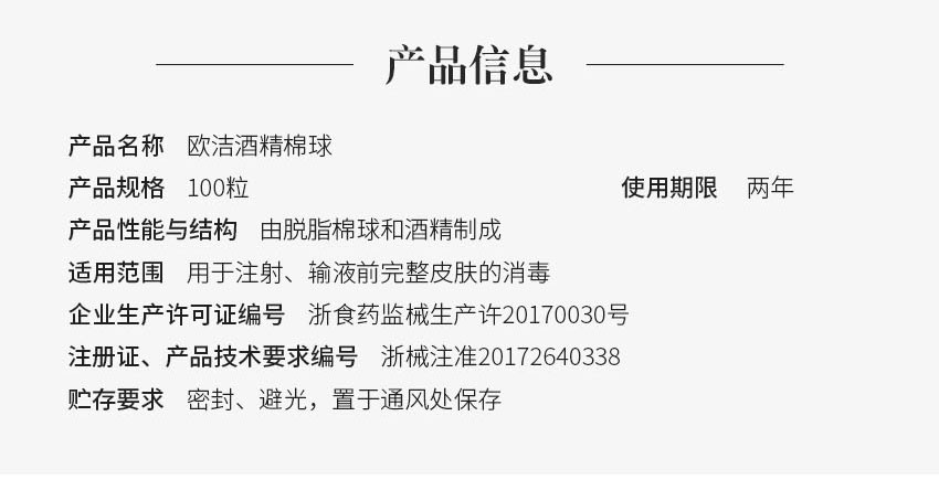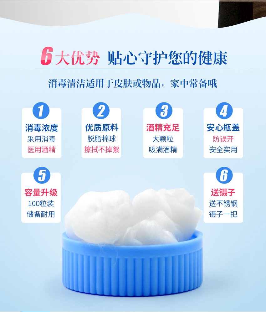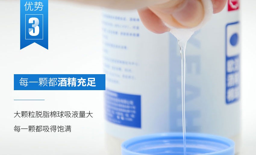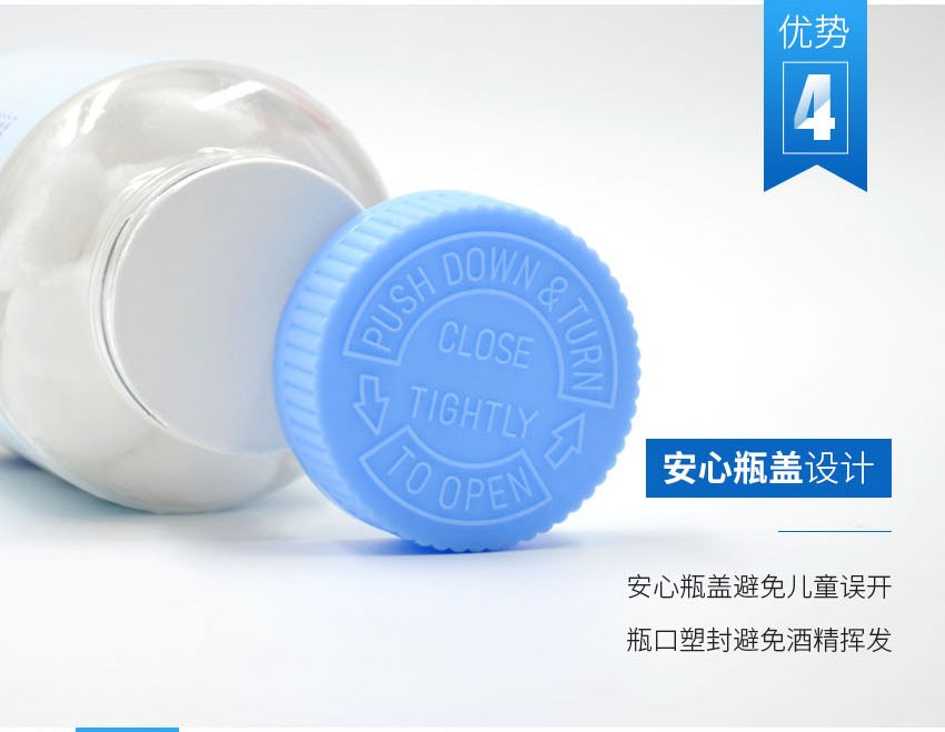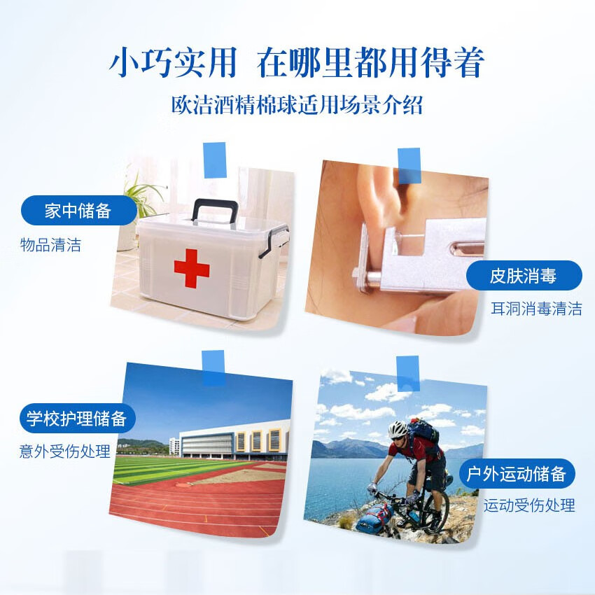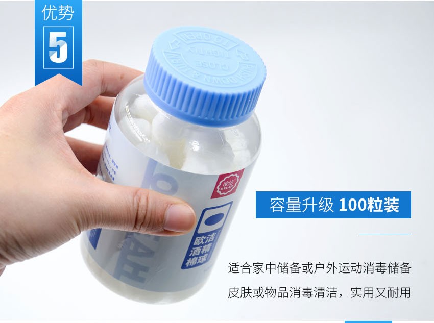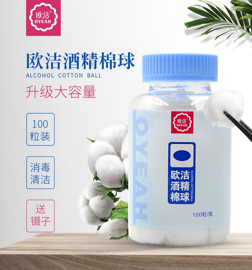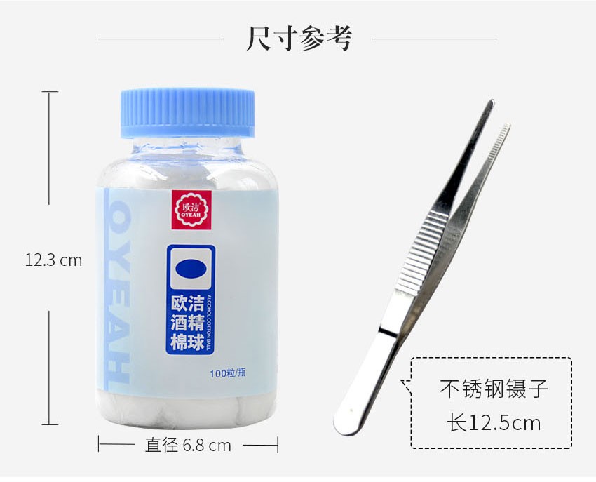 欧洁医用酒精消毒棉球 伤口清洁家用一次性棉片75度杀菌100粒瓶装罐装