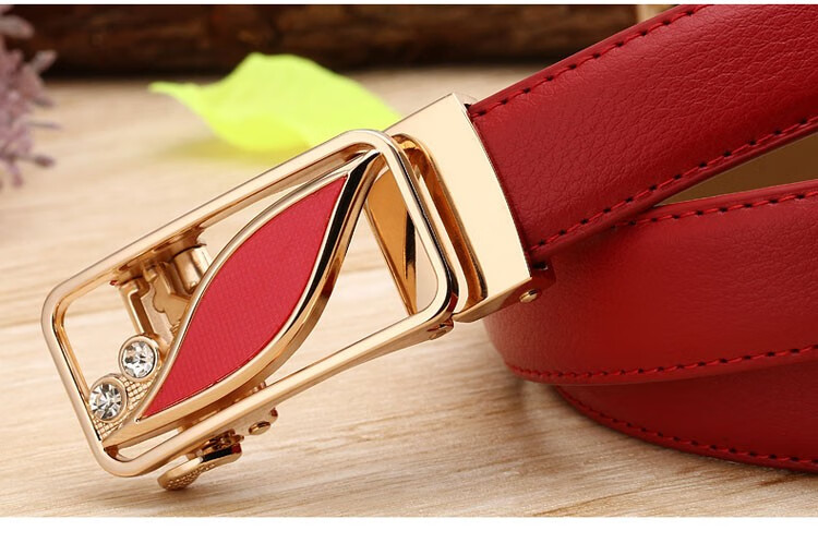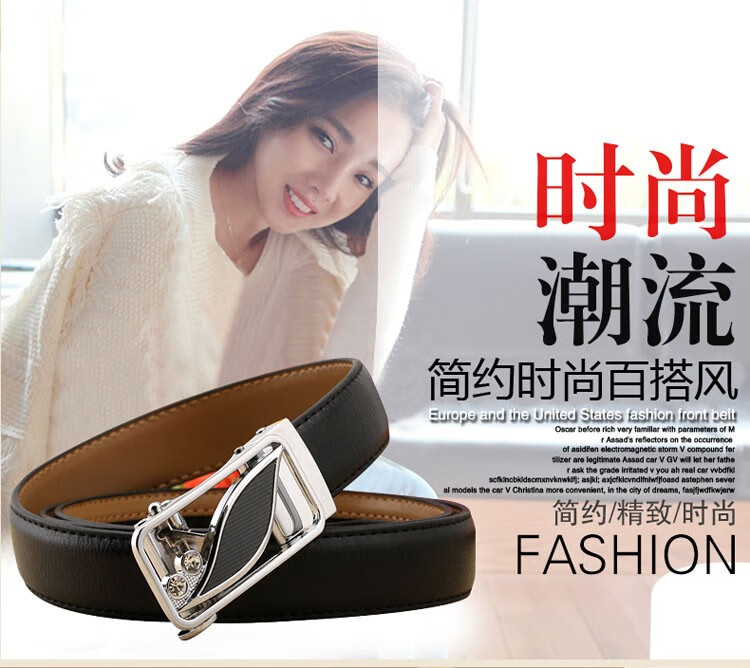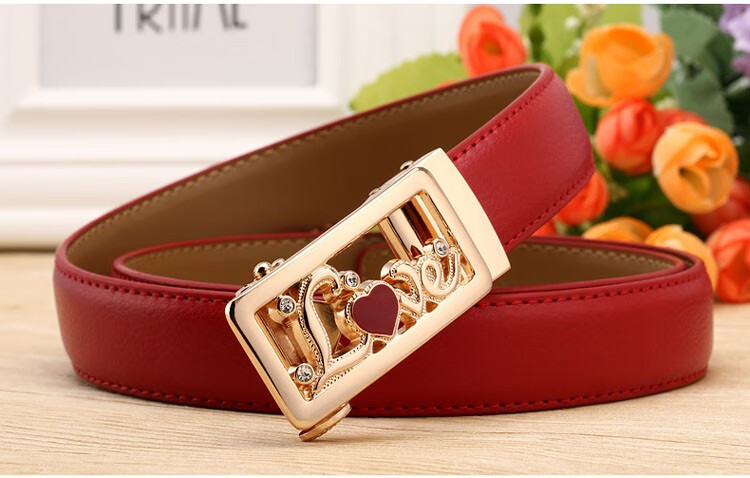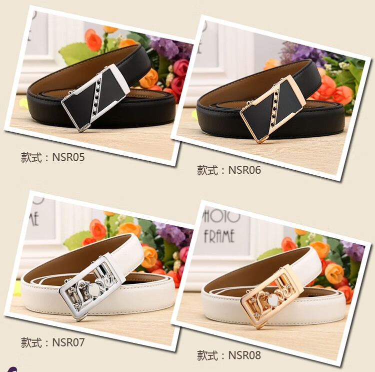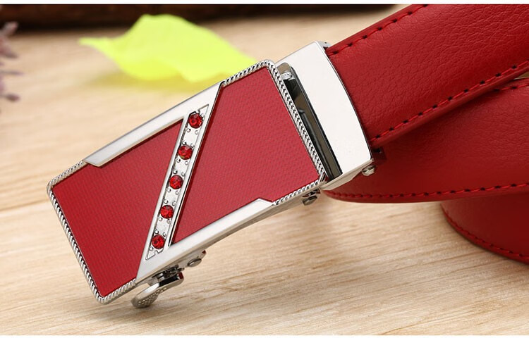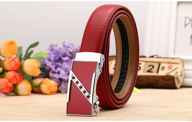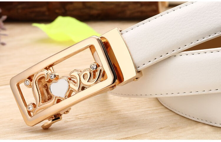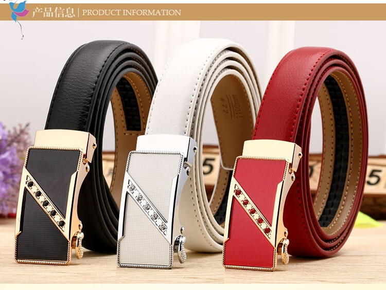 真妮诗新款女士真皮皮带休闲百搭二层牛皮荔枝纹自动扣红色腰带女 N2000-8【白色荔枝纹】 125cm
