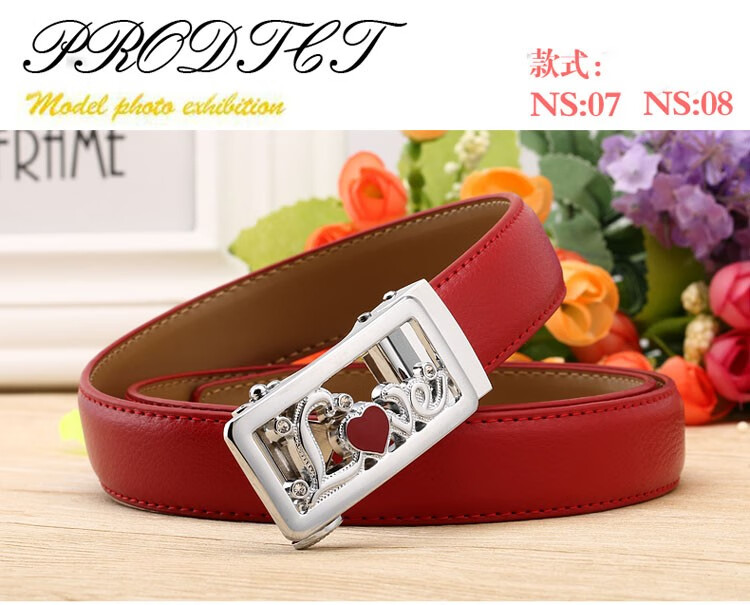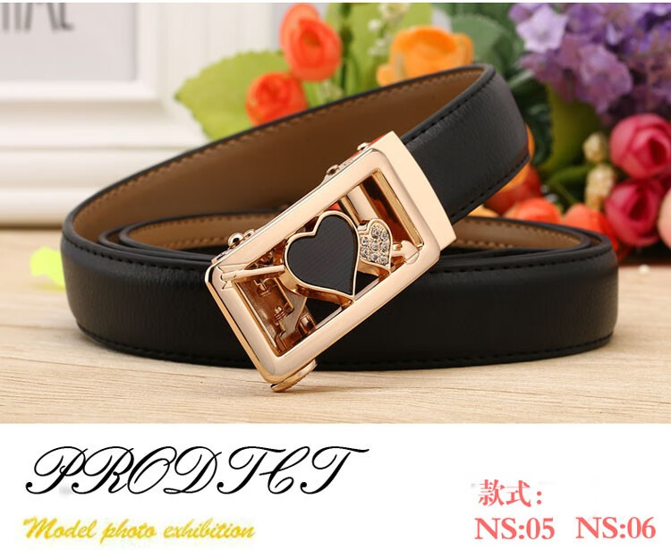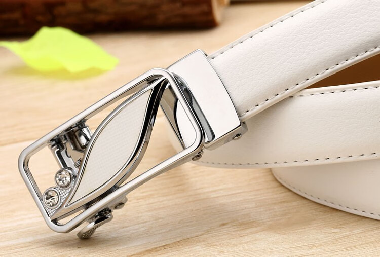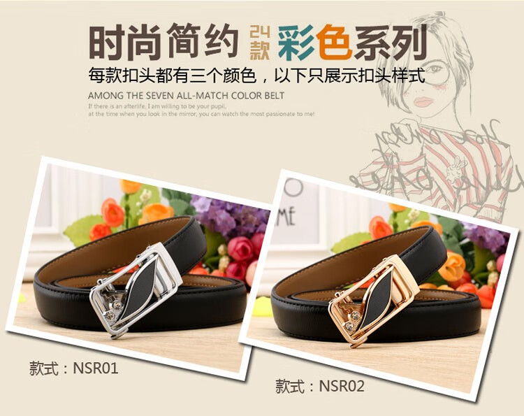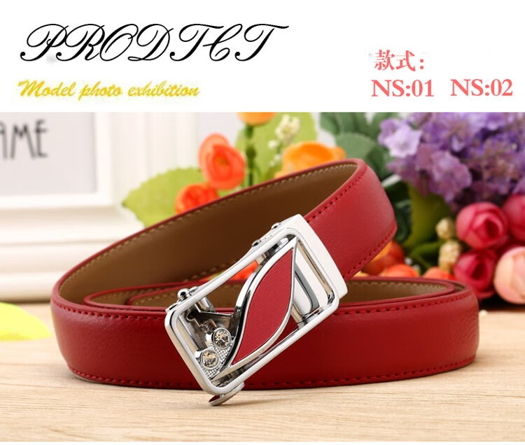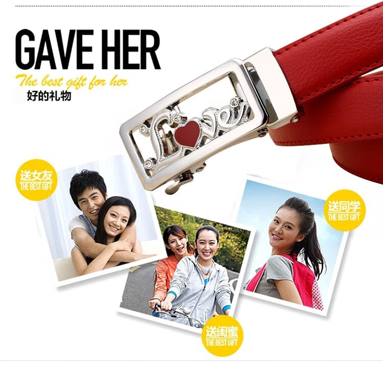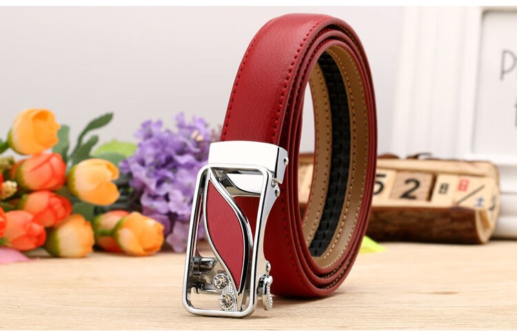 真妮诗新款女士真皮皮带休闲百搭二层牛皮荔枝纹自动扣红色腰带女 N2000-8【白色荔枝纹】 125cm