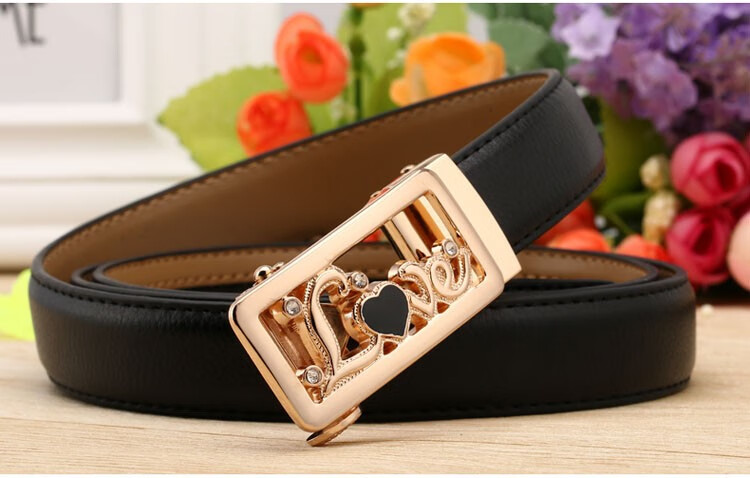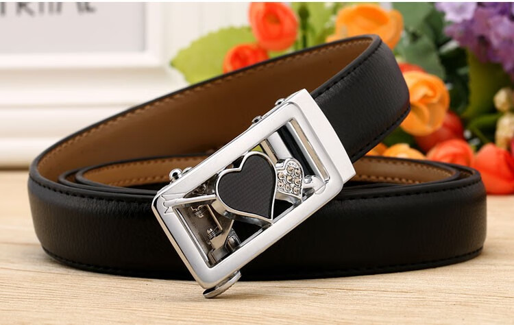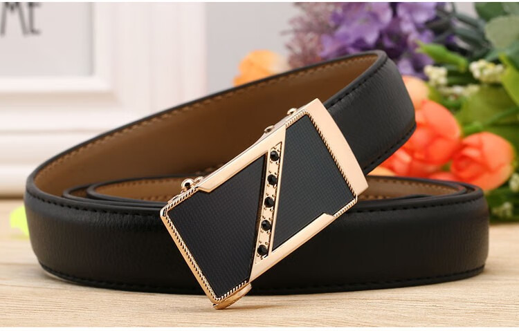 Caluom Kaiol品牌皮带男真皮自动扣男士腰带头层牛皮裤带情人节礼物送男友 【专柜礼盒】8035A玫瑰金色/内穿式 110cm -130cm默认随机(可修剪)