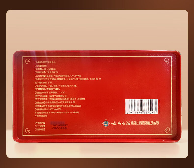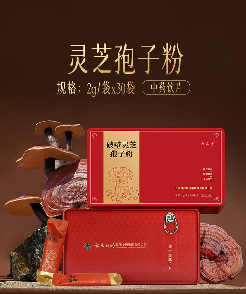 云南白药破壁灵芝孢子粉礼盒装 2g*30 中秋节礼物 1盒