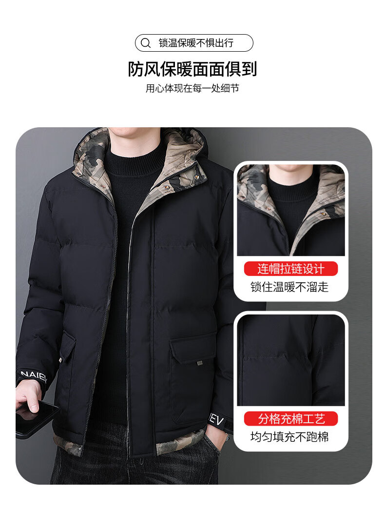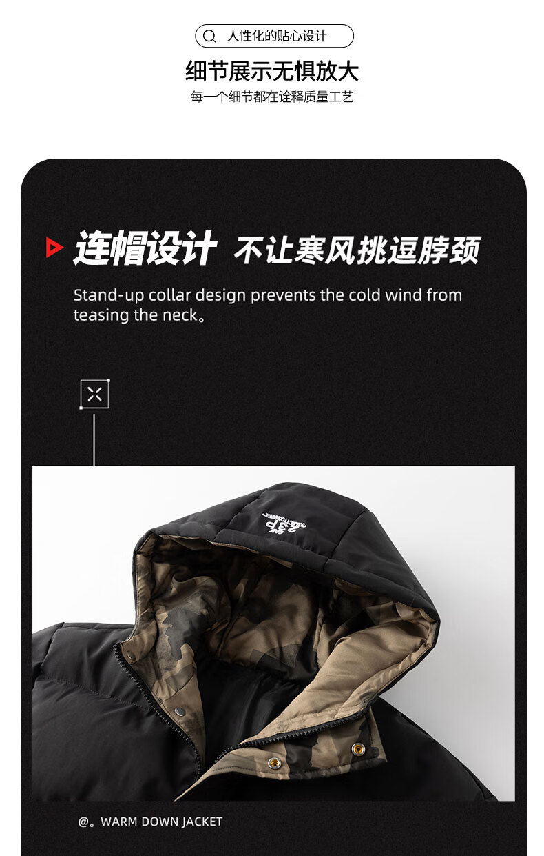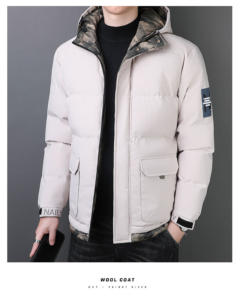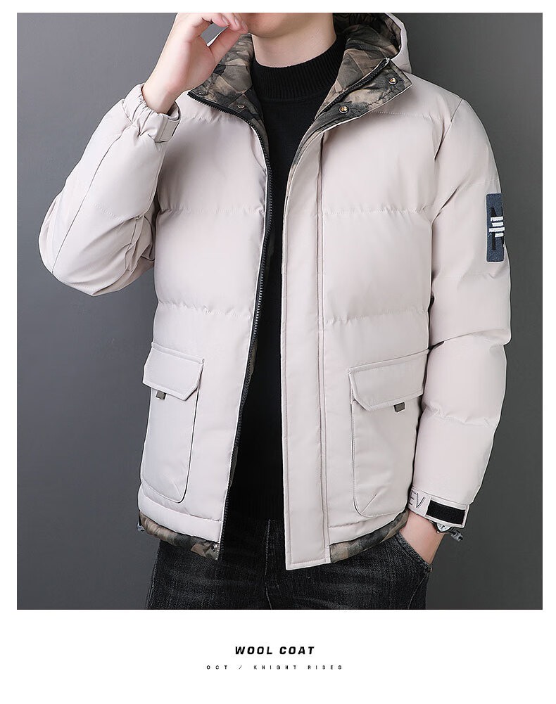 真维斯户外运动冬季加厚棉衣连帽休闲加绒棉服港风宽松休闲外套男 卡其 XL