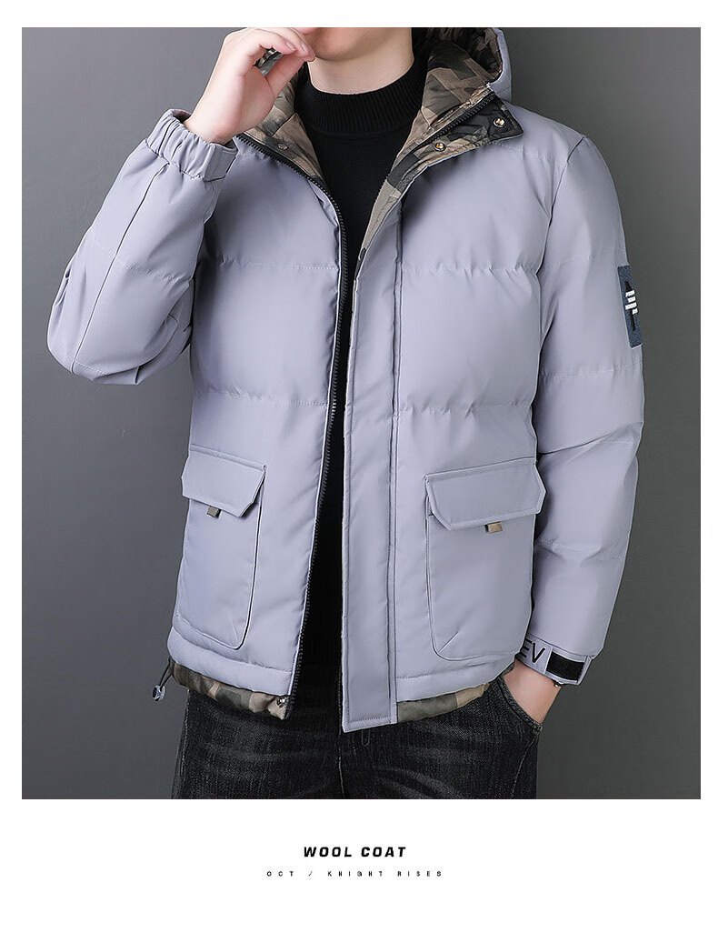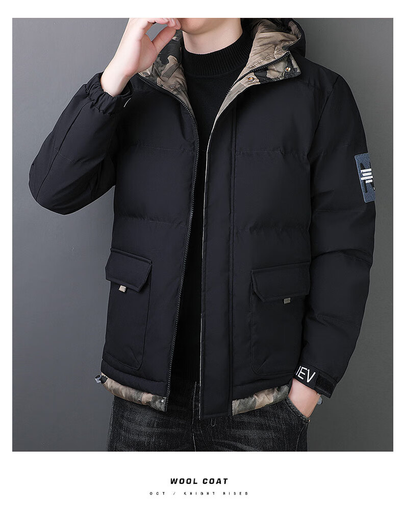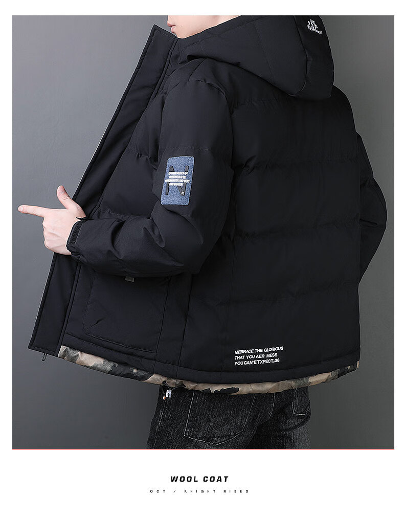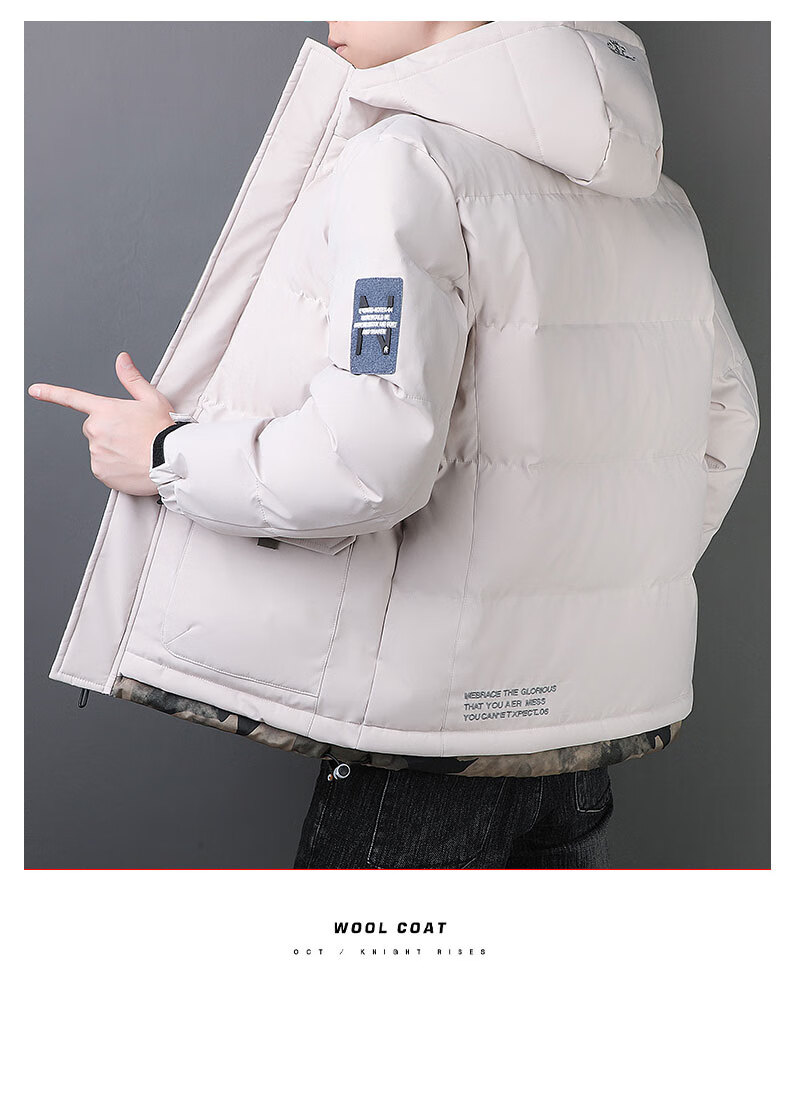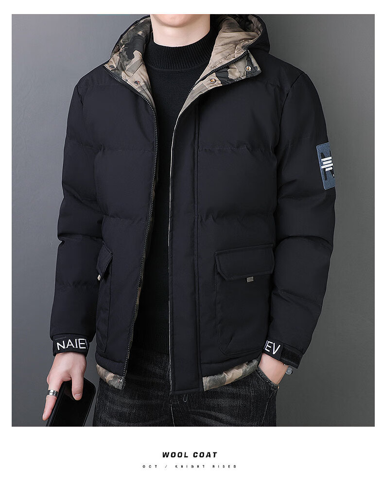 真维斯户外运动冬季加厚棉衣连帽休闲加绒棉服港风宽松休闲外套男 卡其 XL