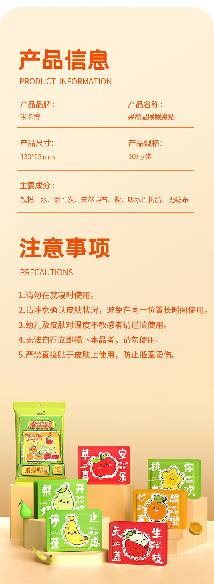 米卡博暖贴暖身贴果燃温暖增强型冬季散寒保暖女大姨妈 30片【好柿花生 温暖全身】