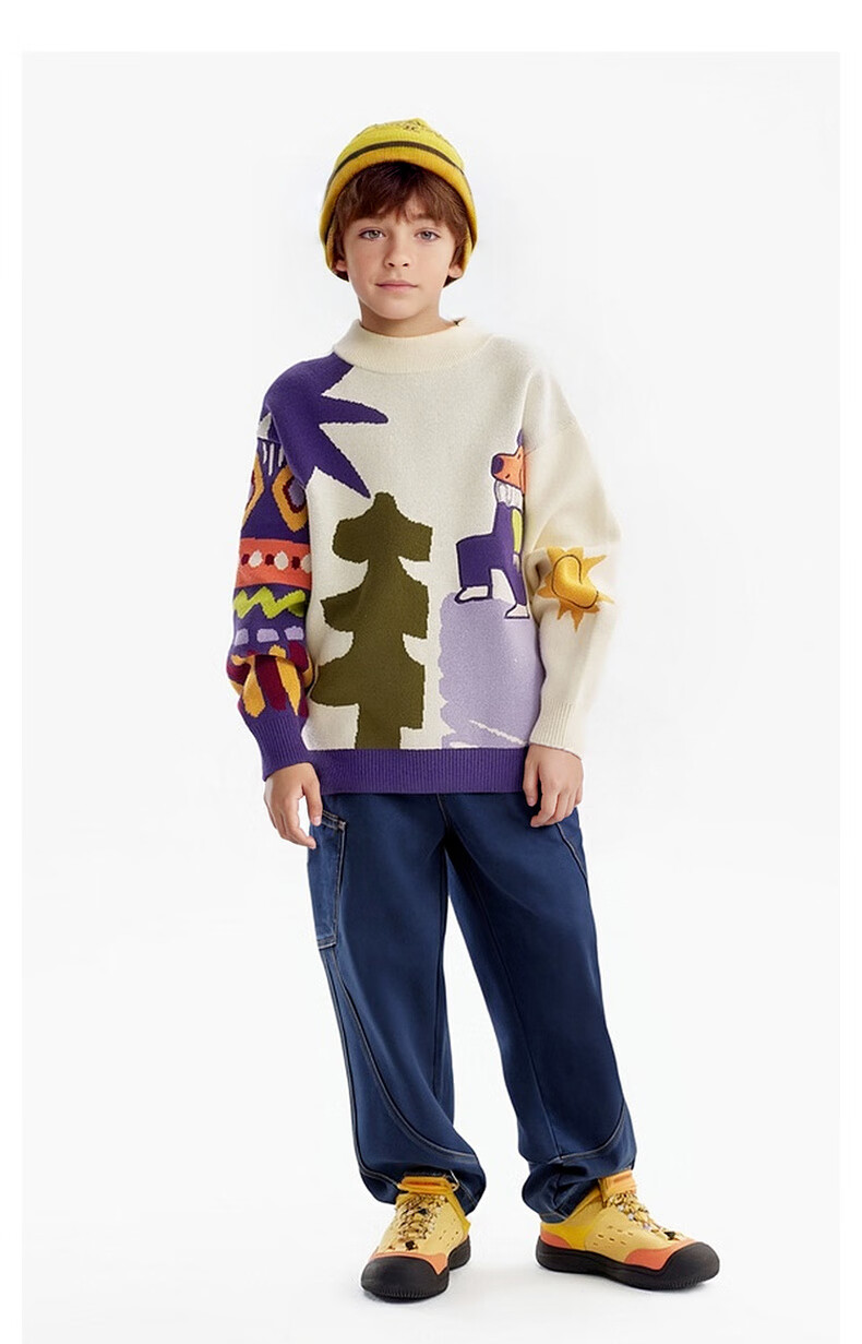 马骑顿(MQD)童装男童满版学院风冬新款内里摇粒绒立领外套 藏青 130