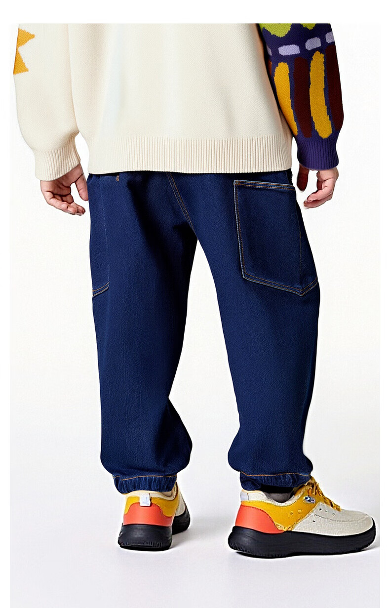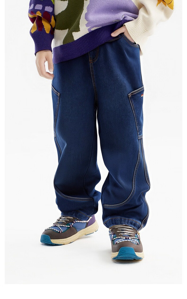 马骑顿【蓄暖】MQD童装男童牛仔裤25冬新款儿童加绒保暖工装降落伞裤潮 深牛仔蓝 140
