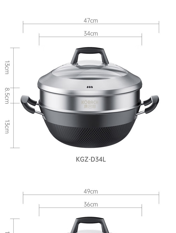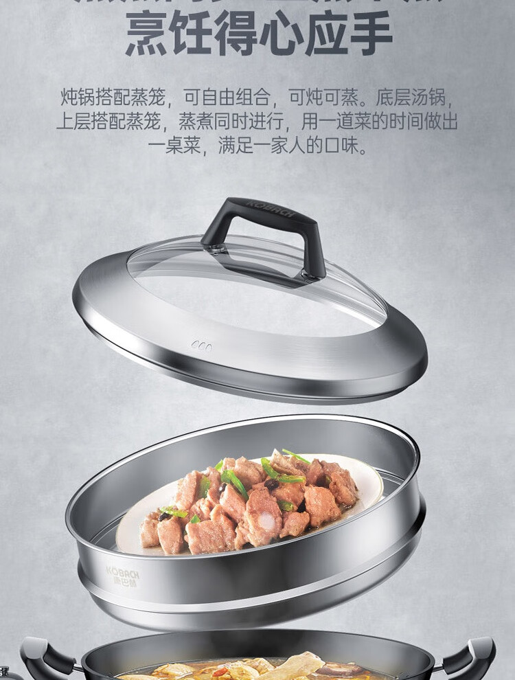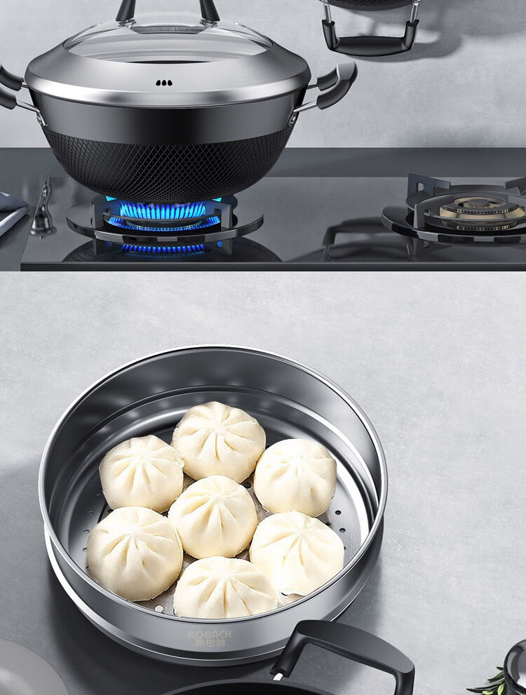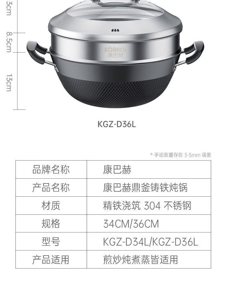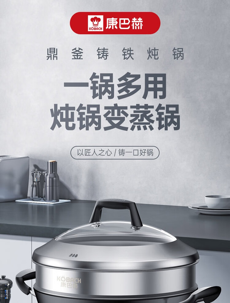 康巴赫鼎釜铸铁炖锅无涂层铁锅家用炒锅 【铸铁锅+蒸屉】 36cm