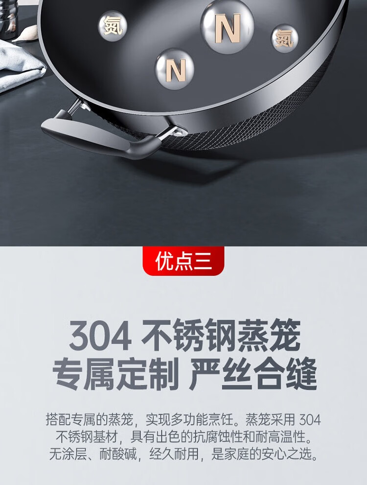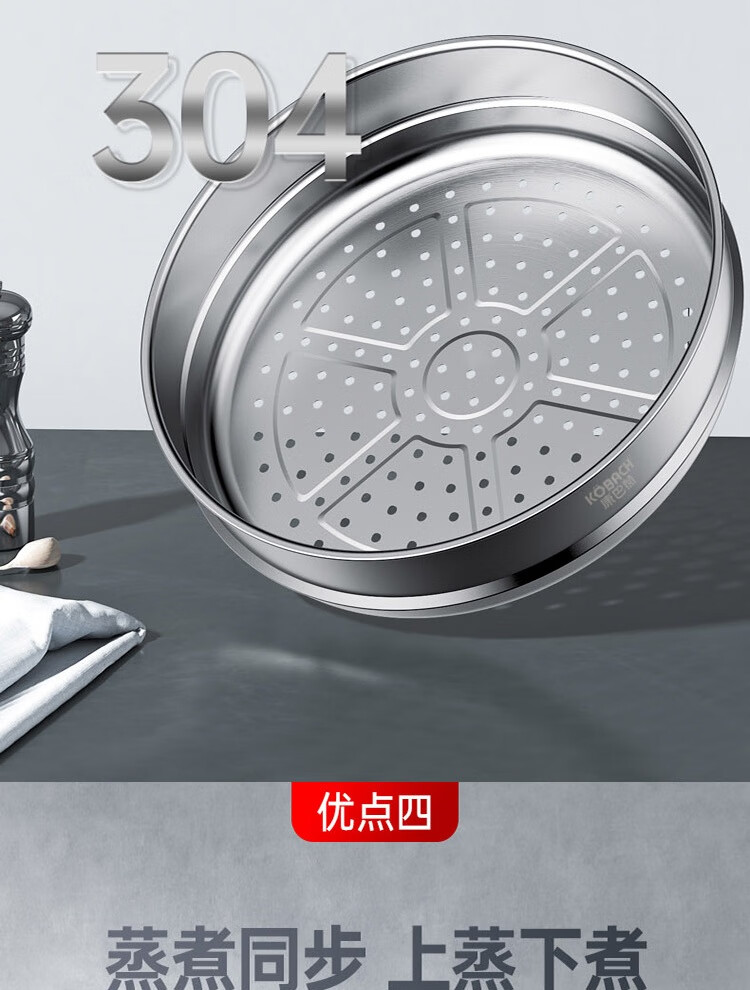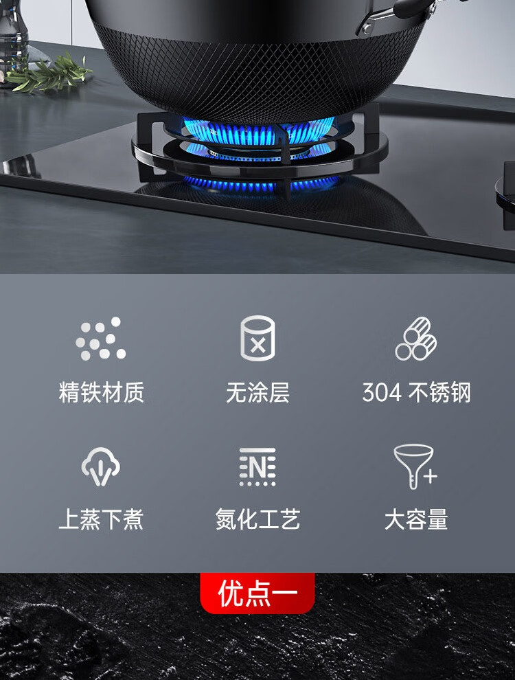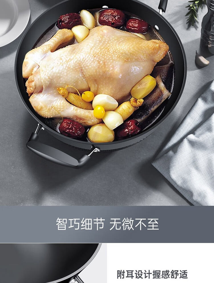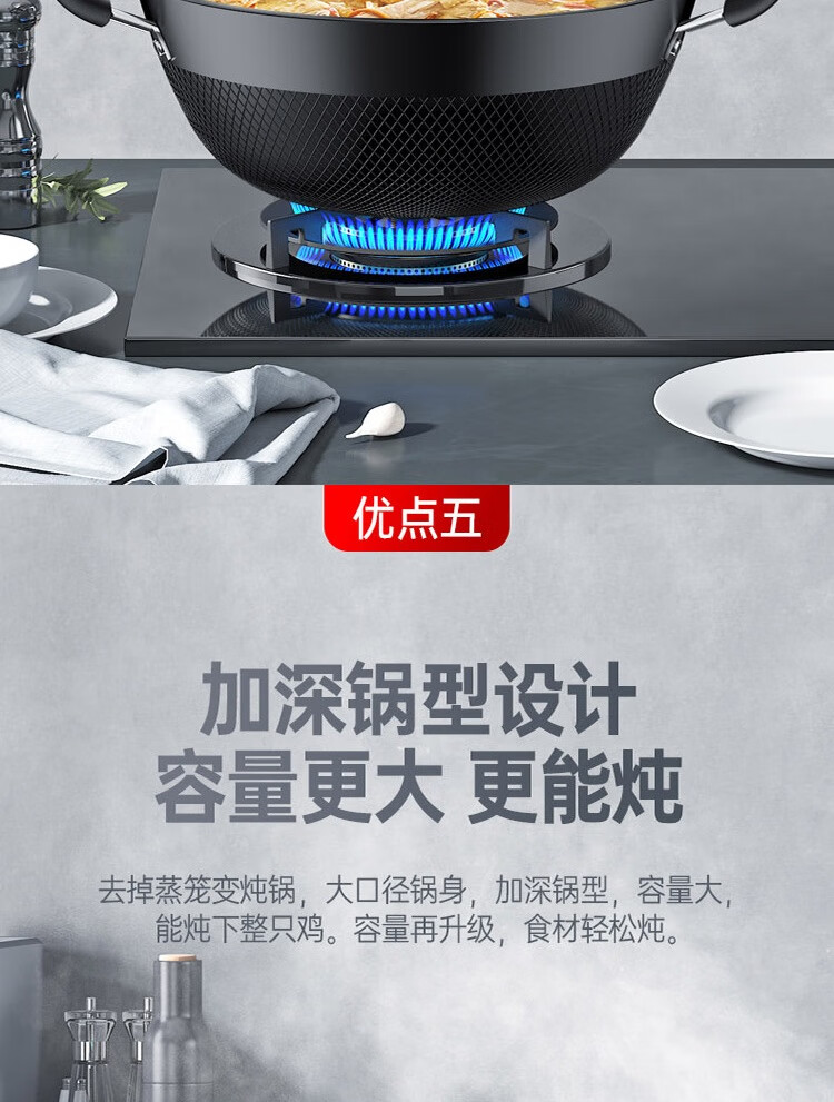 康巴赫鼎釜铸铁炖锅无涂层铁锅家用炒锅 【铸铁锅+蒸屉】 36cm