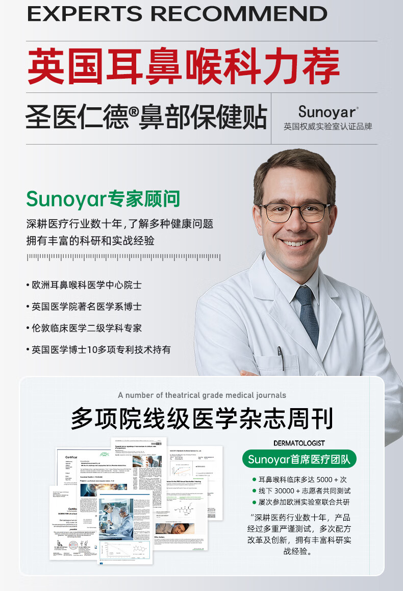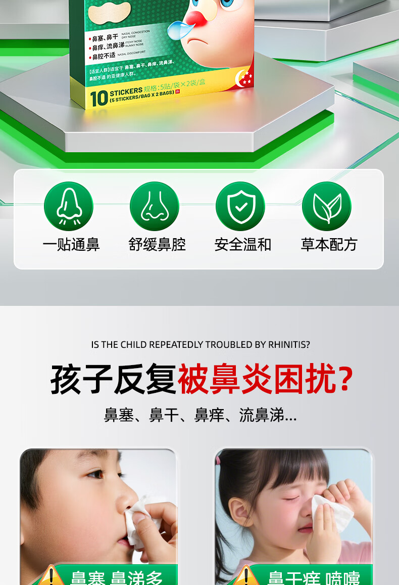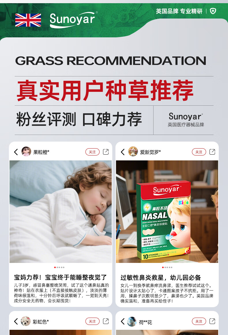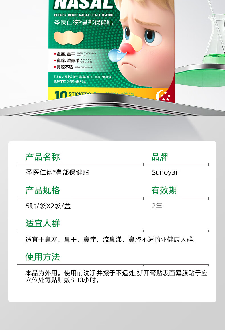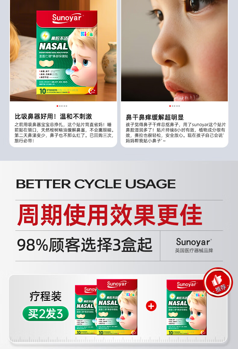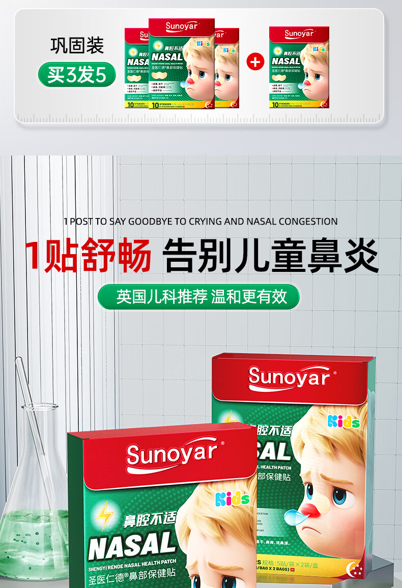 Sunoyar英国儿童鼻炎贴儿童鼻炎舒鼻贴过敏性鼻炎鼻塞鼻窦炎穴位贴 10盒装【买5送5超划算】长效巩固养护鼻腔