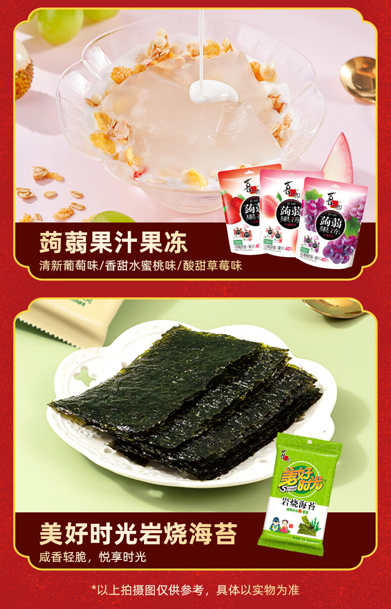 美好时光年货礼盒 零食礼袋海苔果冻零食礼包年货 【年货礼盒+福运礼袋】共2676克