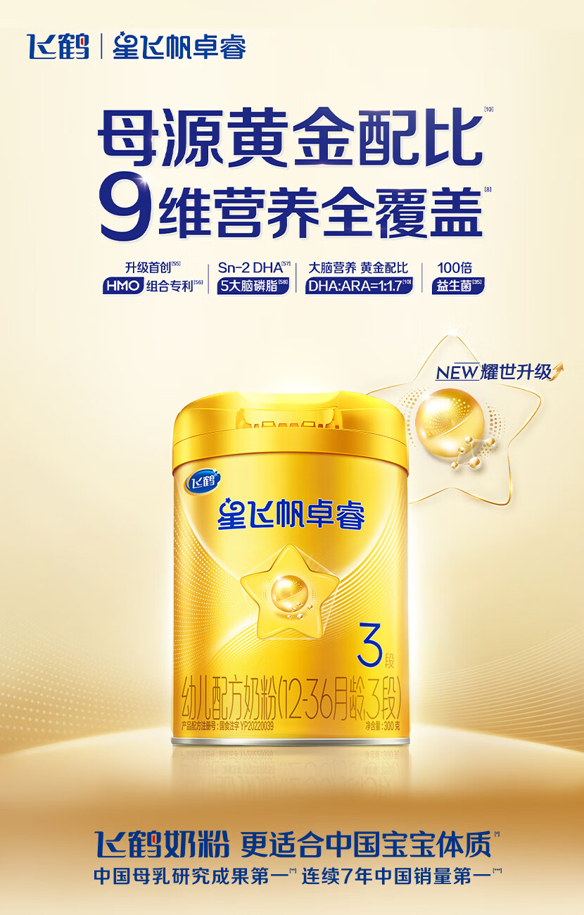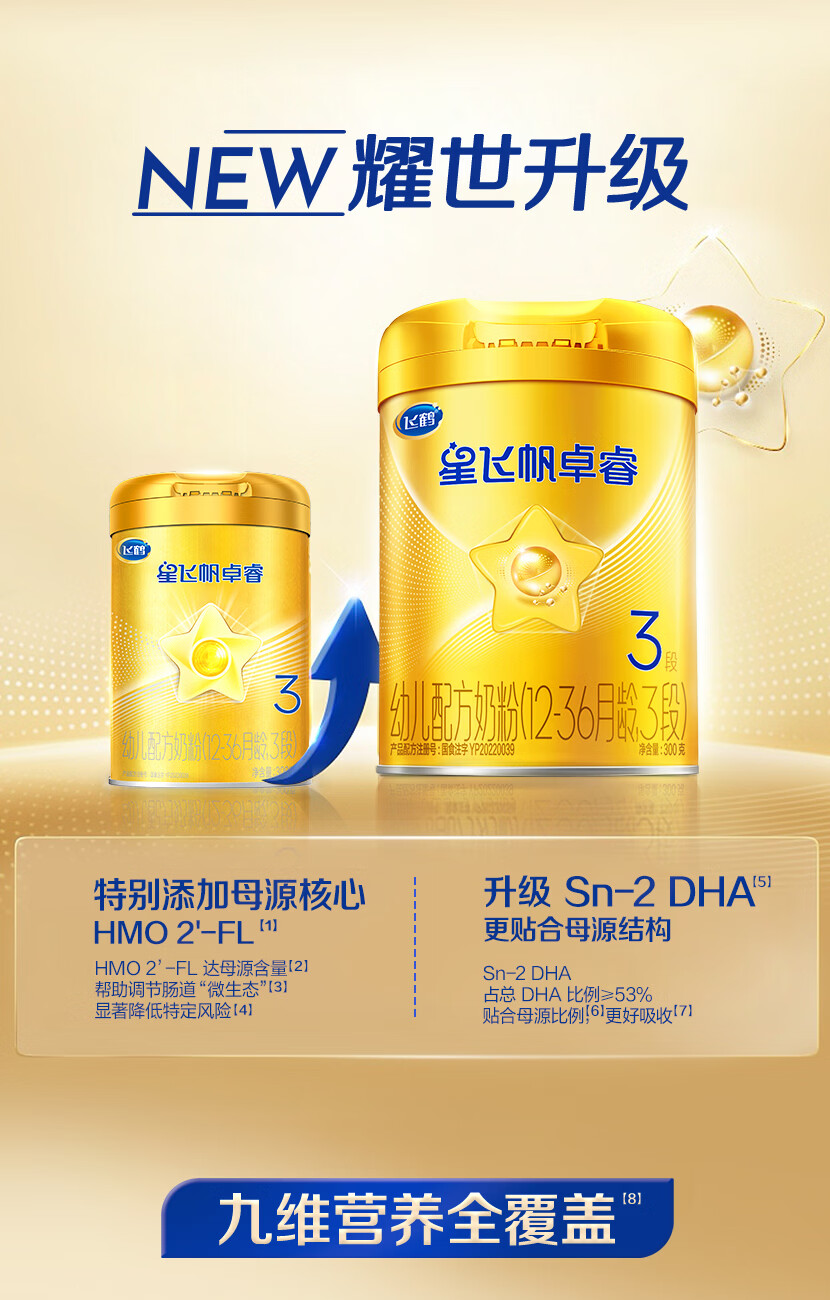 飞鹤星飞帆卓睿 婴幼儿配方奶粉3段(1-3岁)300克 育儿补贴 0元试用