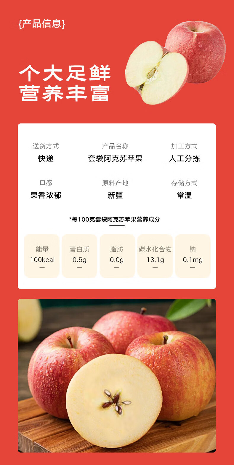 京鲜生新疆阿克苏苹果9斤装单果80mm+ 生鲜水果源头直发包邮