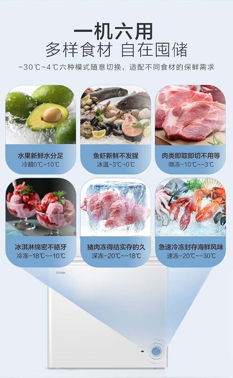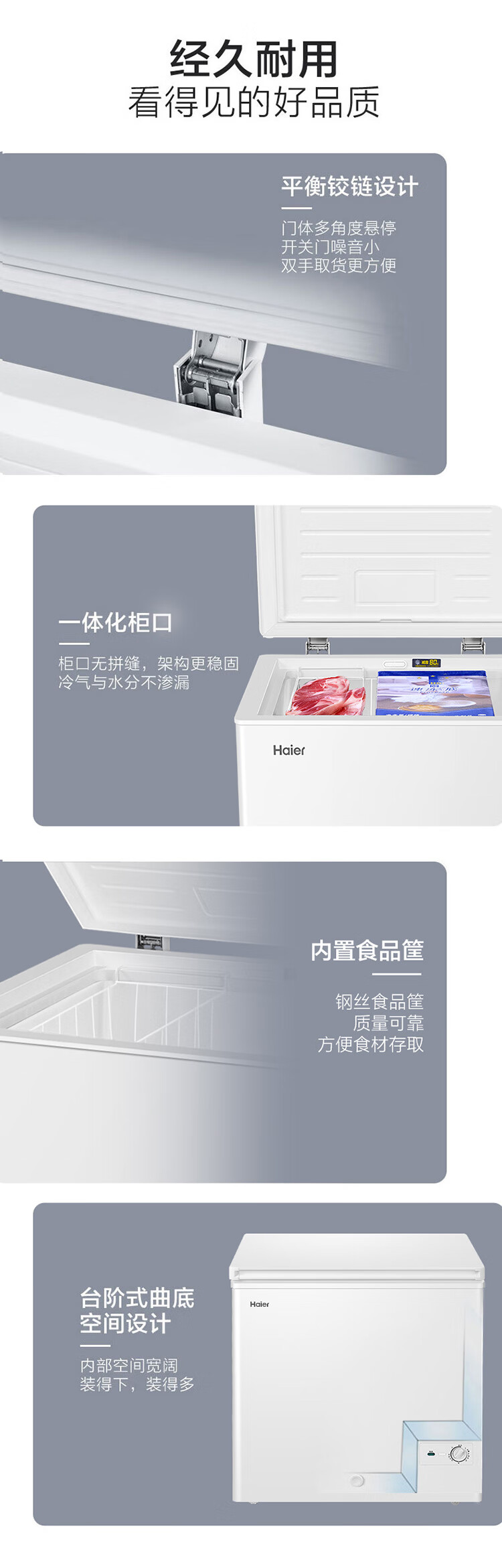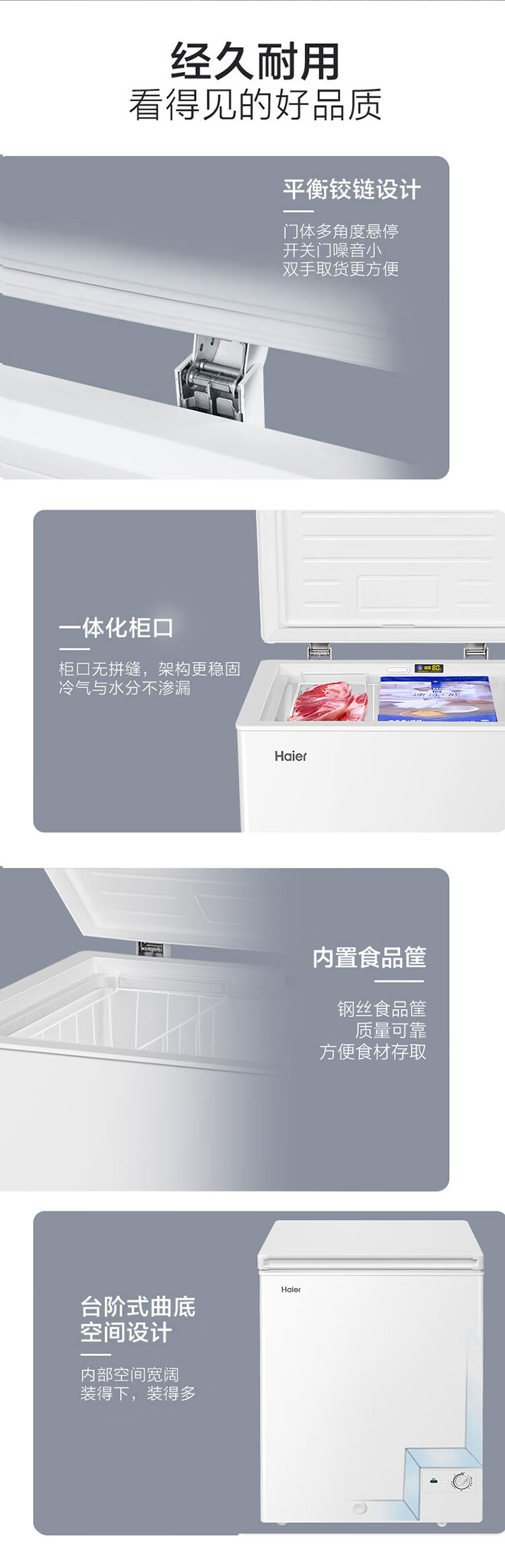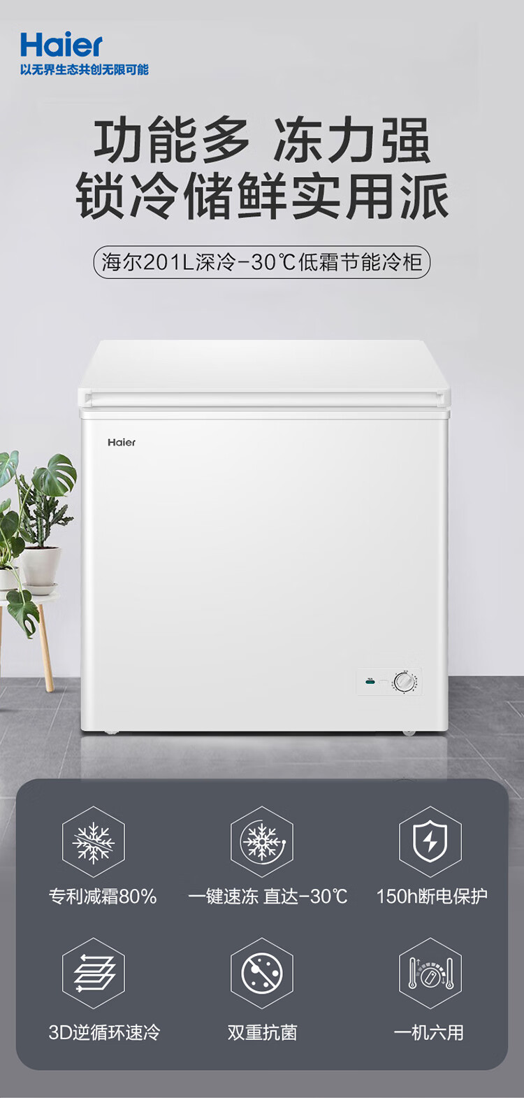海尔(Haier)冰柜家用单温一级能效 冷藏柜冷冻柜商用小型冰箱大容量冷柜 201升 零下30℃丨无需频繁除霜