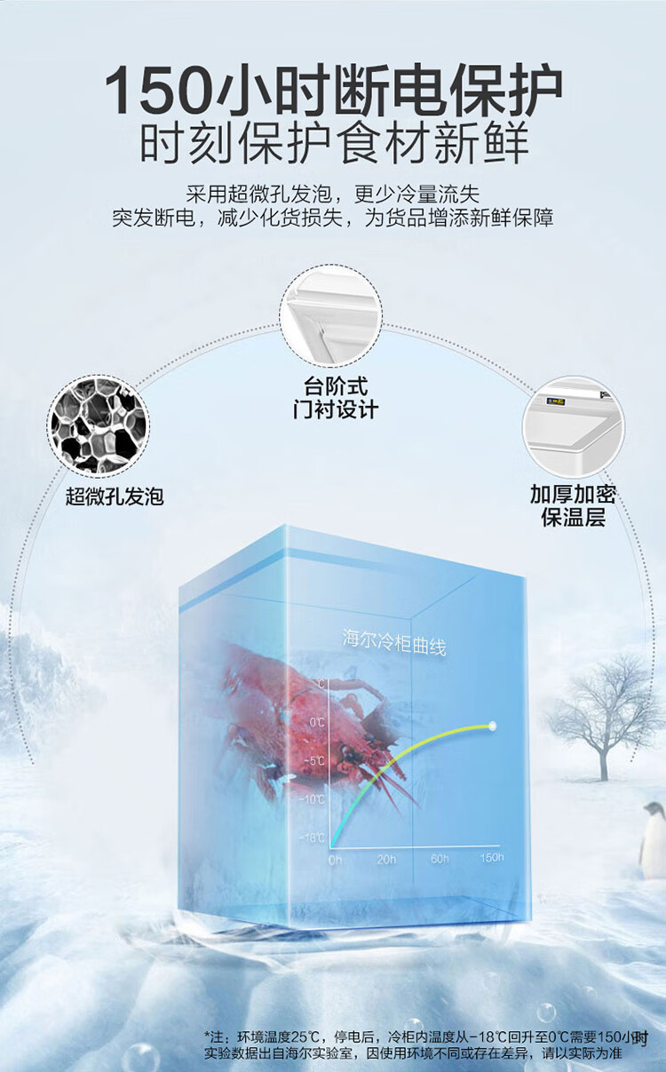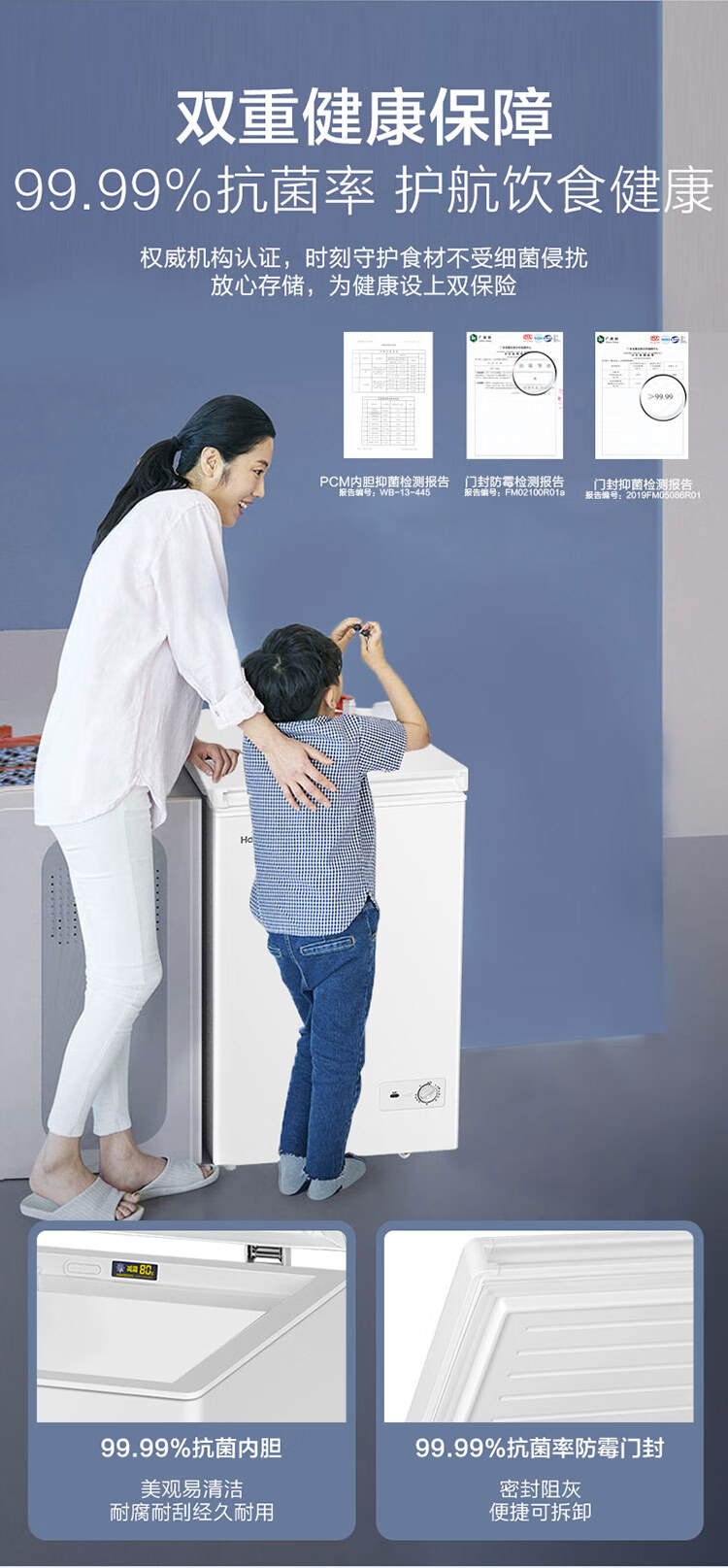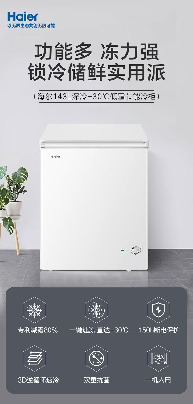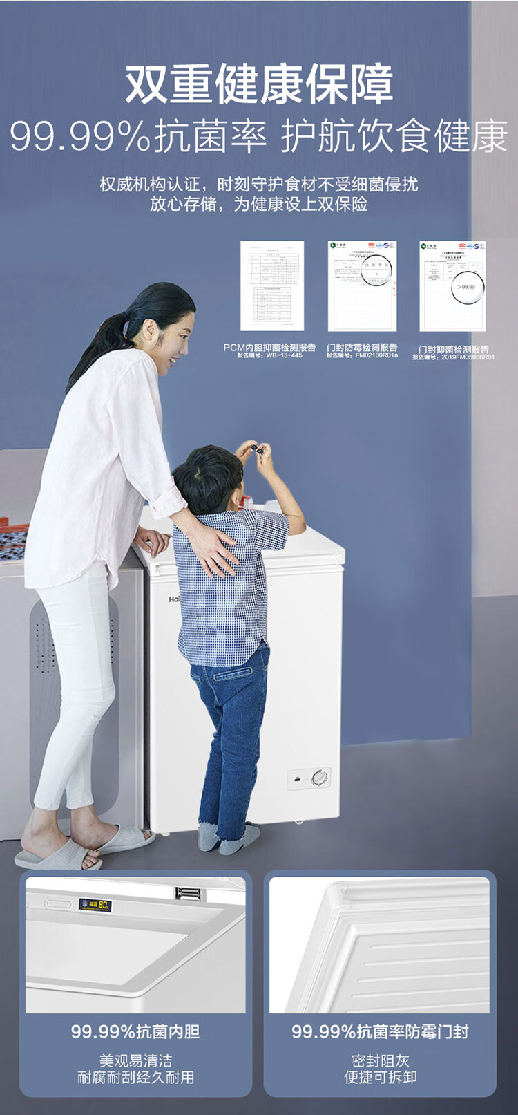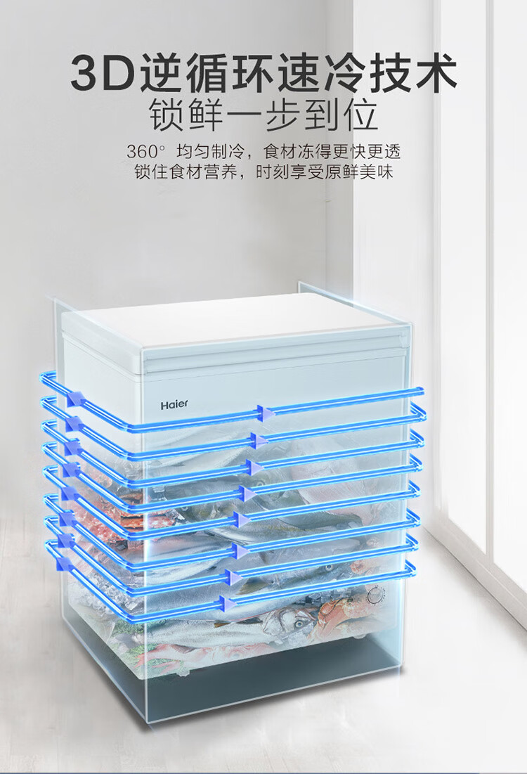 海尔(Haier)冰柜家用单温一级能效 冷藏柜冷冻柜商用小型冰箱大容量冷柜 201升 零下30℃丨无需频繁除霜