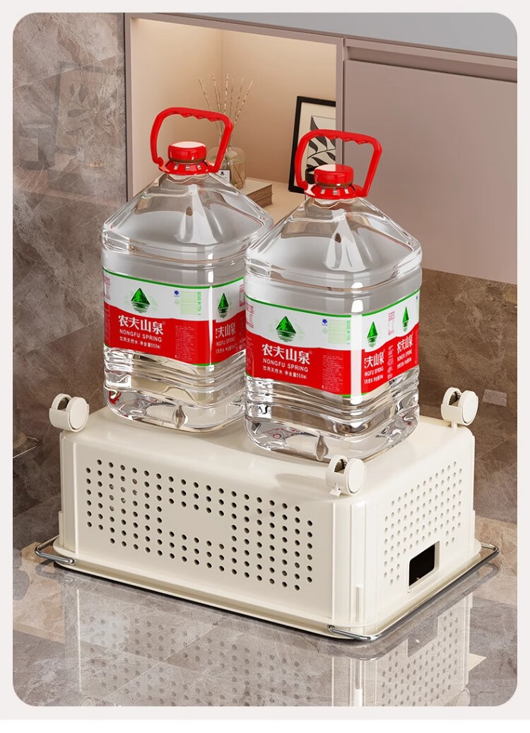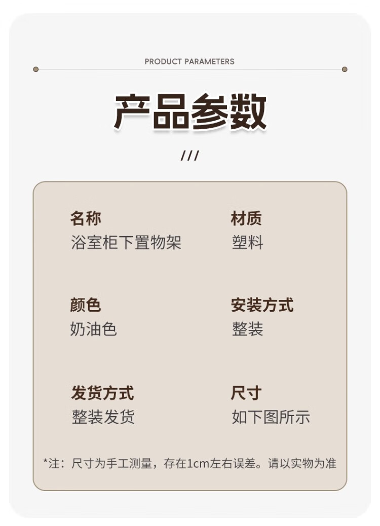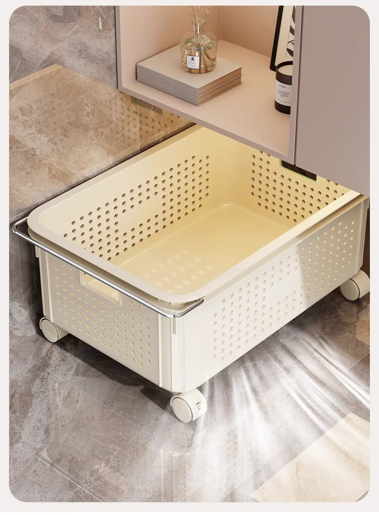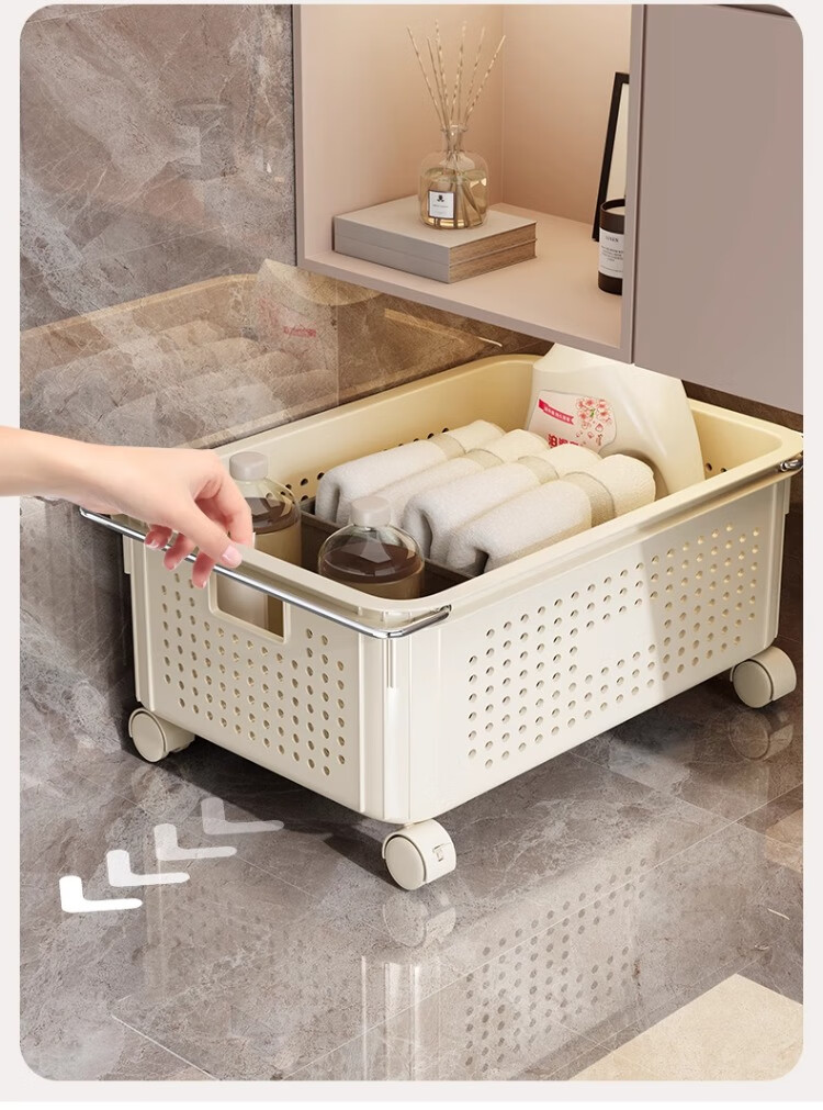 尔思家卫生间置物架免打孔收纳柜浴室柜下脏衣篓收纳筐推车洗衣篮置物架 奶油色中号