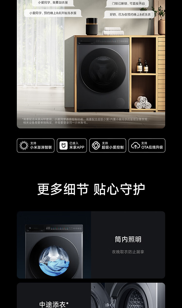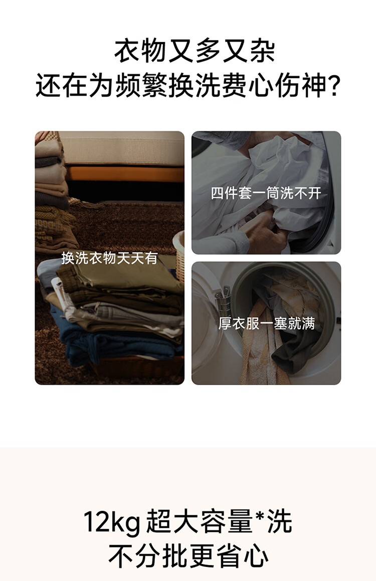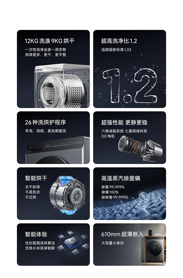 米家洗衣机12KG洗烘一体滚筒超大容量 全自动节能一级能效以旧换新XHQG120MJ101 洗烘一体 洗烘一体