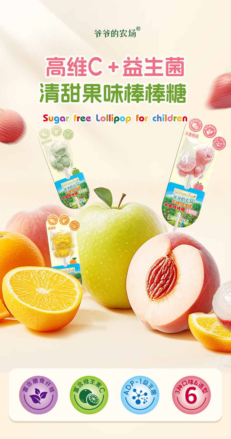 爷爷的农场儿童零食 棒棒糖宝宝解馋糖果 辅食零食儿童食品 棒棒糖48g
