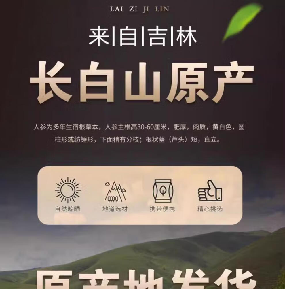胖东来DL胖东来同款鲜人参人参东北泡酒专用人参中药材白参吉林人参滋代 毛重60克买 1送1【发2支】送4件套 0g
