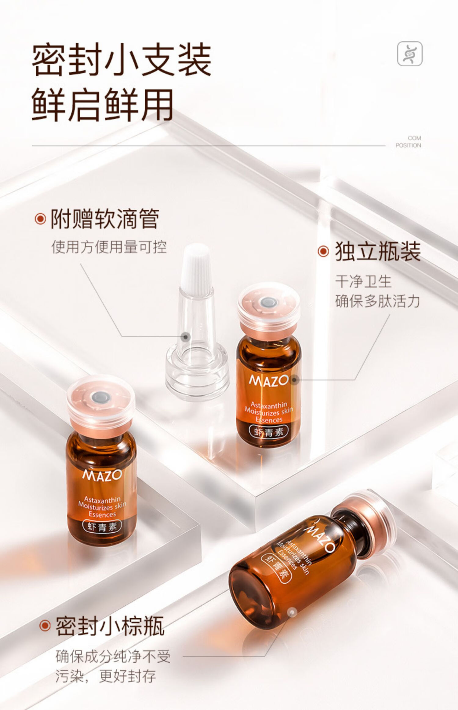 虾青素次抛精华安瓶套盒美白祛斑淡斑去黄提亮肤色烟酰胺精华原液 买二送一发3盒(限时特价) 3ml