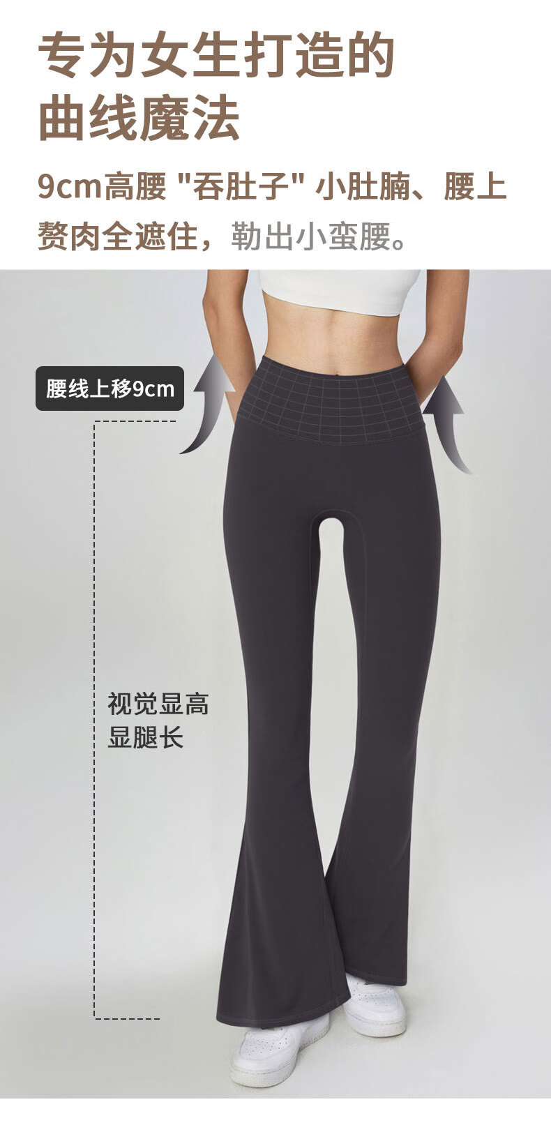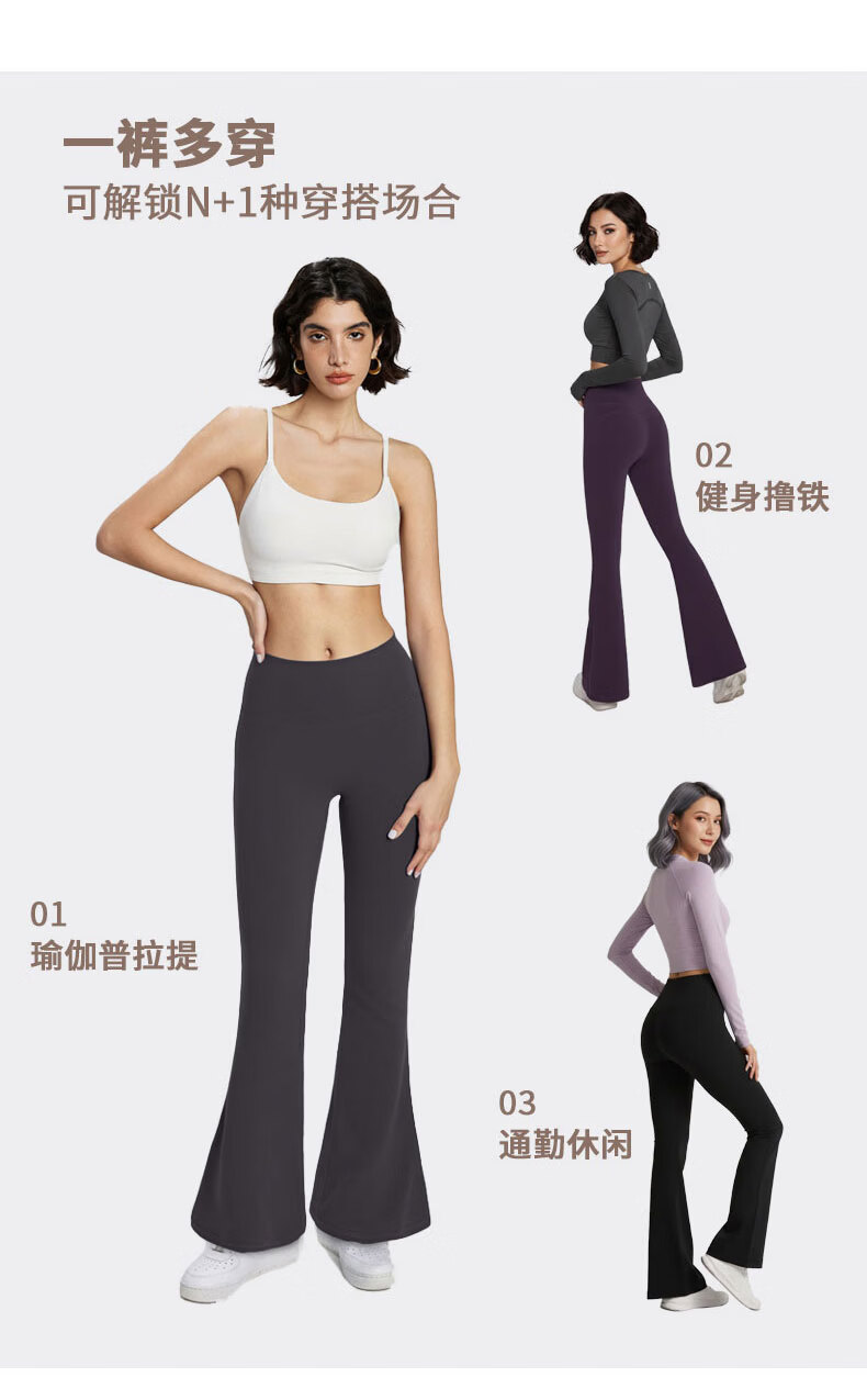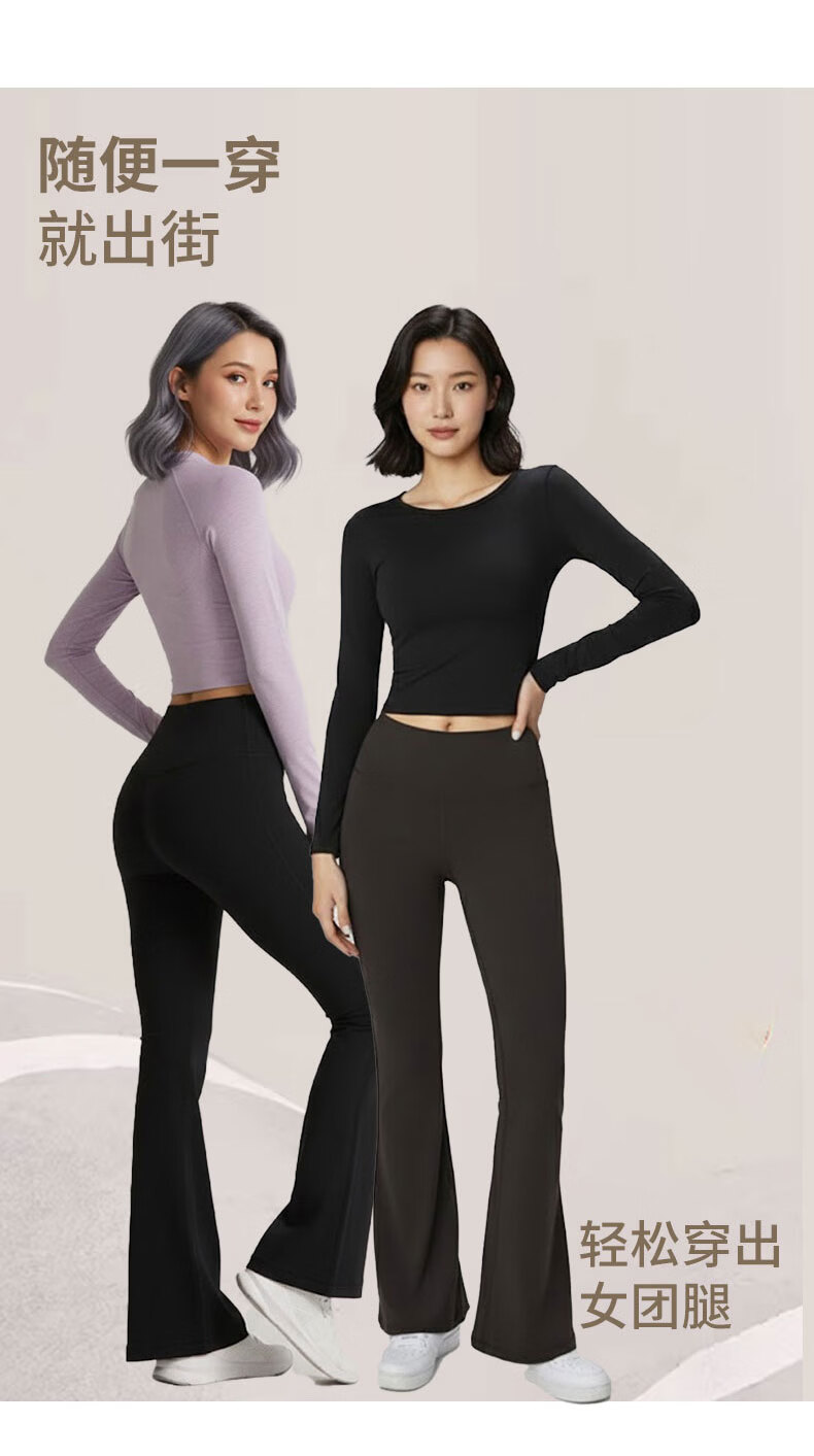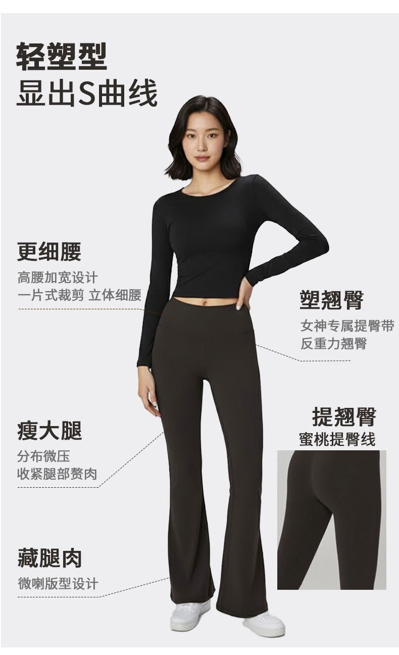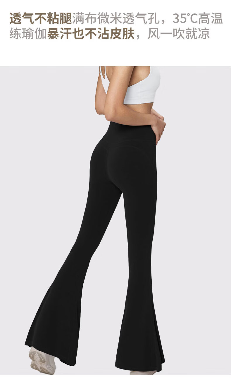 GAMSUNGTEX Let's Slim加绒喇叭裤高腰提臀瑜伽裤女打底裸感运动裤普拉提芭比裤鲨鱼裤 黑色 L /8