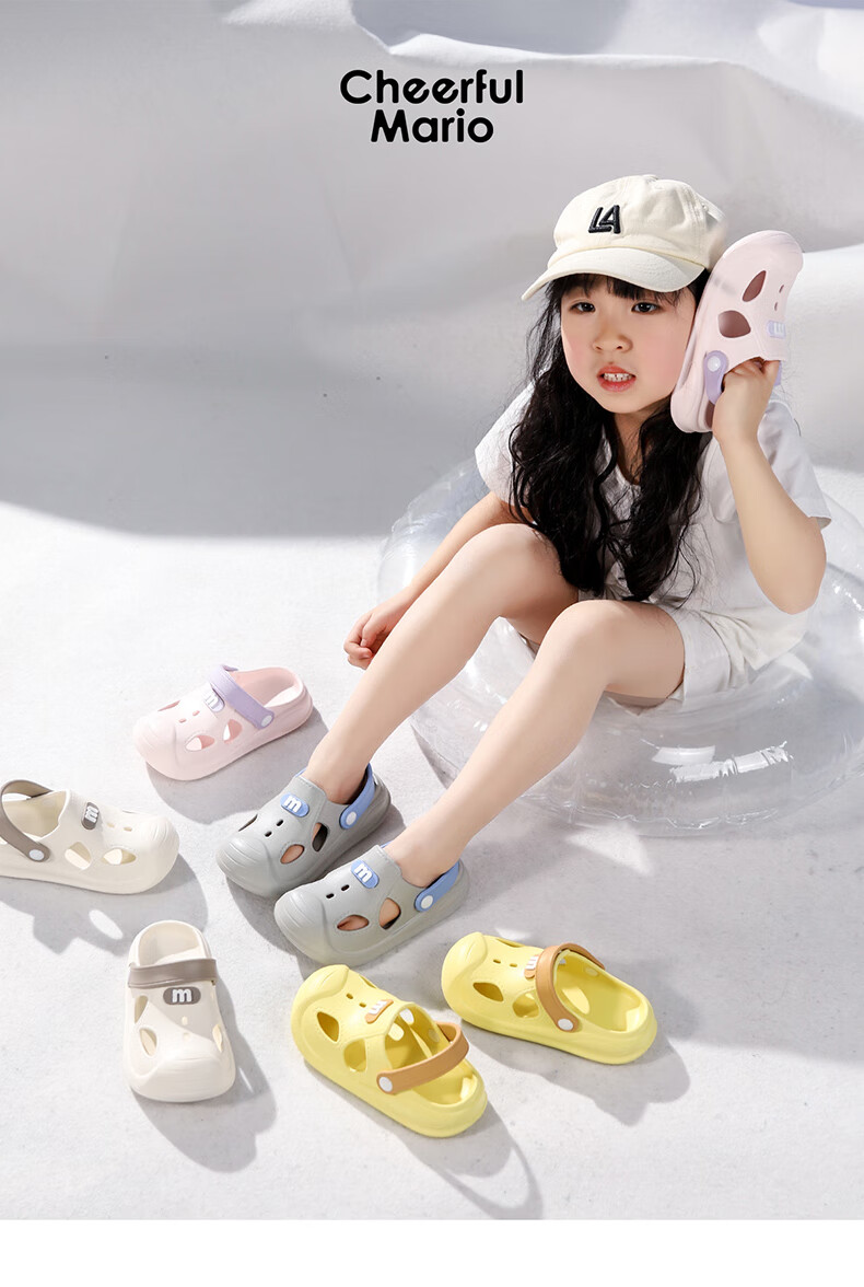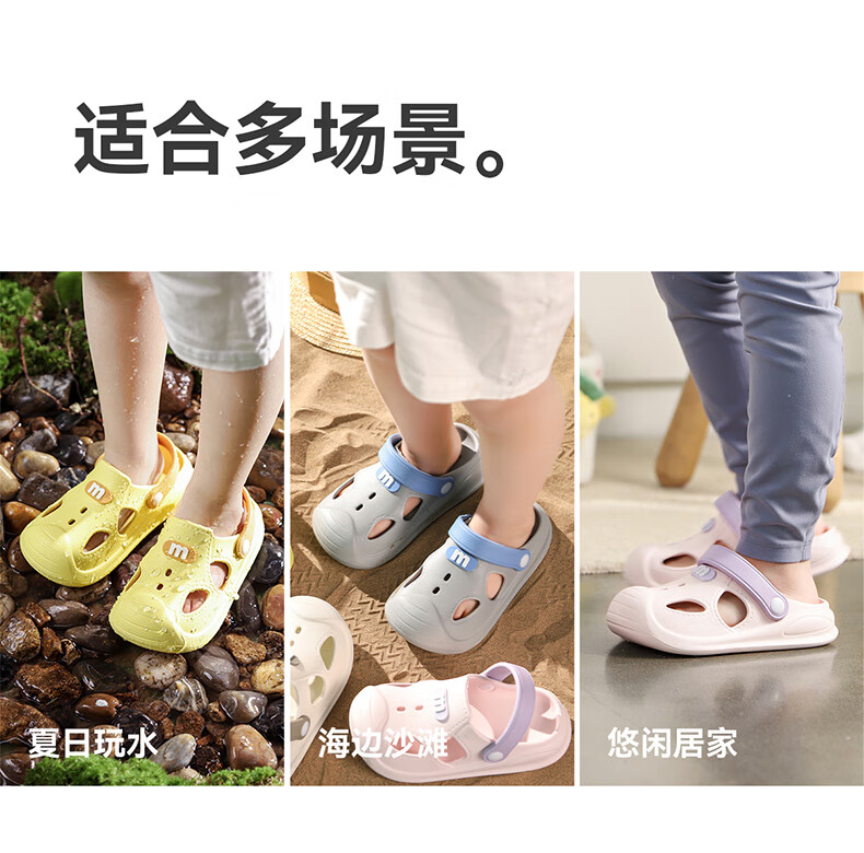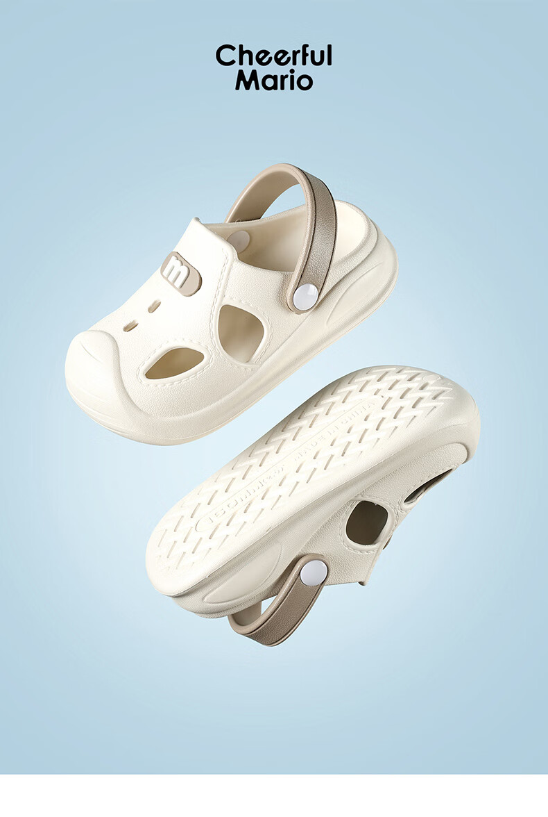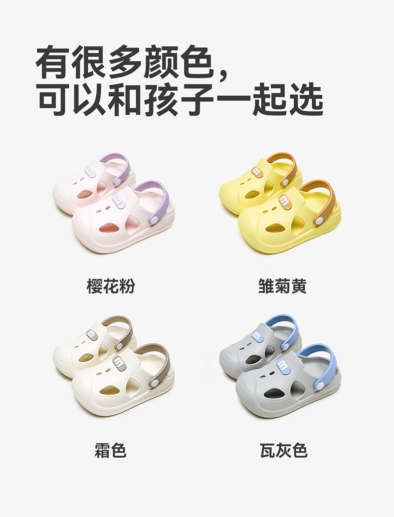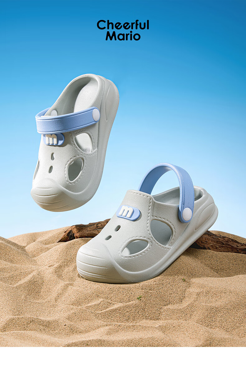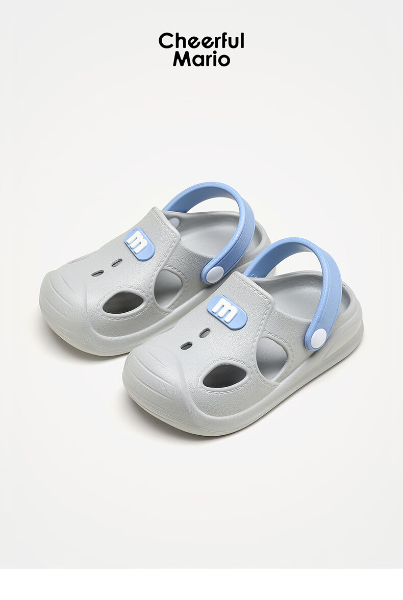 幸福玛丽宝宝凉鞋男童夏季幼儿小童防滑外穿女童洞洞鞋儿童沙滩鞋包头软底 瓦灰色 23 内长15cm适合脚长14cm