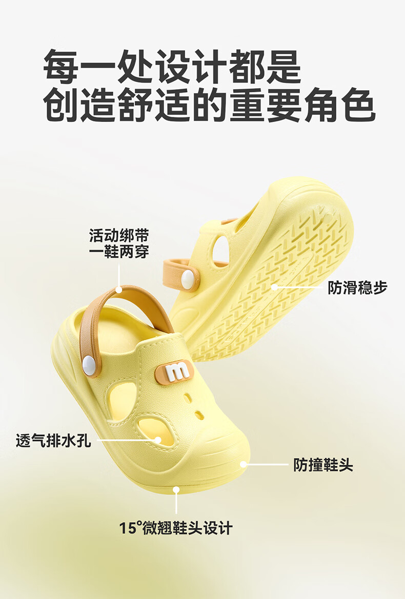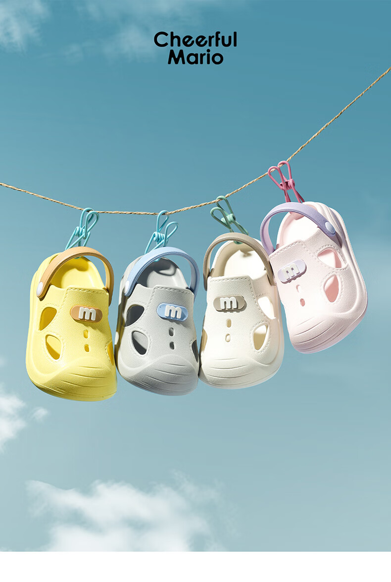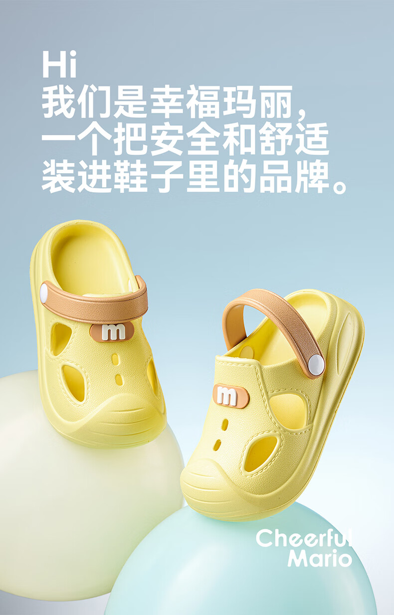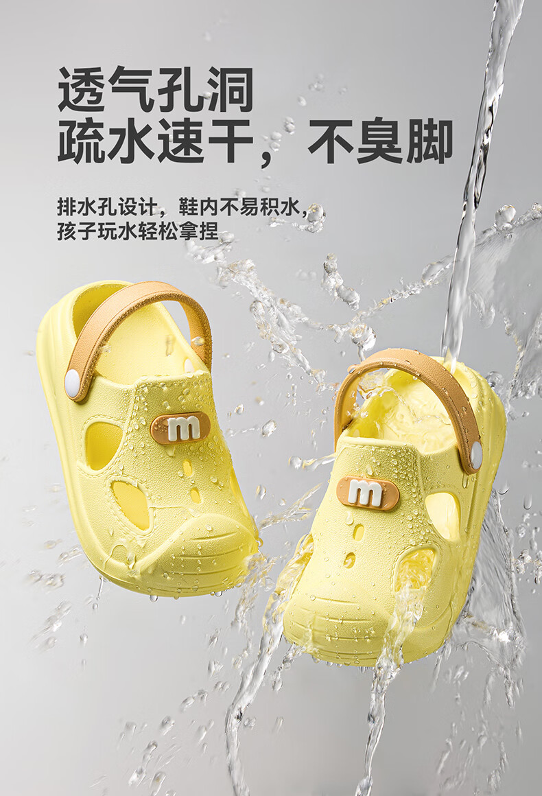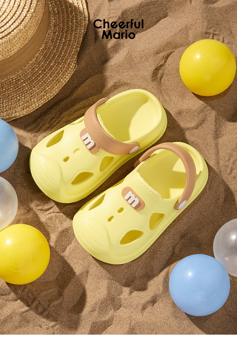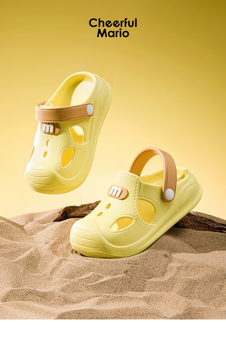 幸福玛丽宝宝凉鞋男童夏季幼儿小童防滑外穿女童洞洞鞋儿童沙滩鞋包头软底 瓦灰色 23 内长15cm适合脚长14cm
