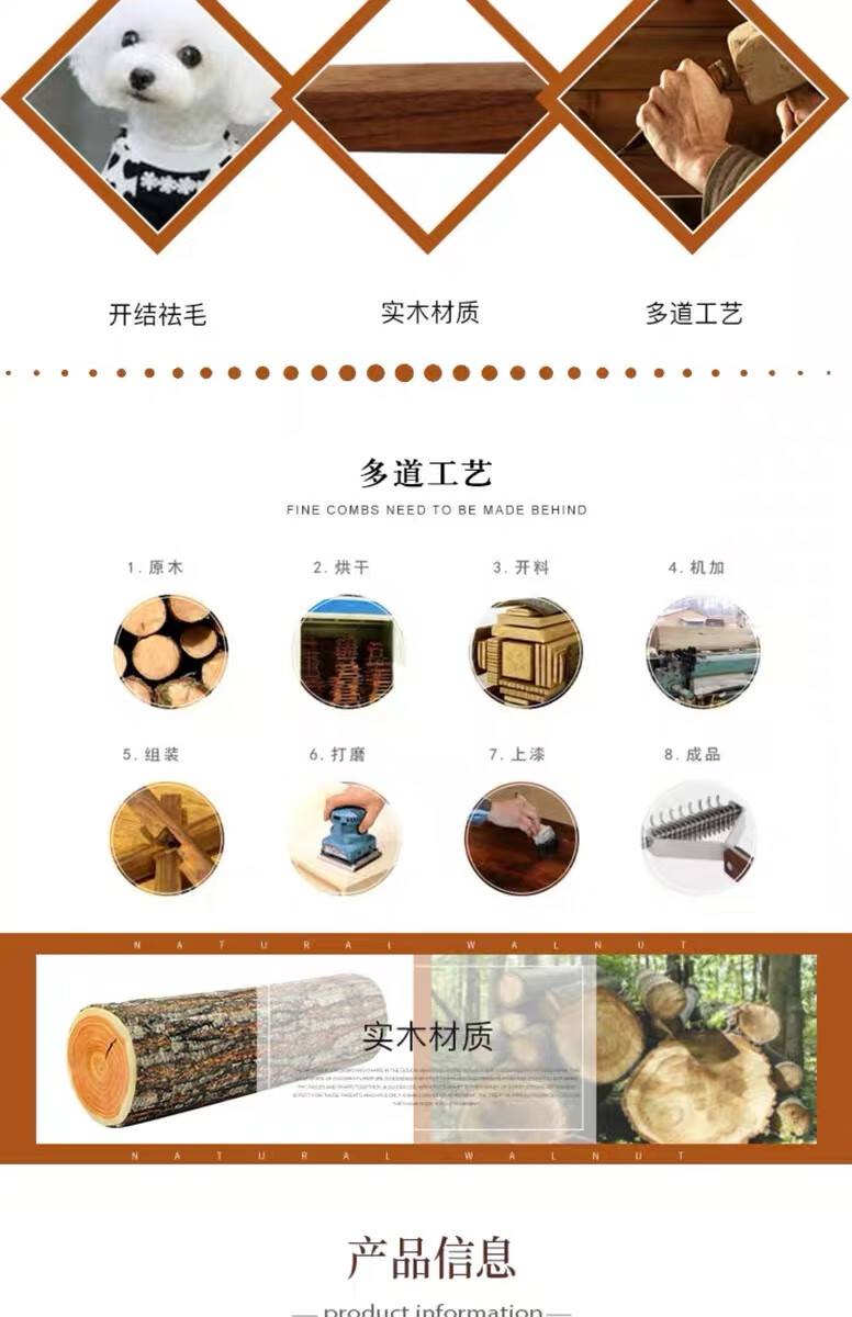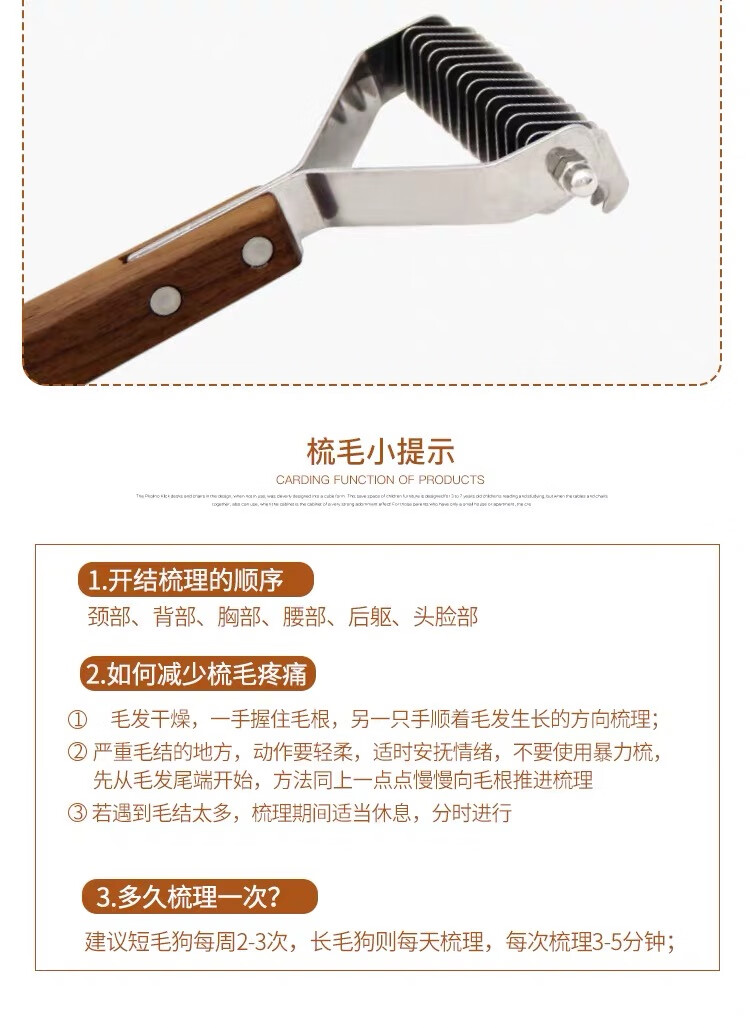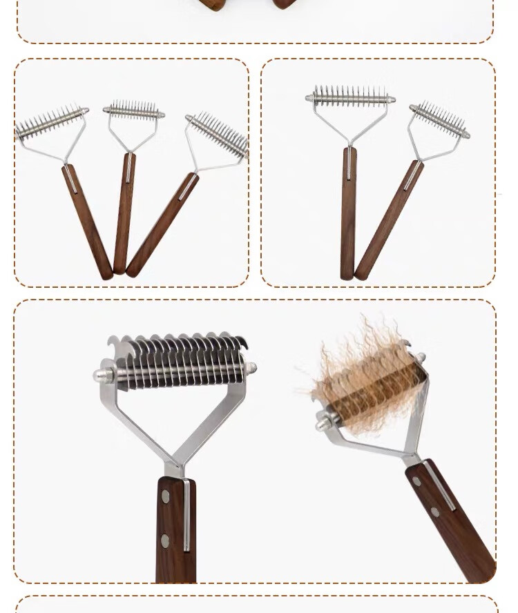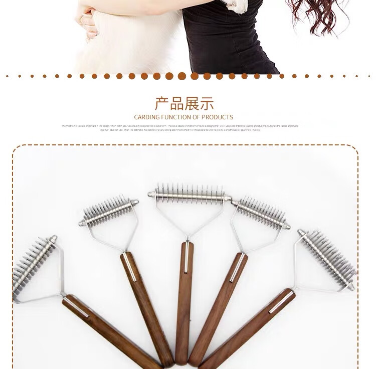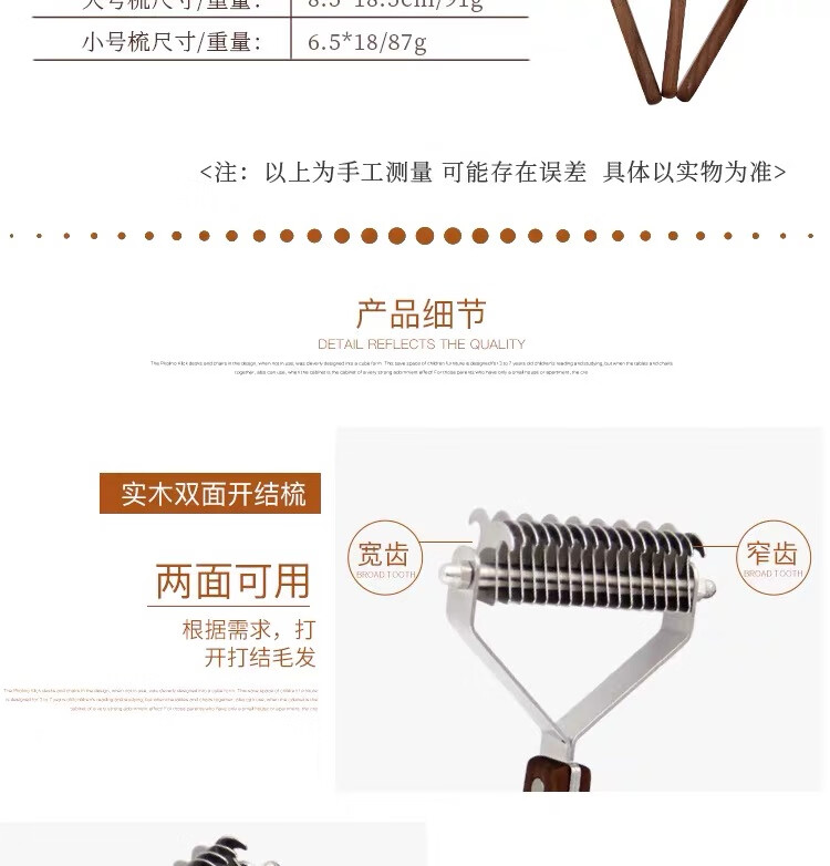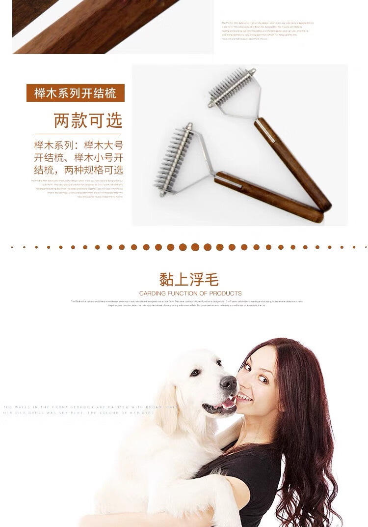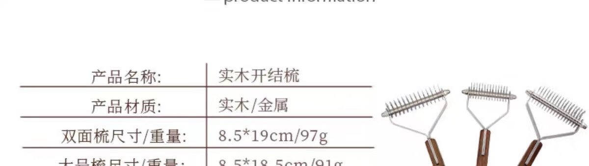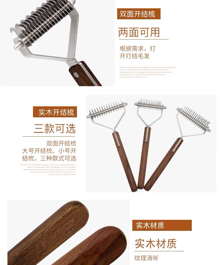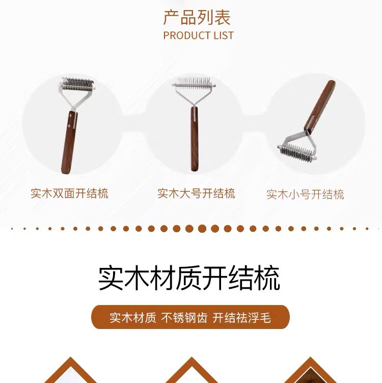 爵士狼宠物梳子开结刷狗毛清洁神器猫咪祛浮毛专用美容实木梳子梳毛刷 双面开结梳【实木手柄】