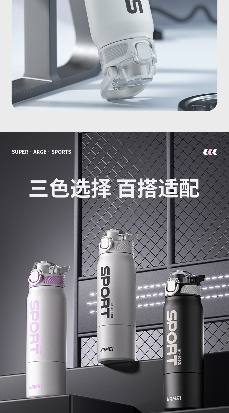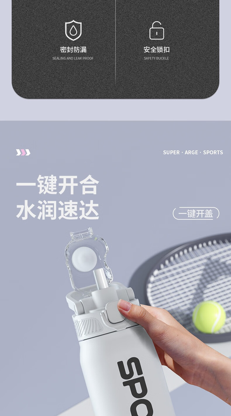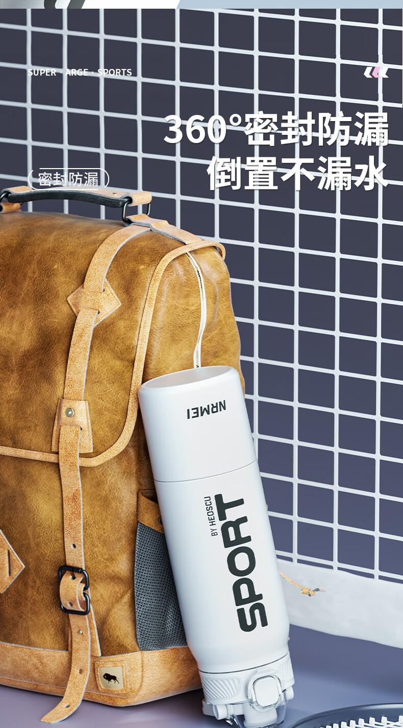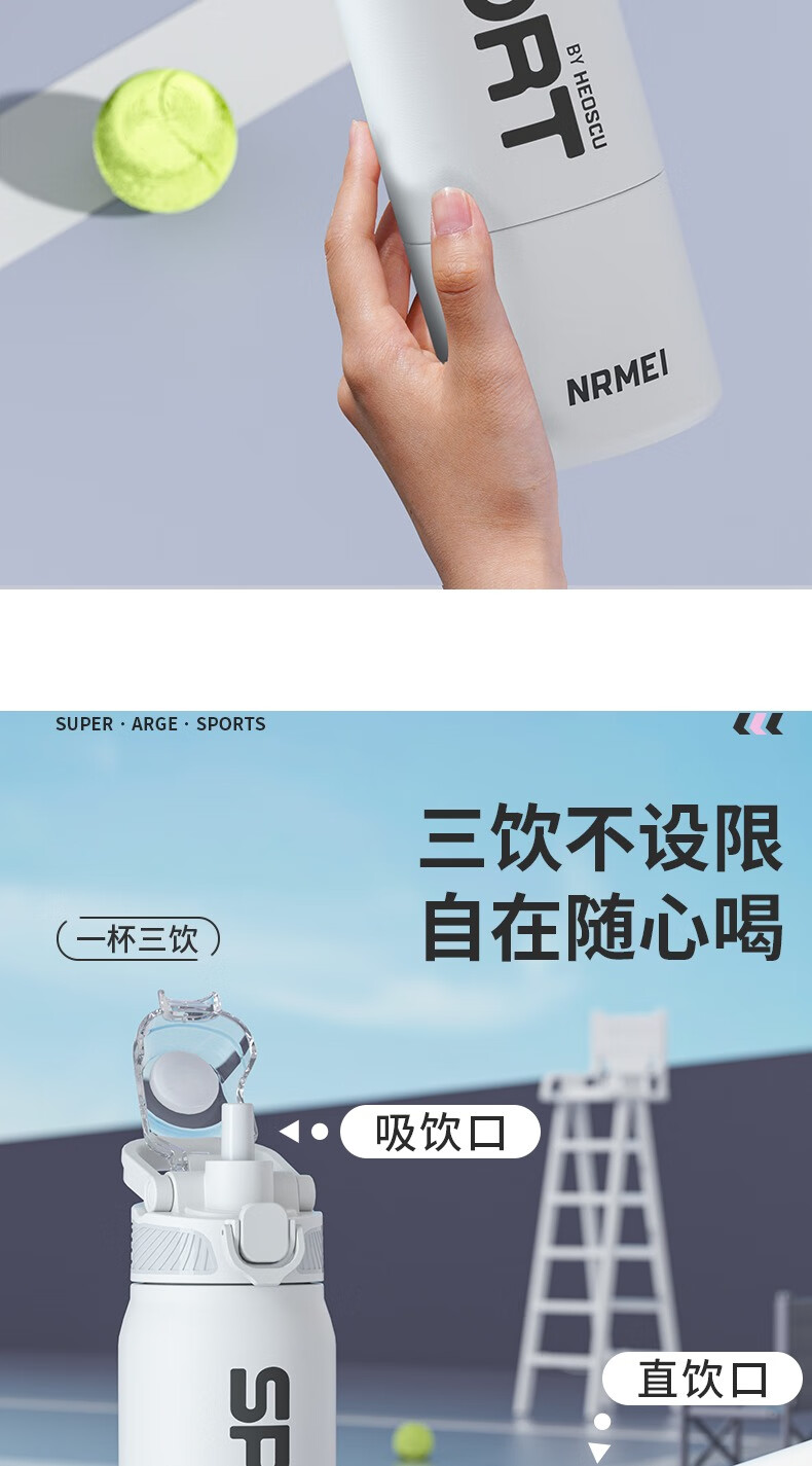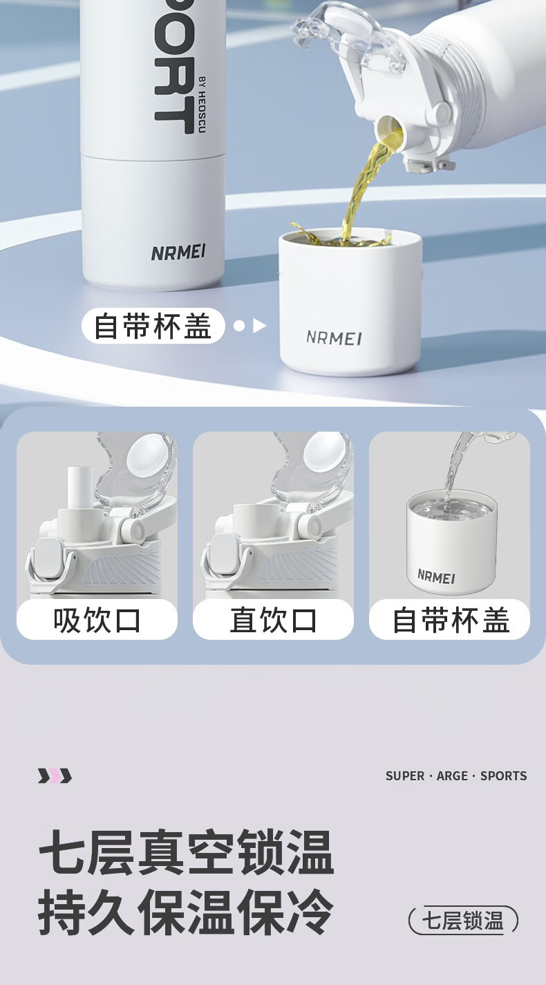 恩尔美(nRMEi)保温杯大容量吸管杯户外运动骑行水杯学生上学新款便携运动水杯壶 【运动白】800ml防摔/一键开盖