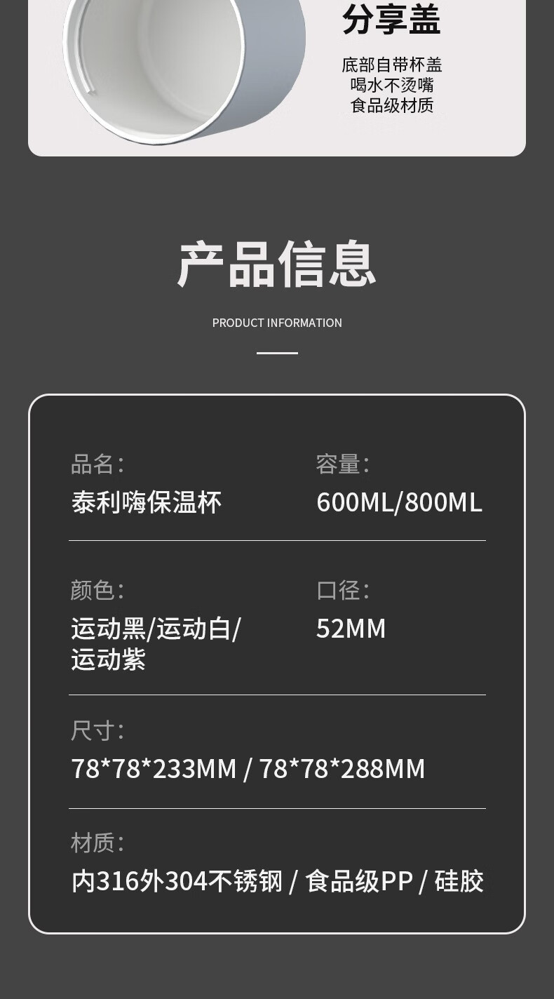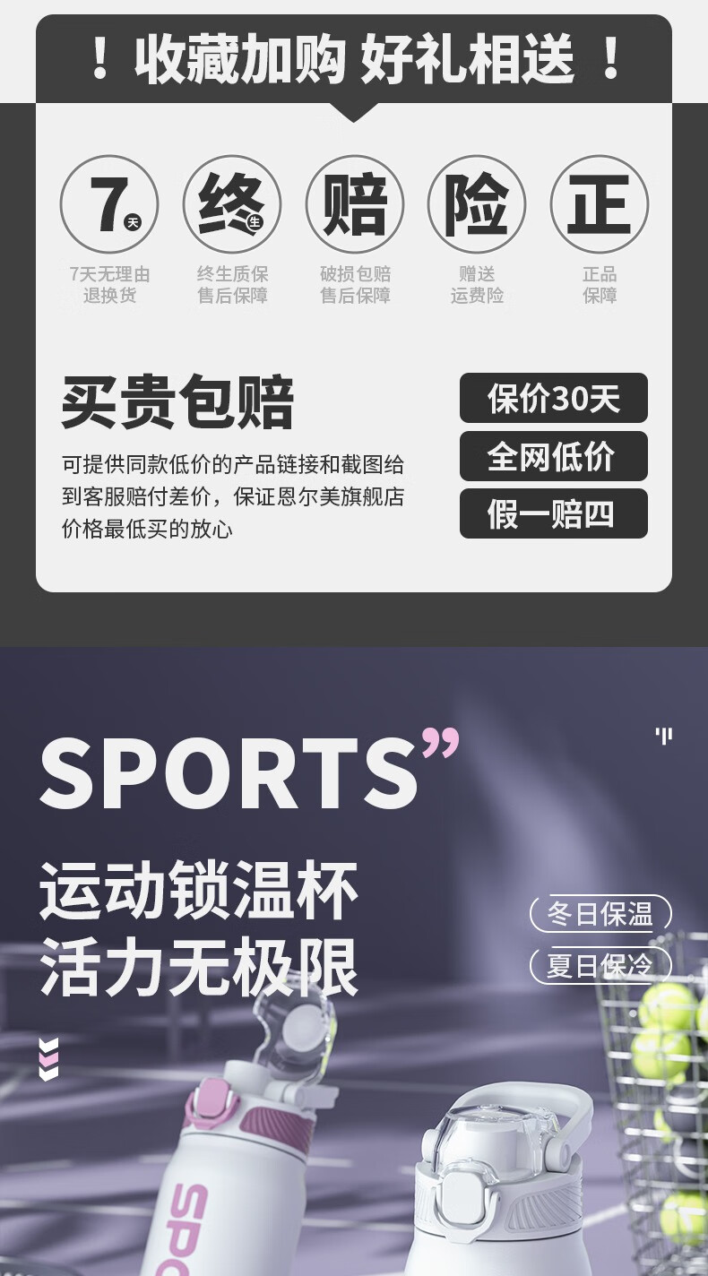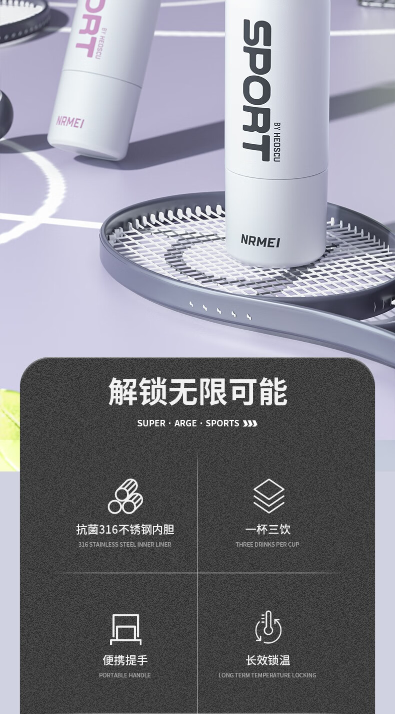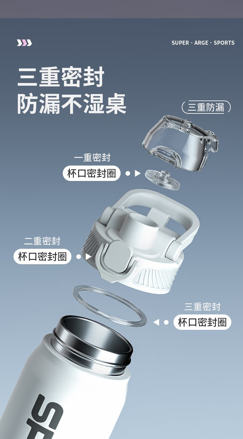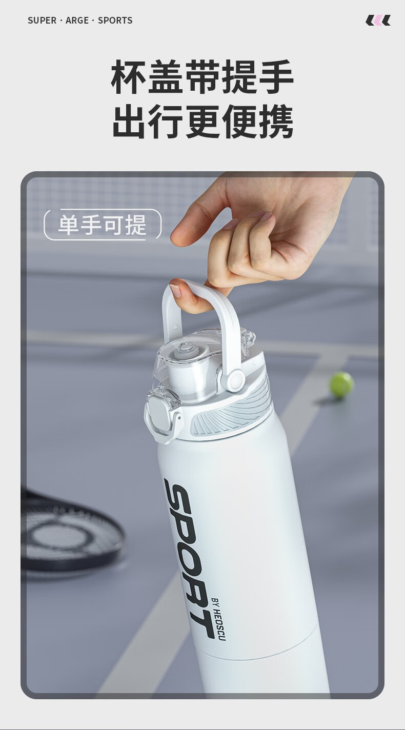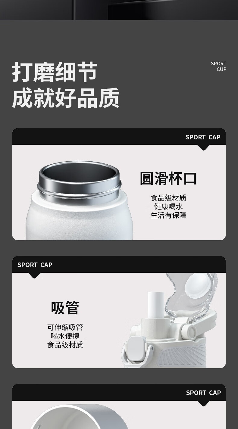 恩尔美(nRMEi)保温杯大容量吸管杯户外运动骑行水杯学生上学新款便携运动水杯壶 【运动白】800ml防摔/一键开盖