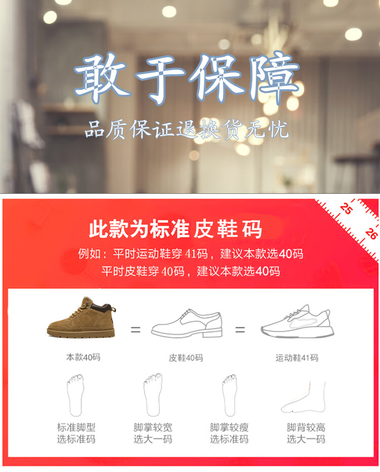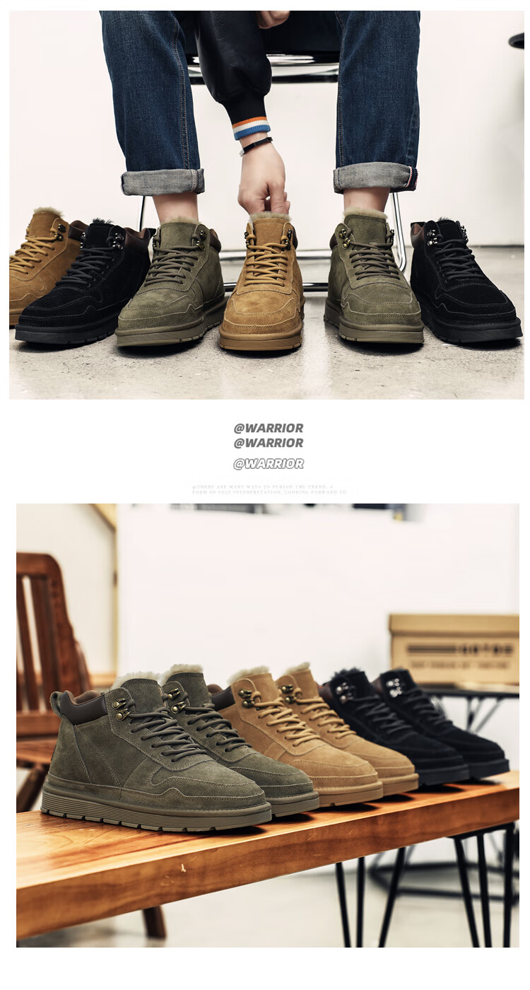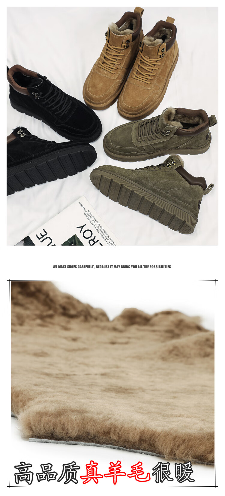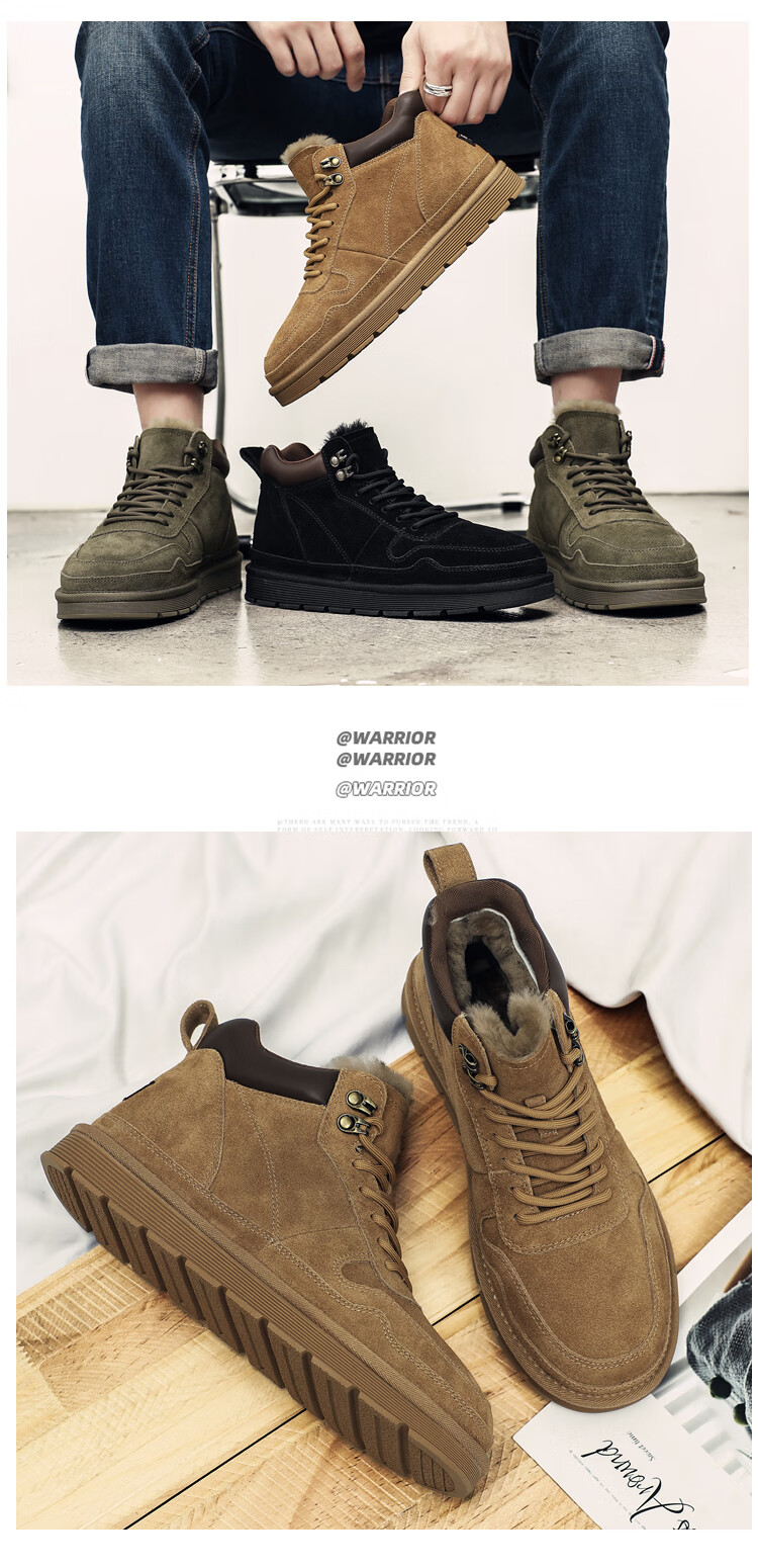稻草人(MEXICAN)羊毛雪地靴男户外抗寒防滑真皮冬季加绒加厚保暖东北高帮大棉鞋子 棕色 38