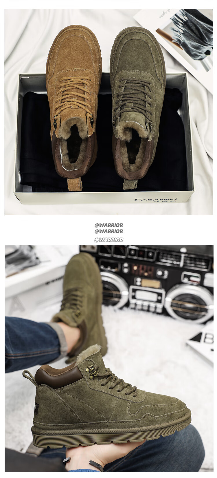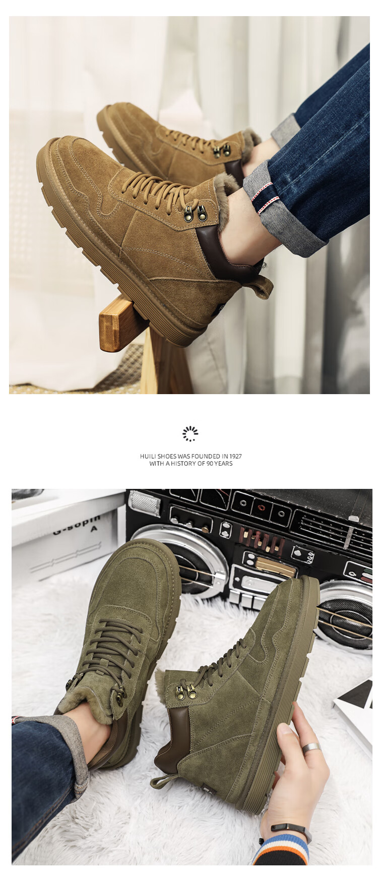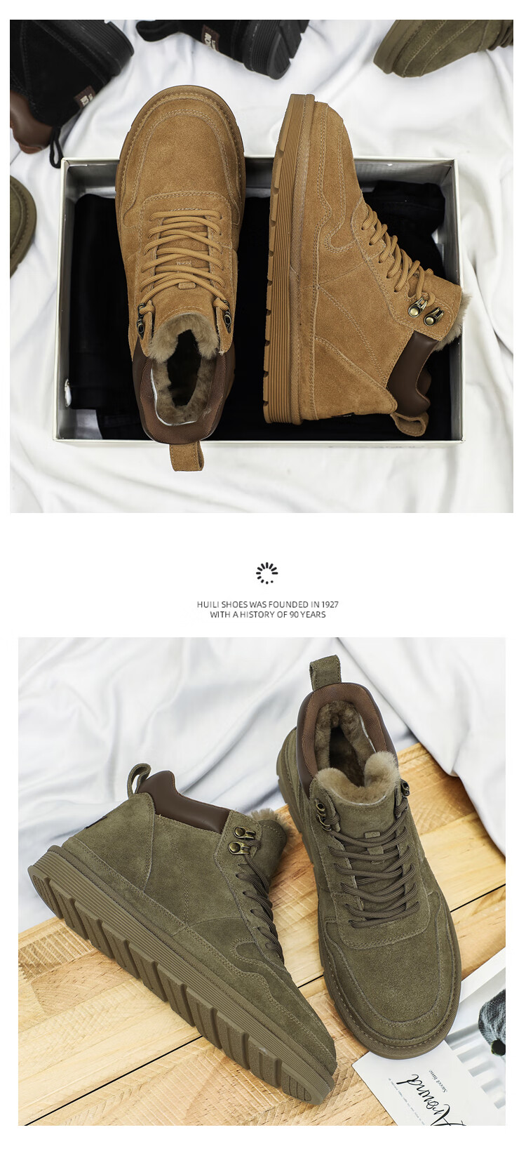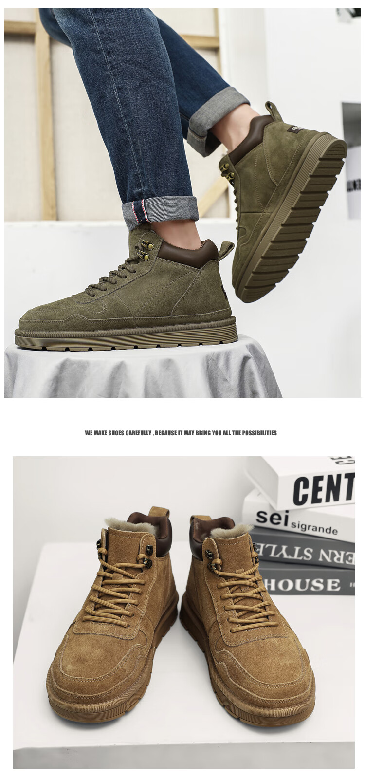 稻草人(MEXICAN)羊毛雪地靴男户外抗寒防滑真皮冬季加绒加厚保暖东北高帮大棉鞋子 棕色 38