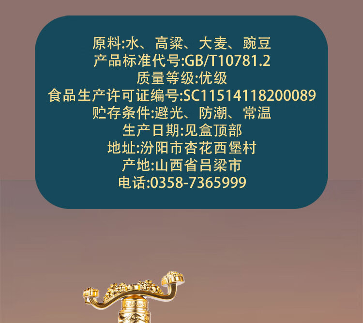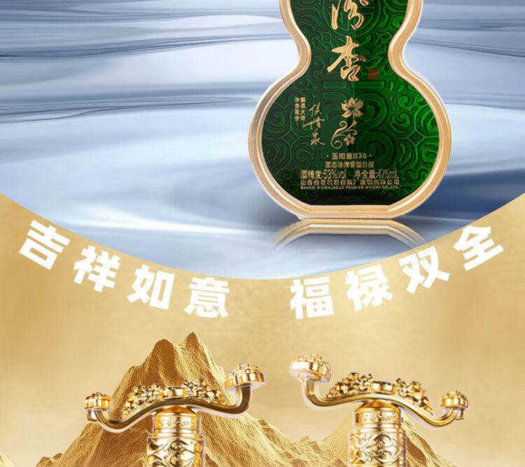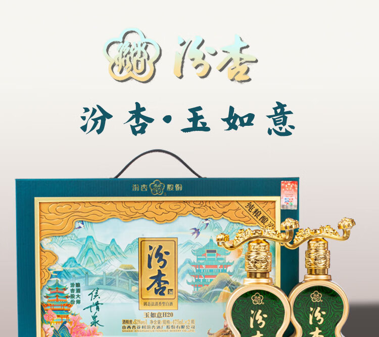 汾杏玉如意H20 清香型白酒 礼盒装 送礼自饮皆宜 53度 475mL 6瓶 【三盒】