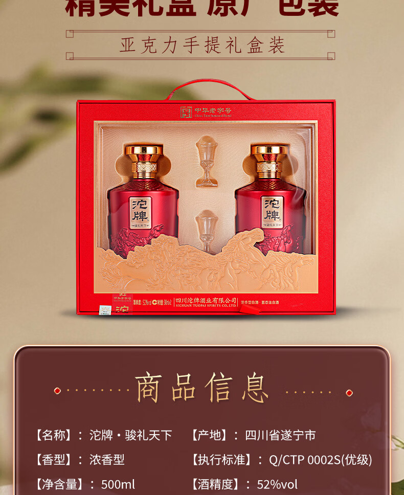 沱牌浓香型白酒 粮食酒 礼盒装白酒 送礼自饮酒新老版本随机发货 2025年 500mL 6瓶 52度沱牌画山海整箱