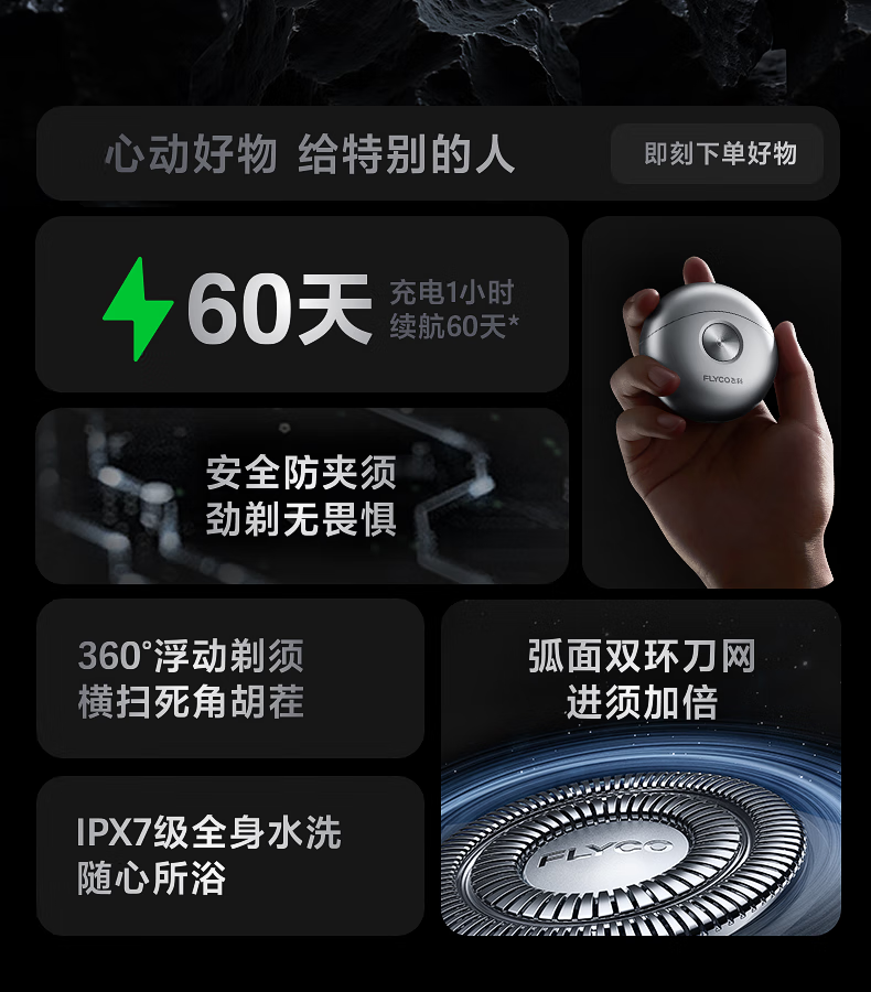 飞科(FLYCO)【王一博推荐】小飞碟男士电动刮胡剃须刀便携新年生日情人节年货礼物送男生好友老公FS891银色