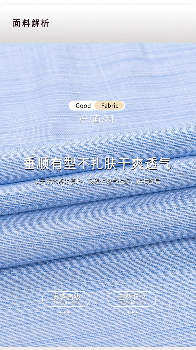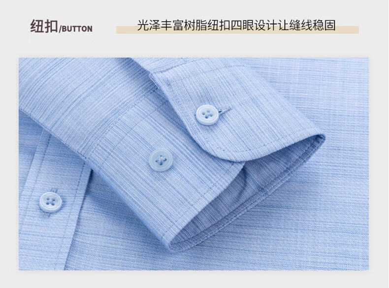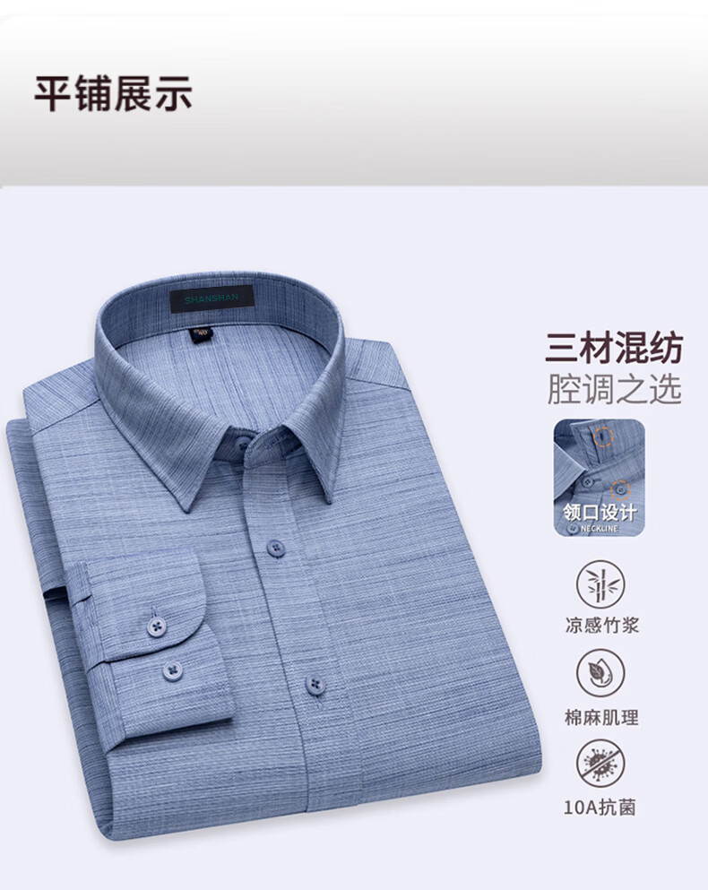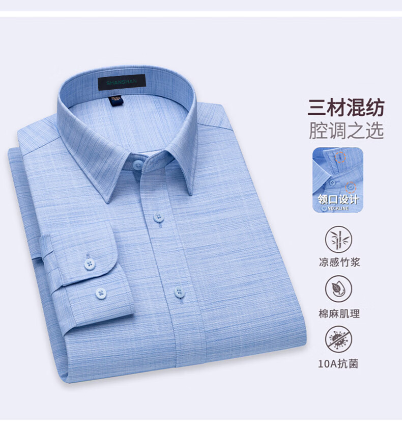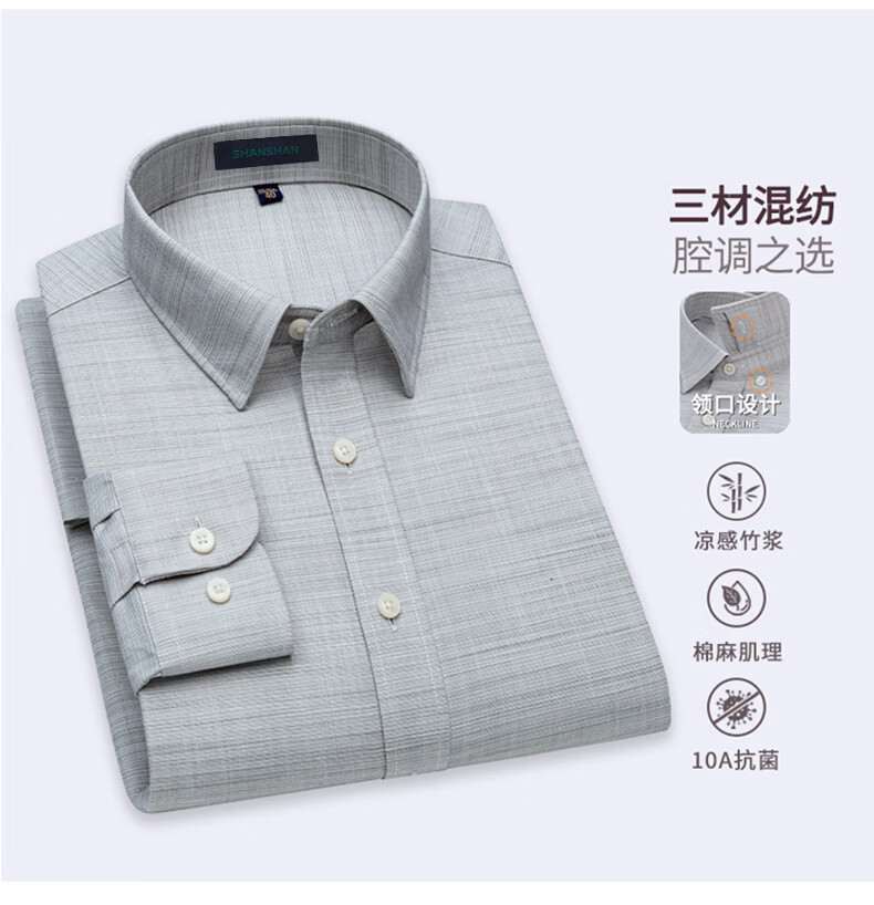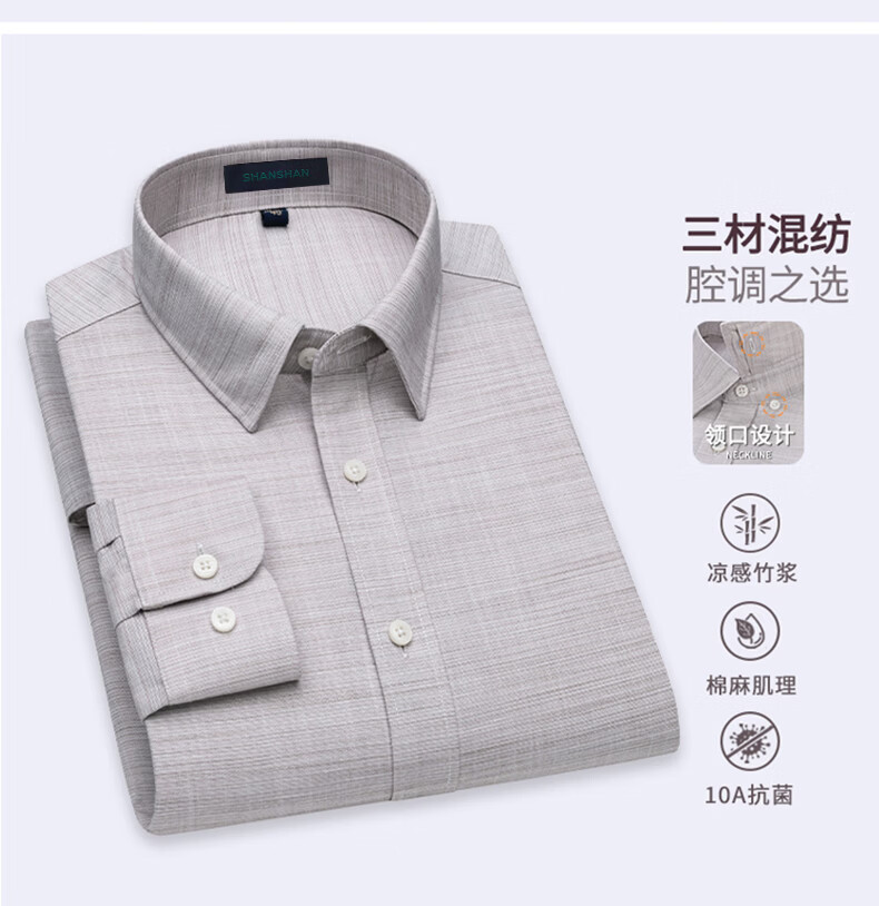 SHANSHAN杉杉【棉+亚麻+竹纤维】长袖衬衫男春季10A抗菌商务休闲男士衬衣 雾霾蓝 38 /170