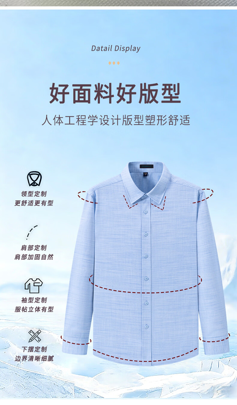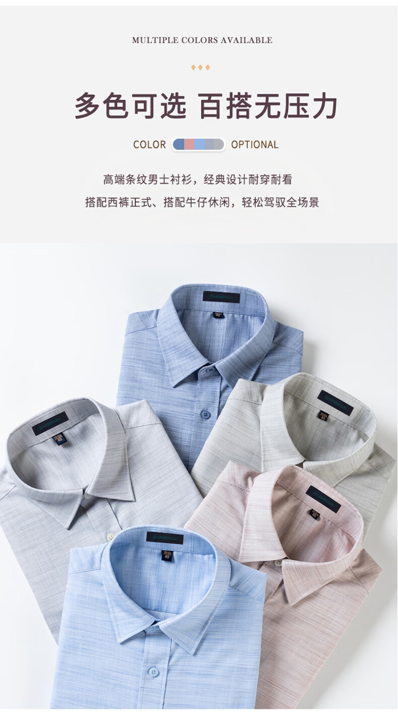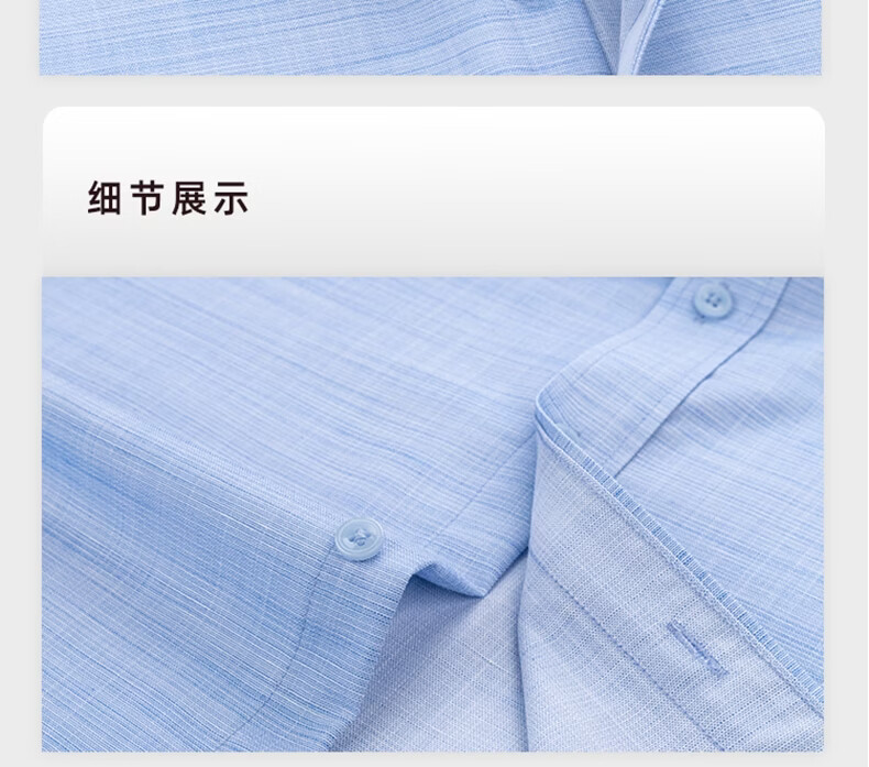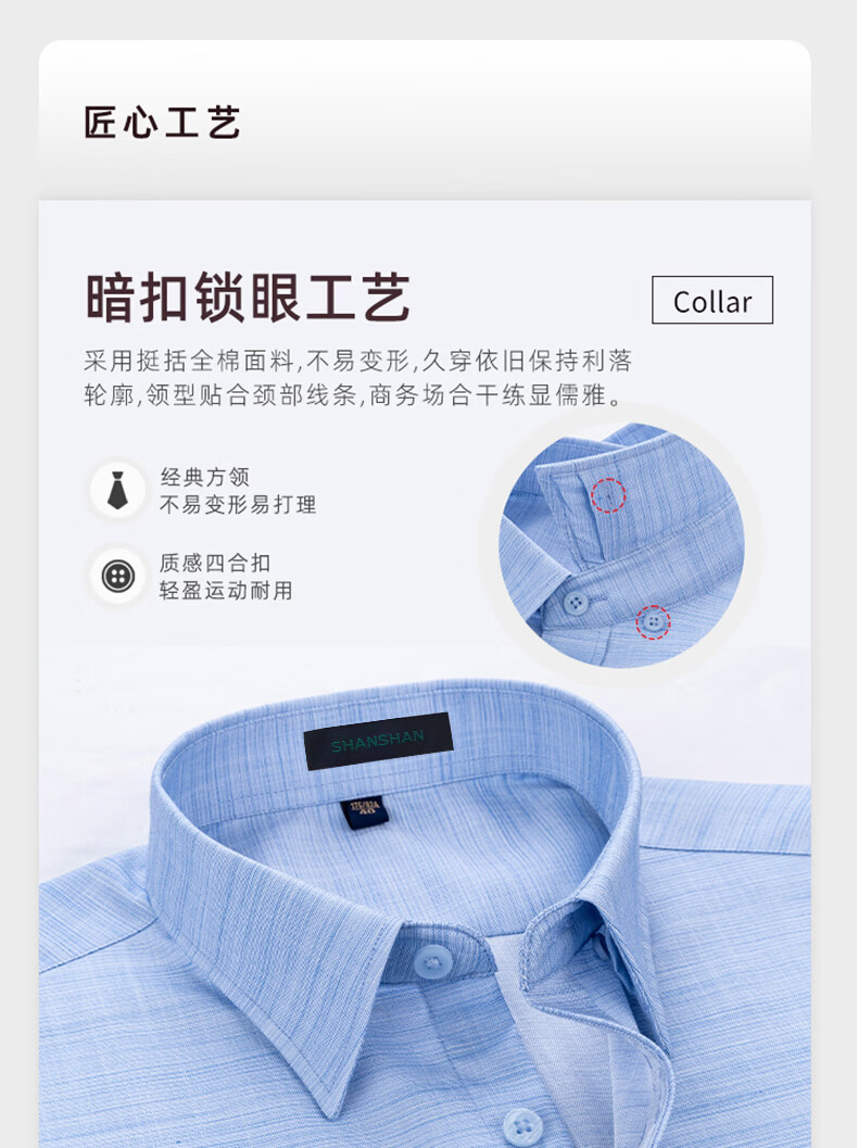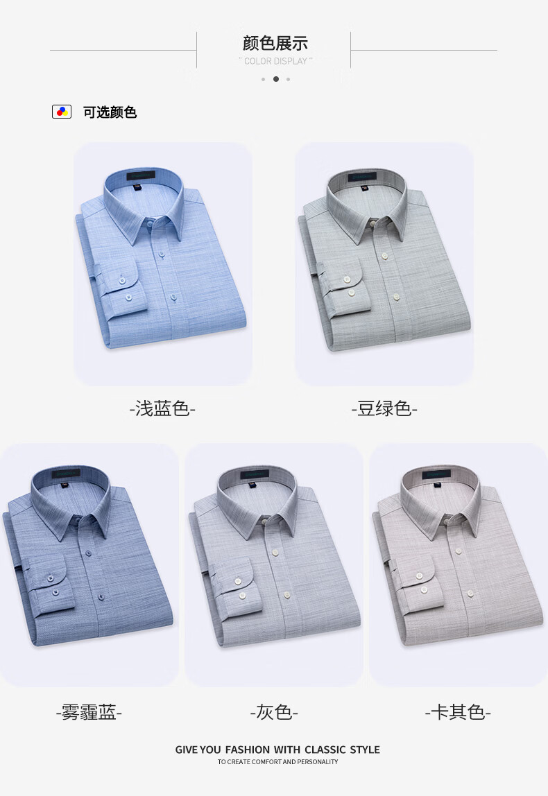 SHANSHAN杉杉【棉+亚麻+竹纤维】长袖衬衫男春季10A抗菌商务休闲男士衬衣 雾霾蓝 38 /170