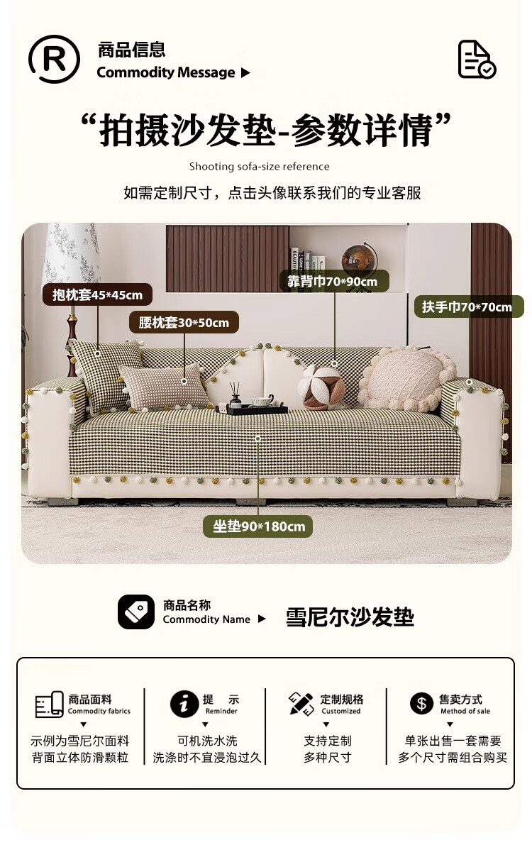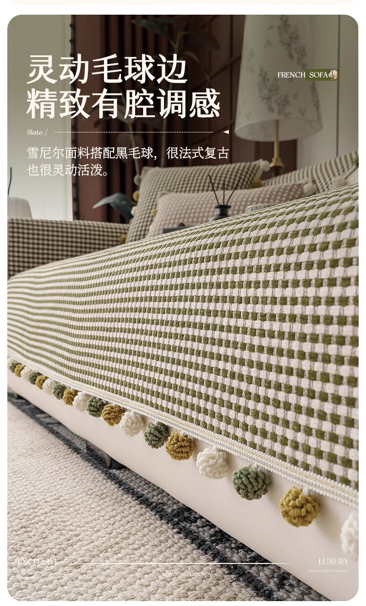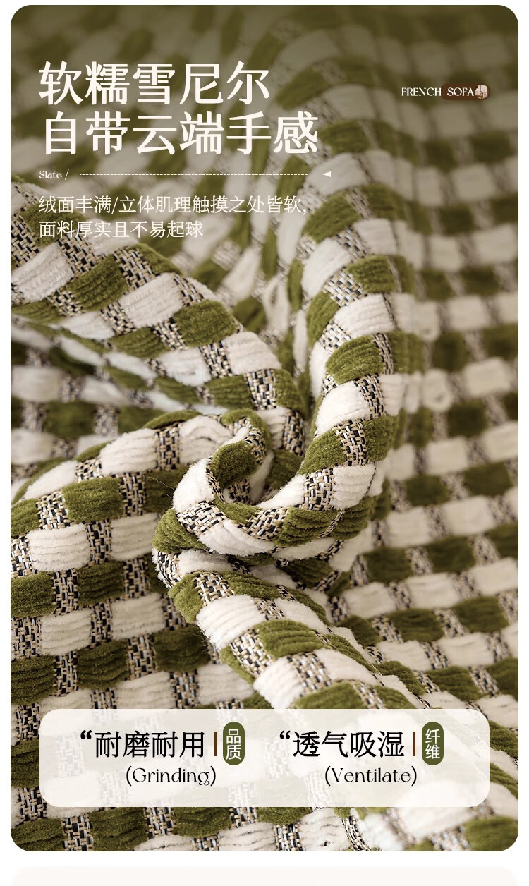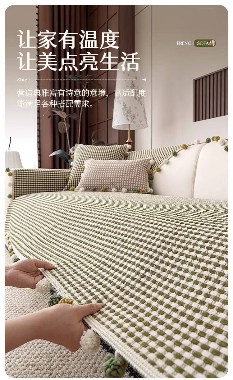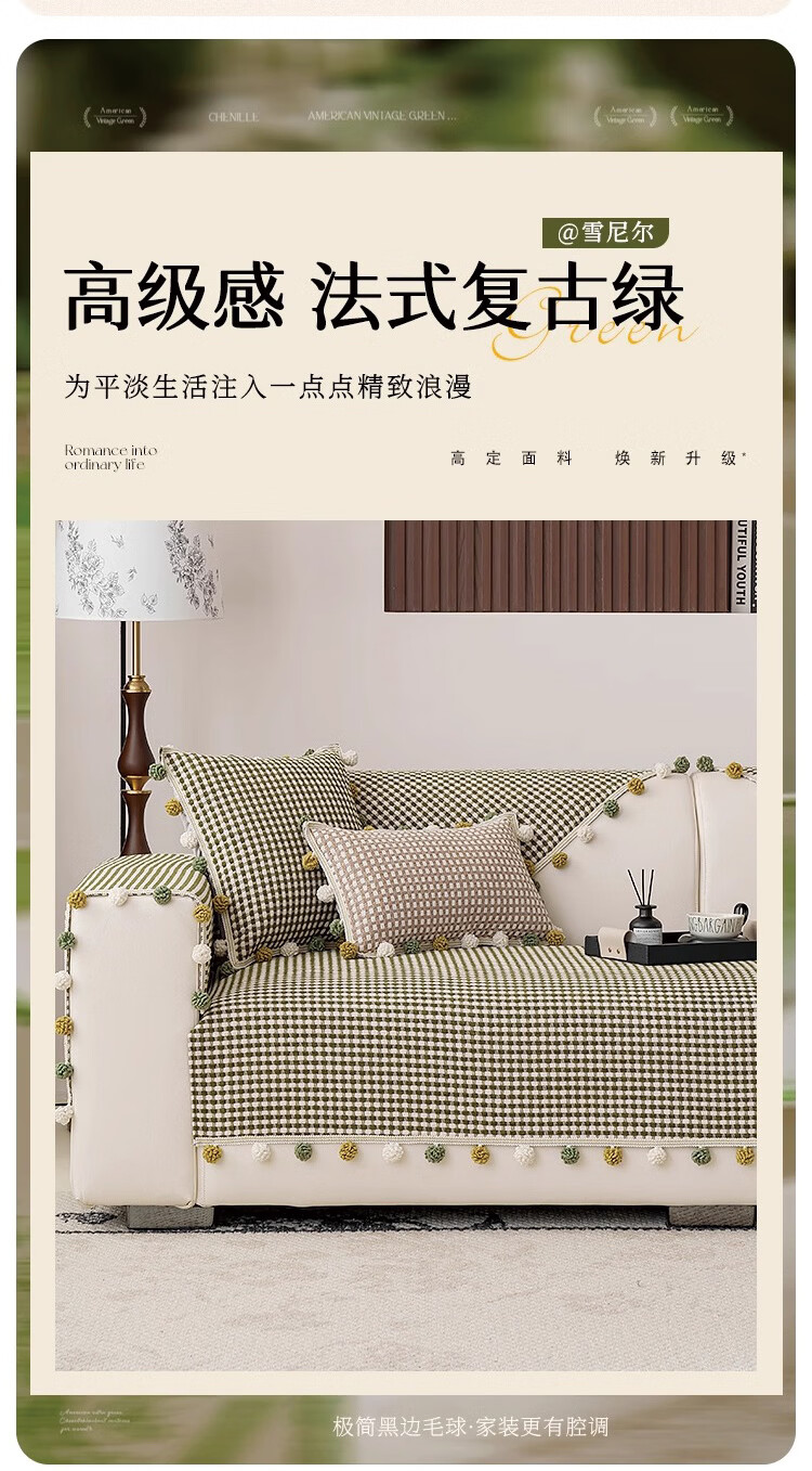 金拾美月防猫抓雪尼尔四季通用沙发垫2026新款高级感坐垫套罩防滑盖布巾 直边素雅-绿色 70cm*70cm