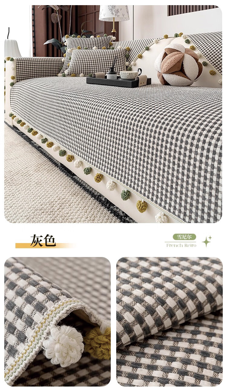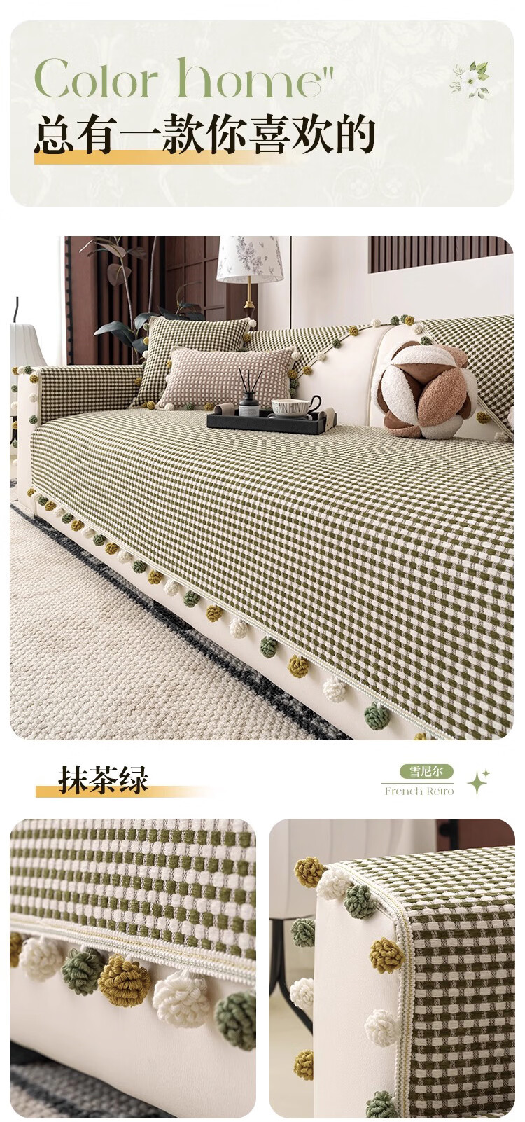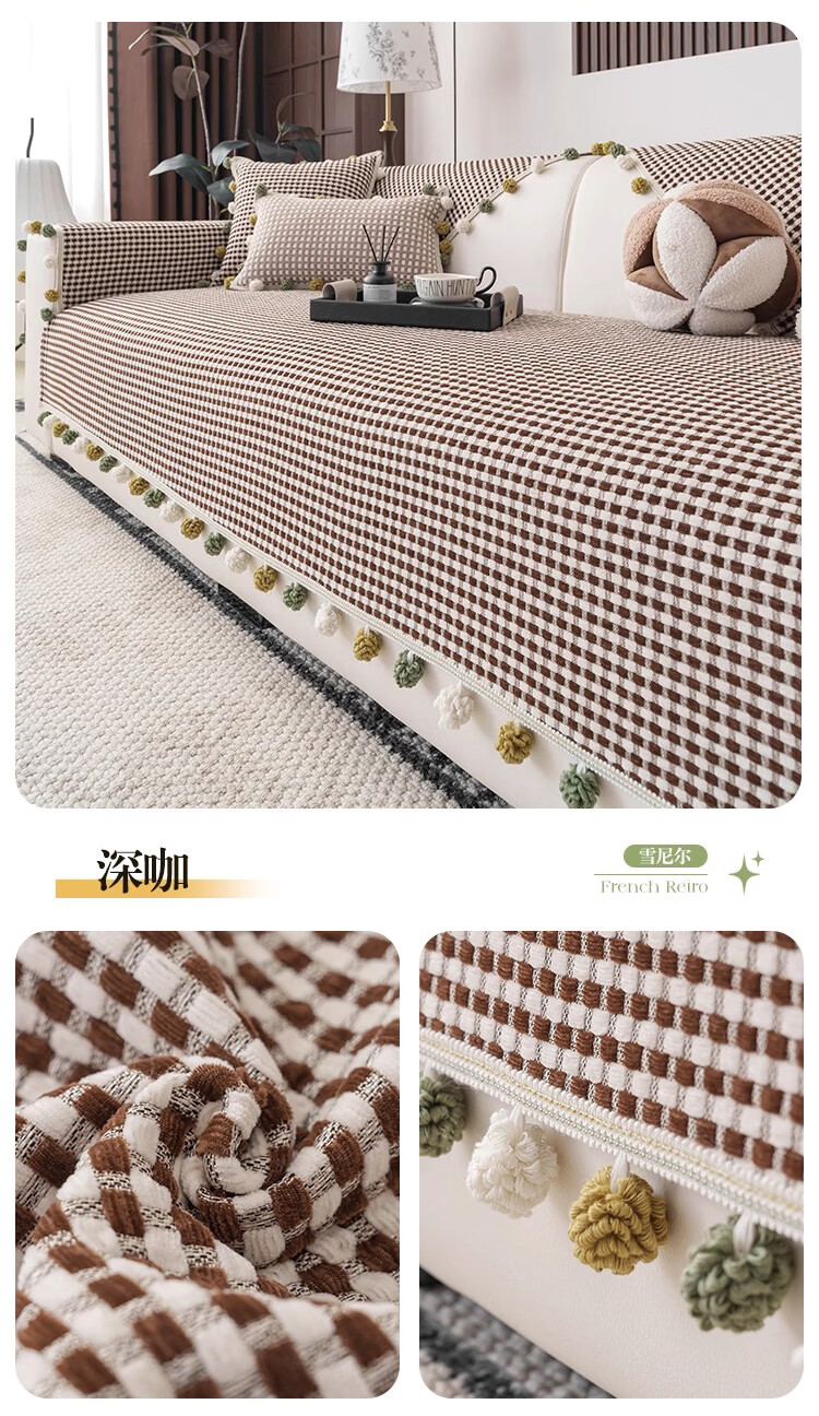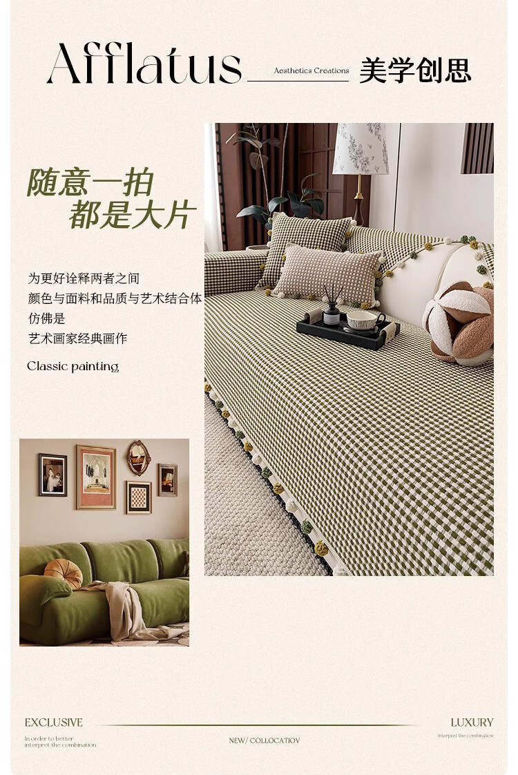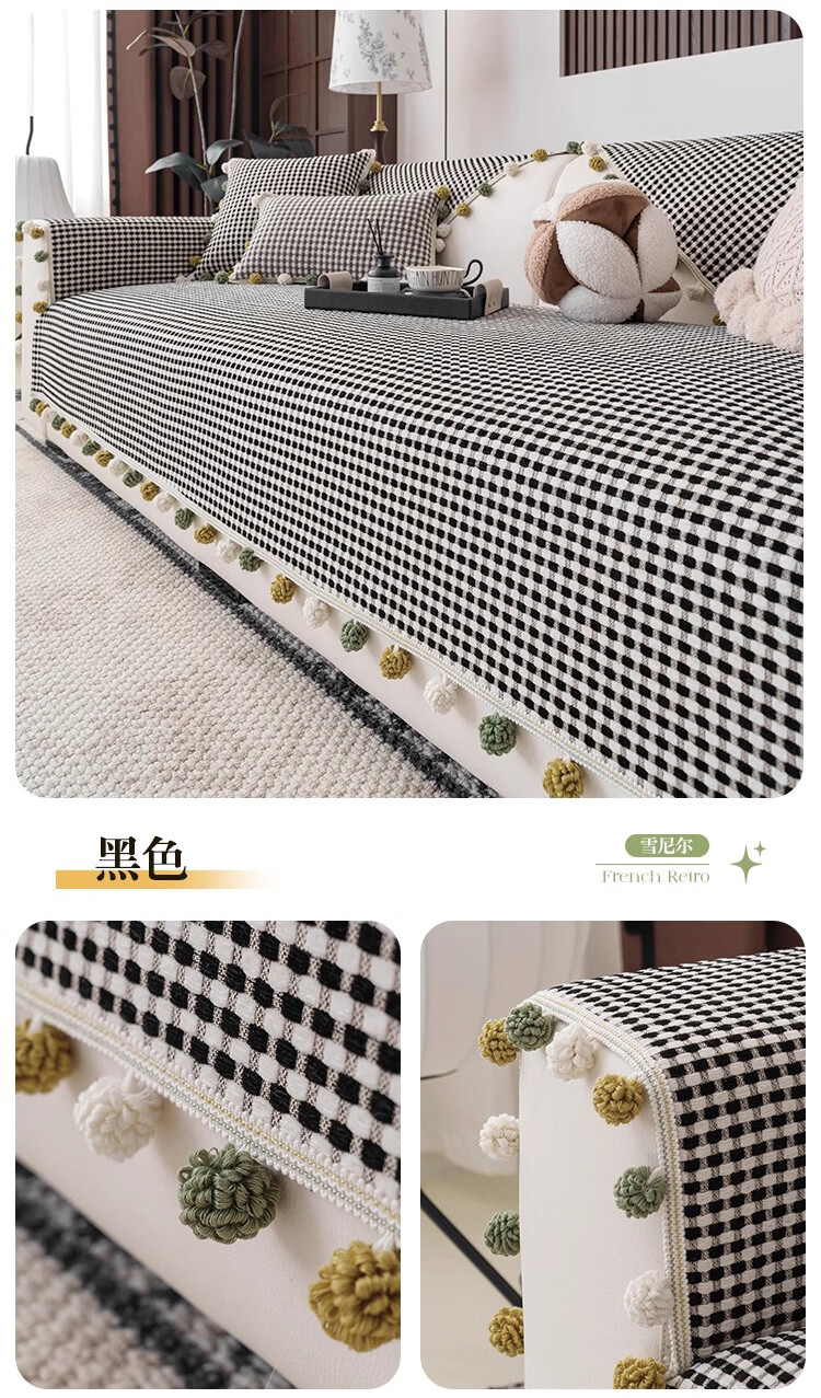金拾美月防猫抓雪尼尔四季通用沙发垫2026新款高级感坐垫套罩防滑盖布巾 直边素雅-绿色 70cm*70cm