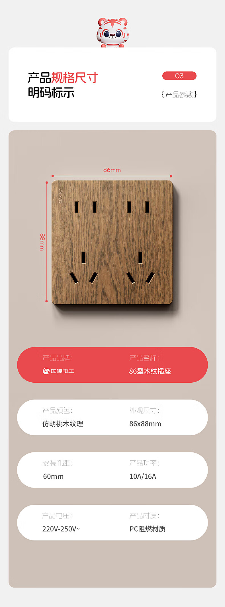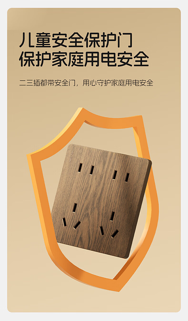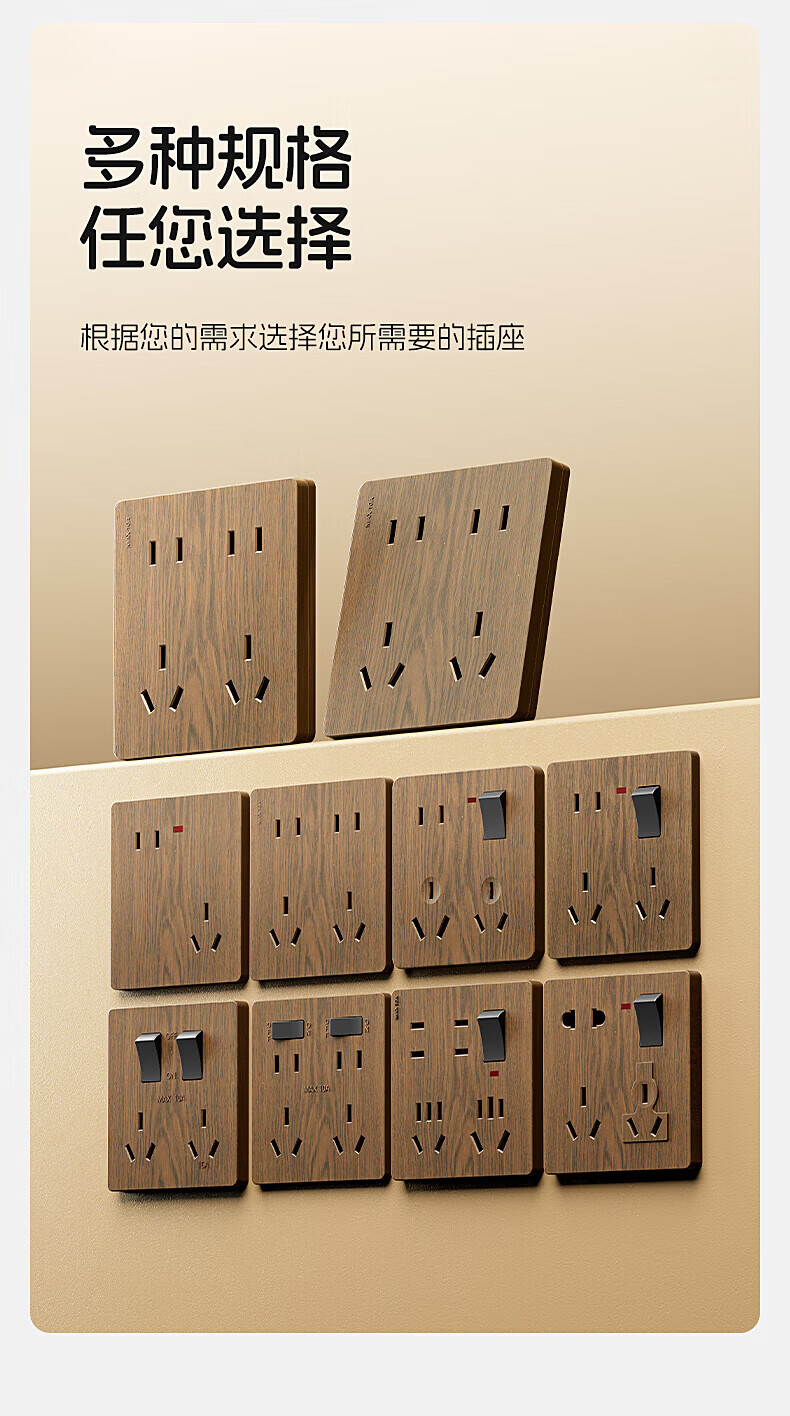 国际电工(FDD)复古木纹开关插座86型暗装面板中古风民宿卧室新国标十孔电源插板 胡桃木纹错位五孔