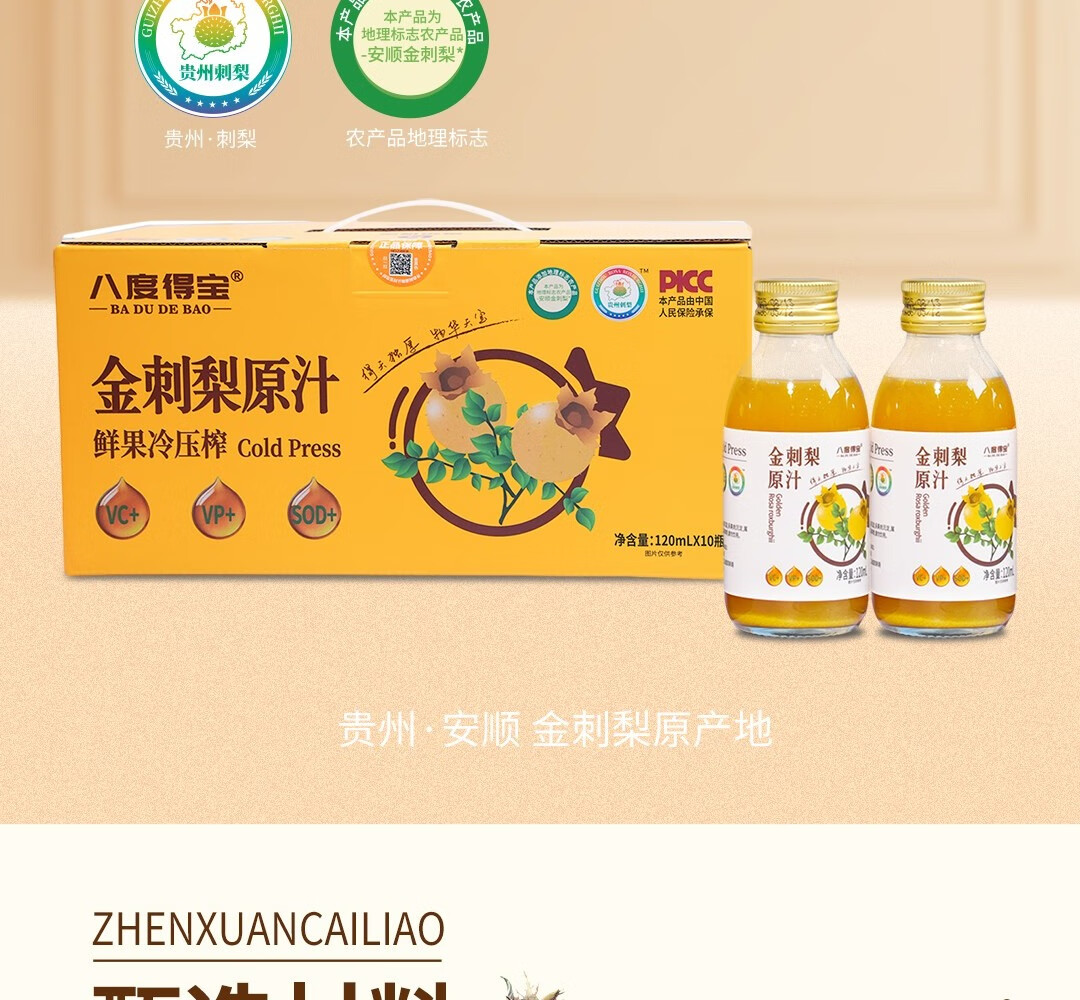 八度得宝金刺梨汁 原汁贵州特产鲜果原浆果汁原液 nfc果汁饮料整箱纯天然 【超值价】120ml*20瓶*1箱