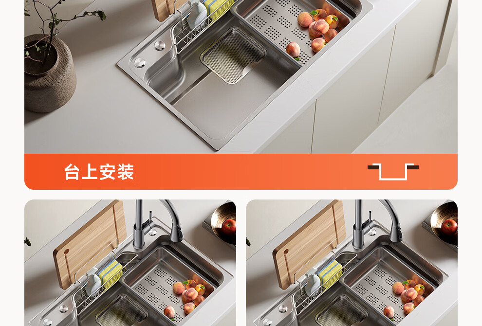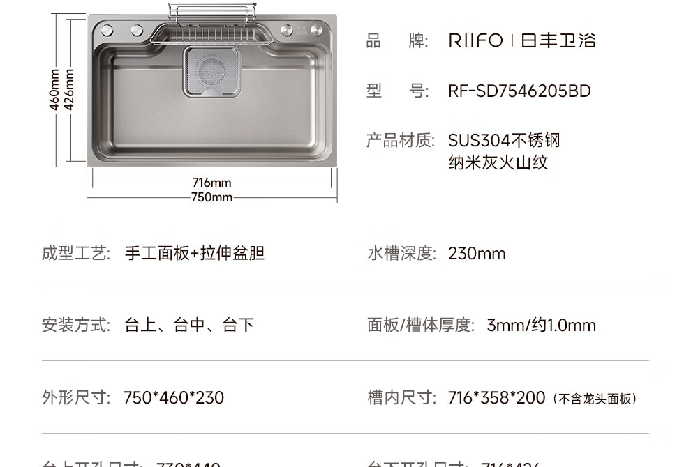 日丰厨房水槽集渣日式大单槽加厚304不锈钢家用洗菜盆台下洗碗池 「旗舰版|新品」日式集渣75x46|不含龙头