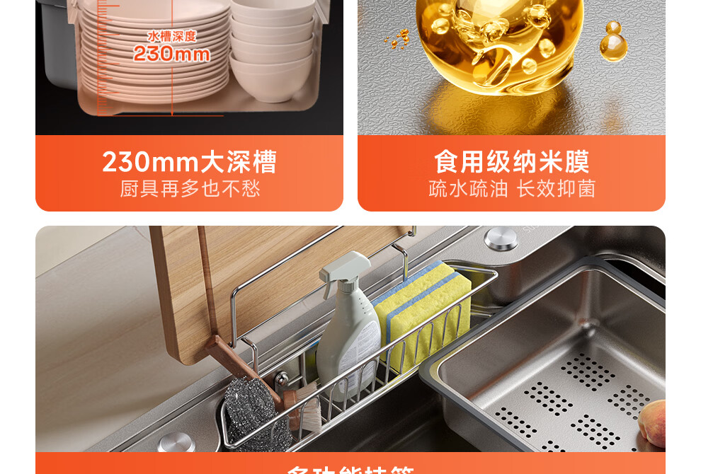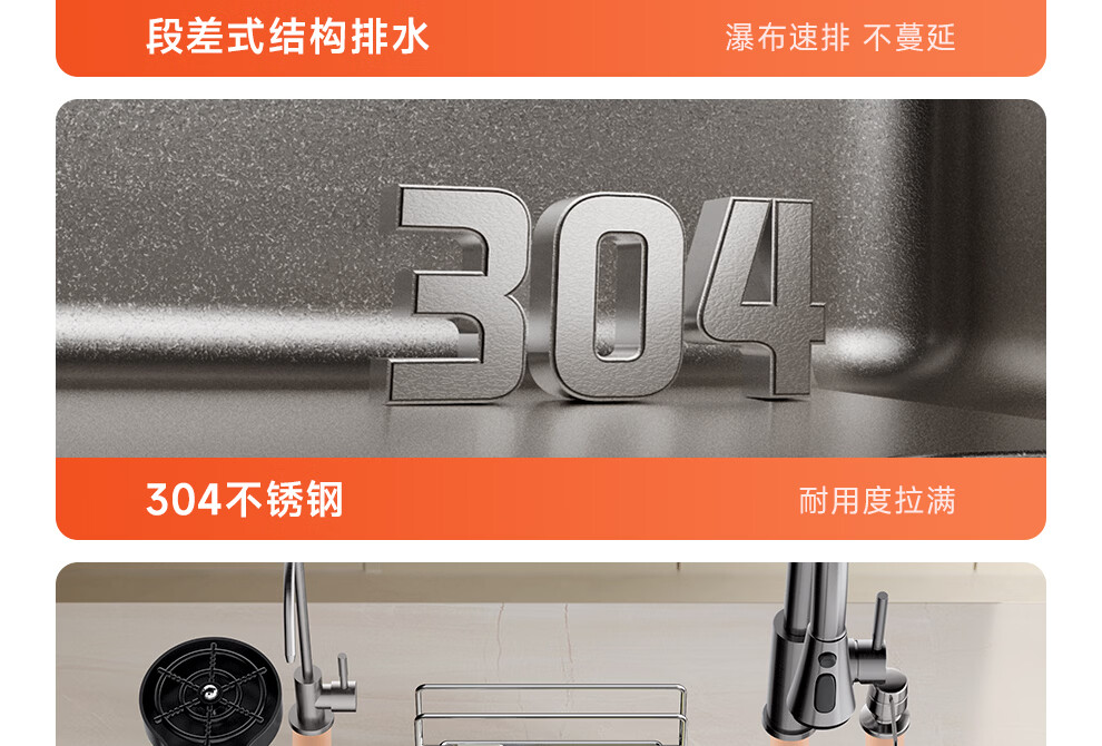 箭牌聚宝盆侧排洗菜盆水槽大单槽厨房304不锈钢纳米灰【焕新补贴15%】