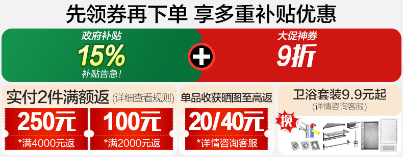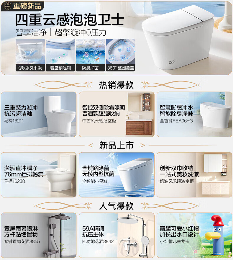 恒洁(HEGII)花洒淋浴套装 智能除垢方管贴墙琴键大置物台淋浴花洒套装 【双重自动除垢】956-333C-SH