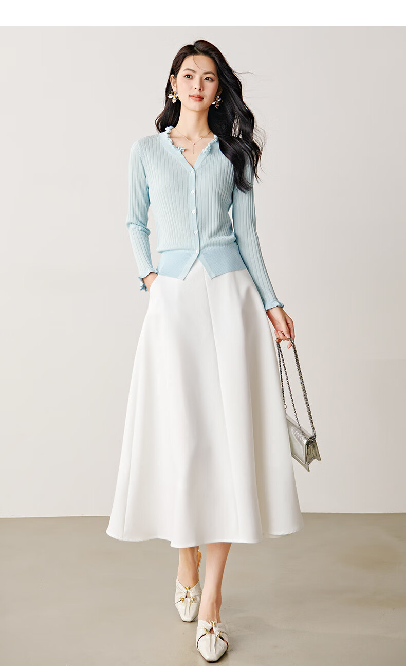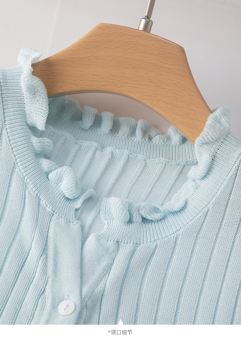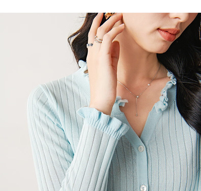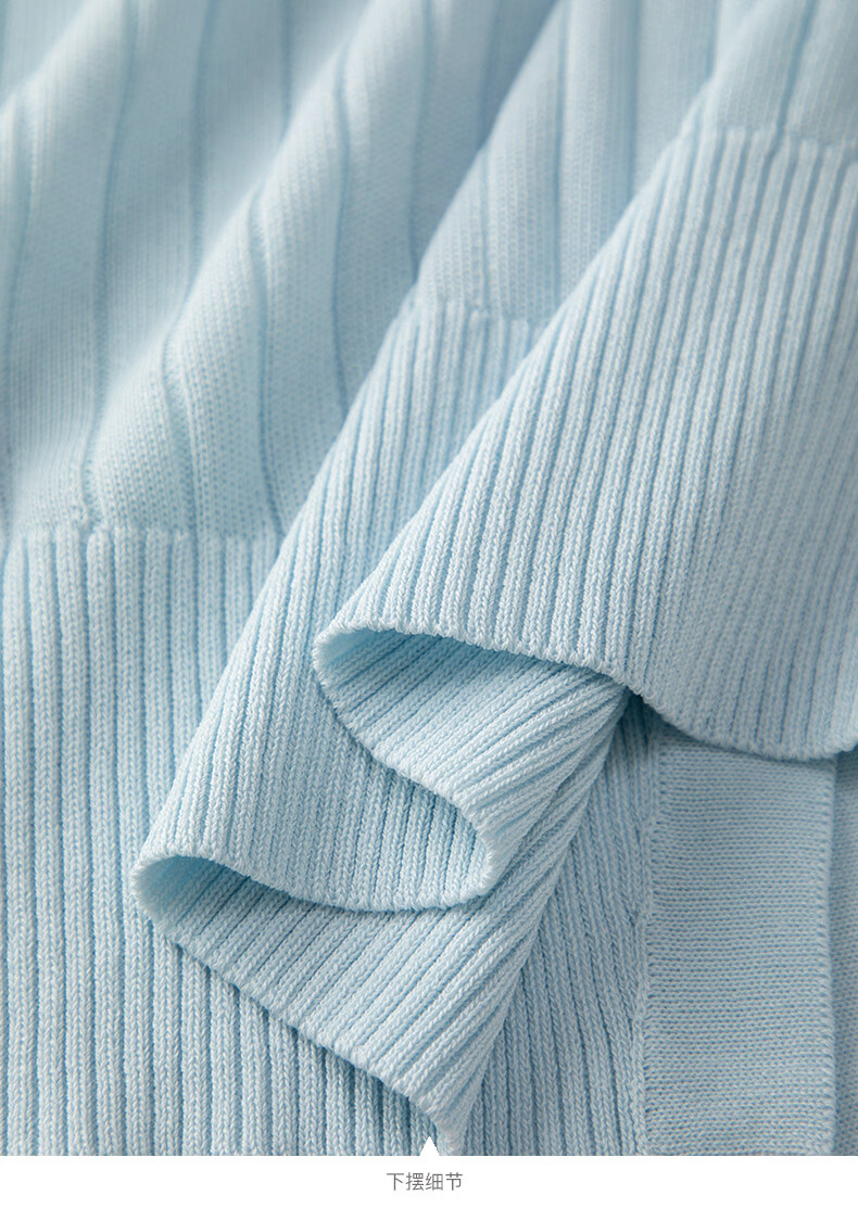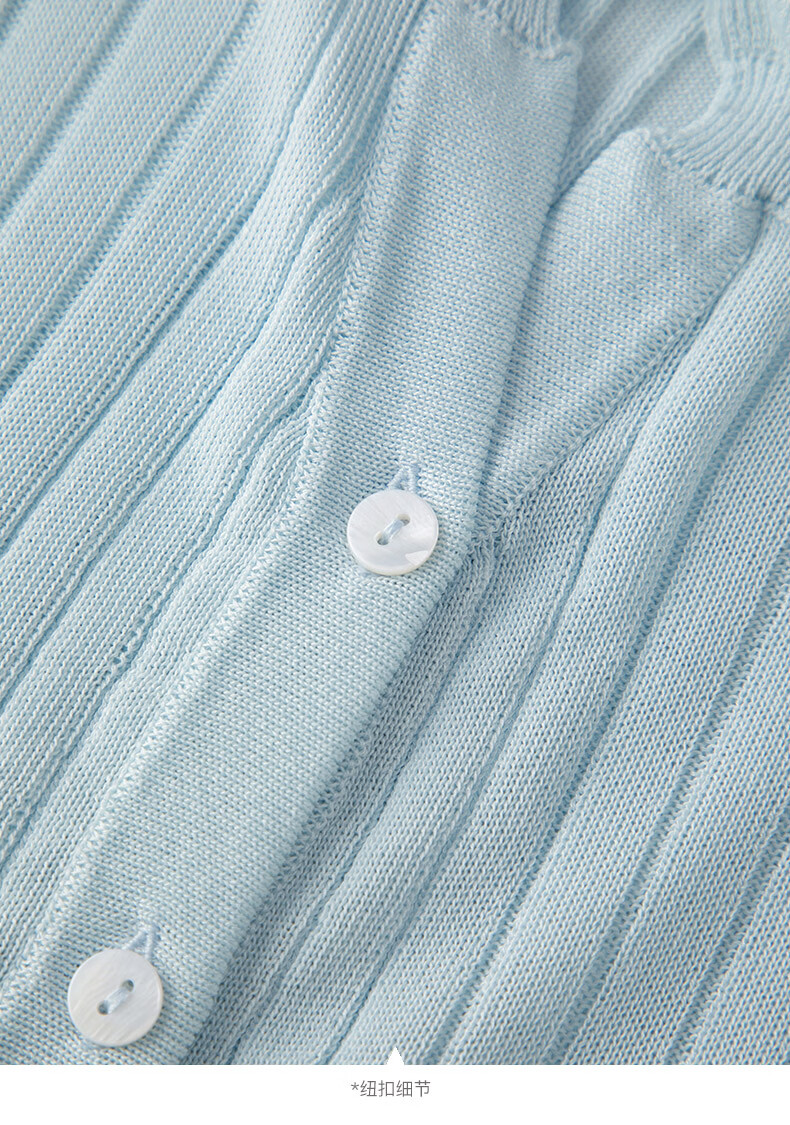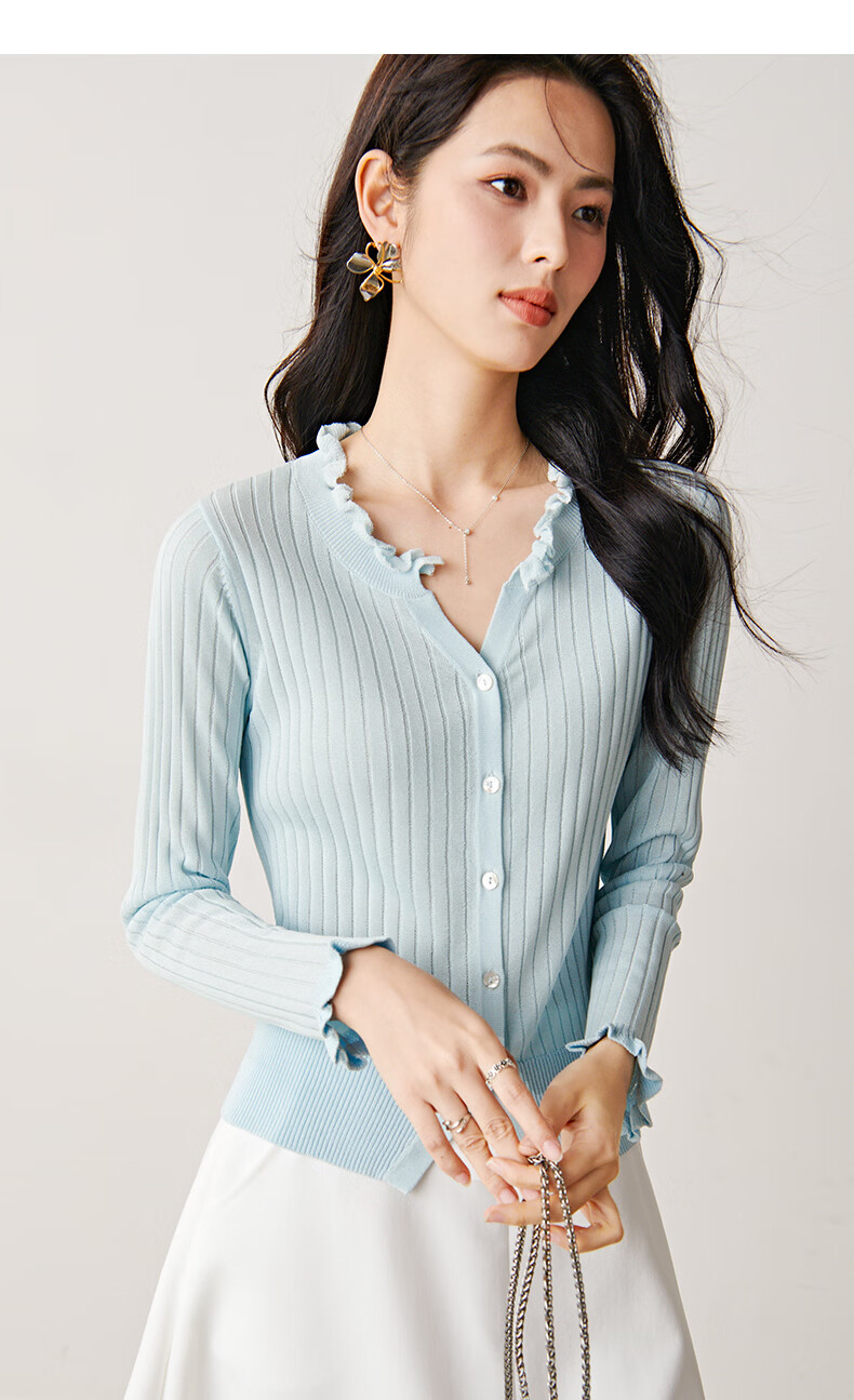晚白2026年春款清新温柔法式花边V领上衣显白竖坑条肌理感针织衫女 浅蓝色 M