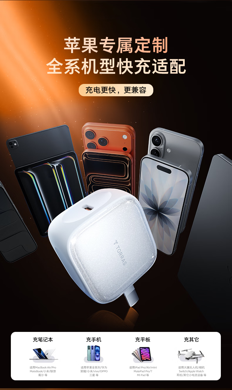图拉斯45W小冰充【官 方 正 品】苹果17充电器iPhone17Promax充电头Air氮化镓单头兼容40W适配原装块充