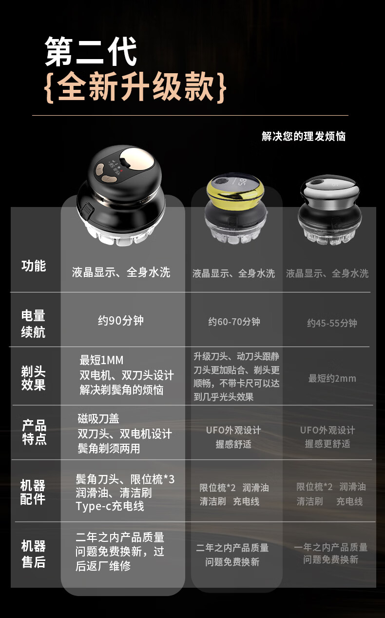 一尔自助理发器新品升级款理发神器自理发器家用男士剃光头寸头圆头全身水洗懒人飞碟理发器YLF-109