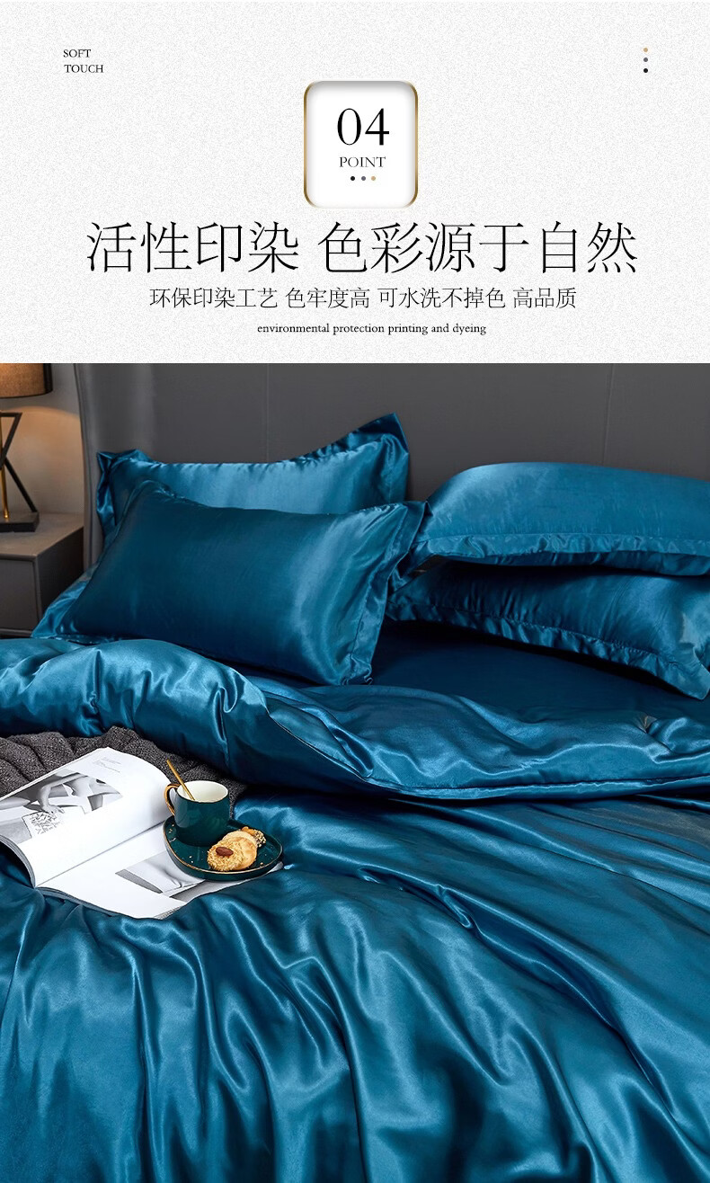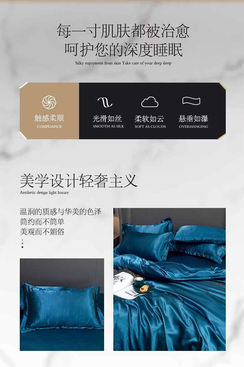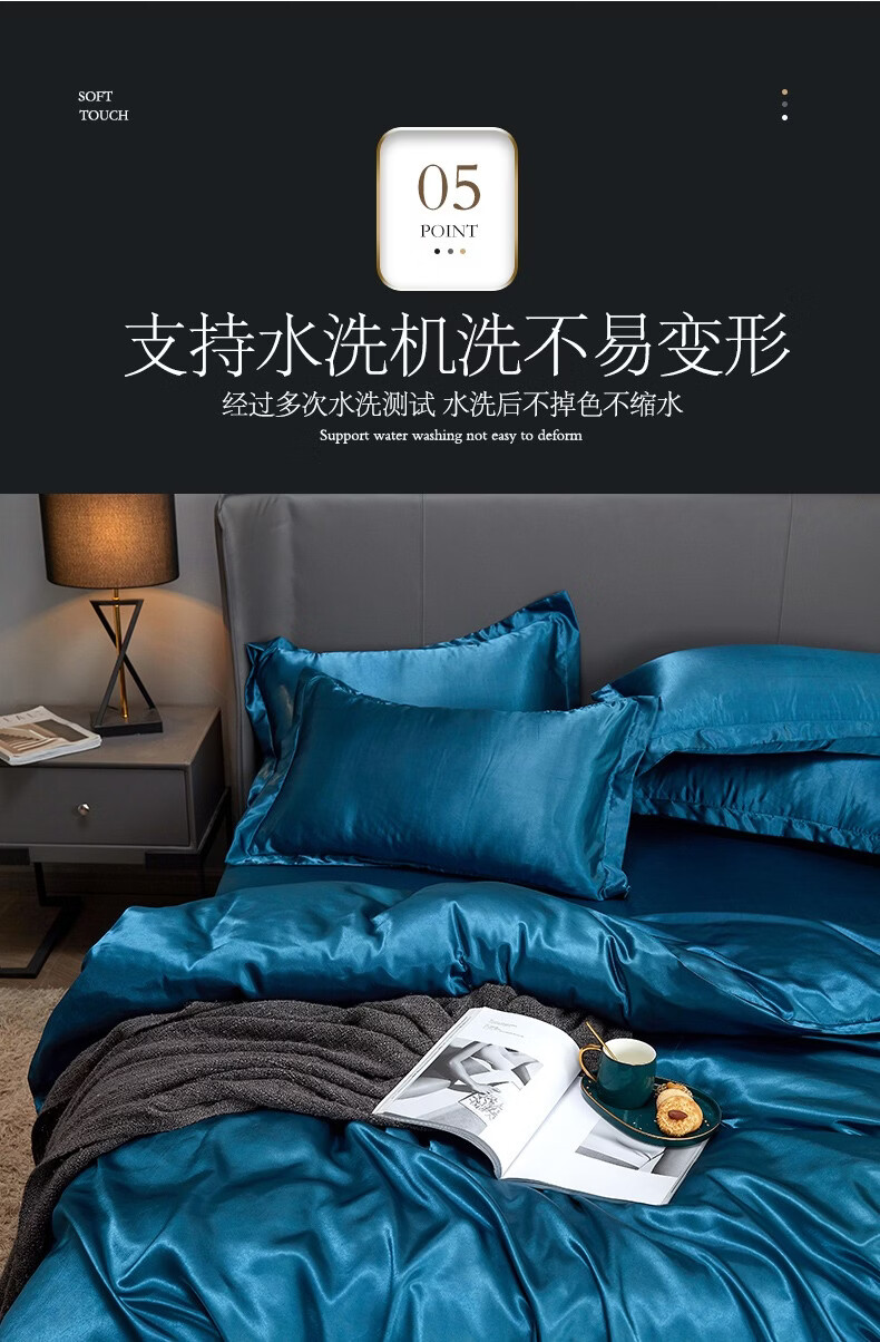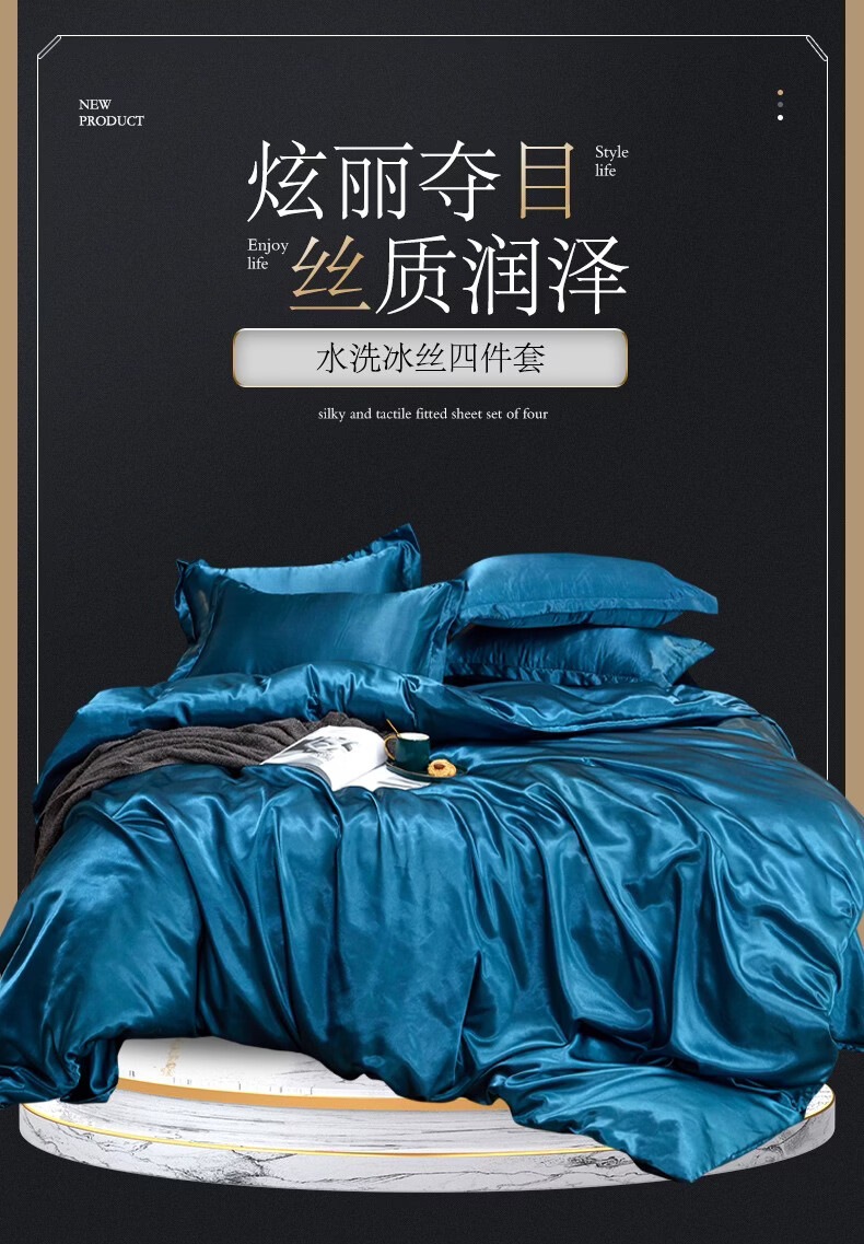 雅鹿春夏水洗真丝四件套冰丝夏季床上用品轻奢高级感床单被罩可水洗4 巴黎蓝 【一盖即凉 免开空调】 1.8m四件套 床笠款 (被套200*230cm)
