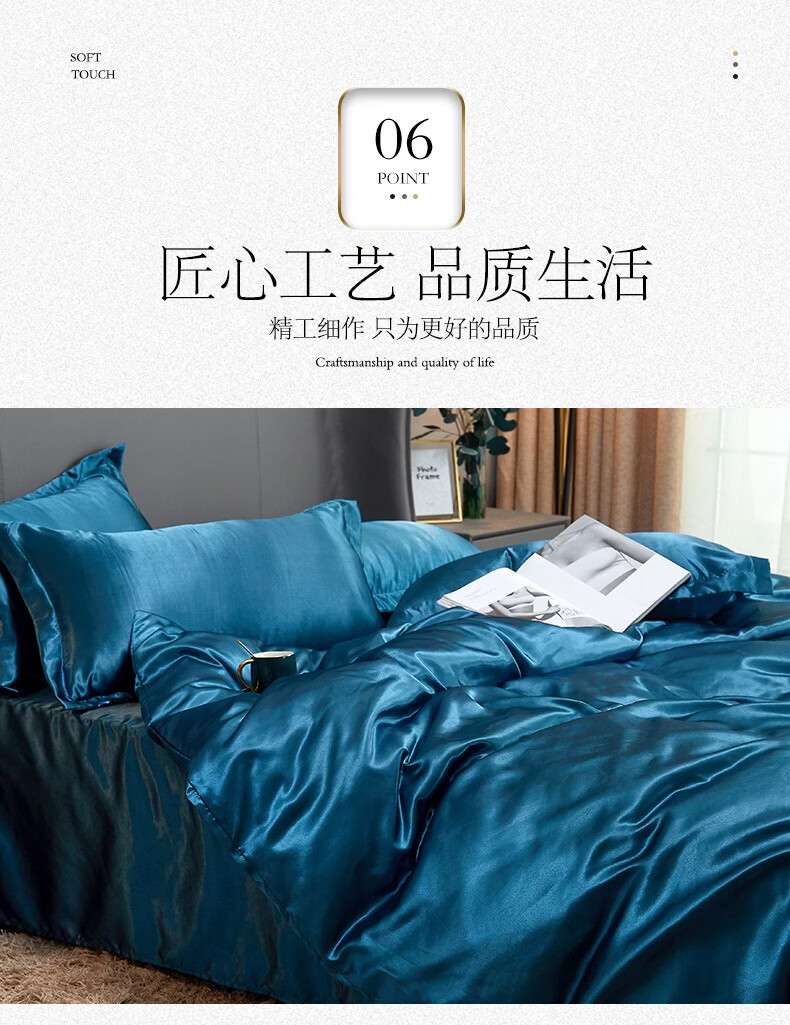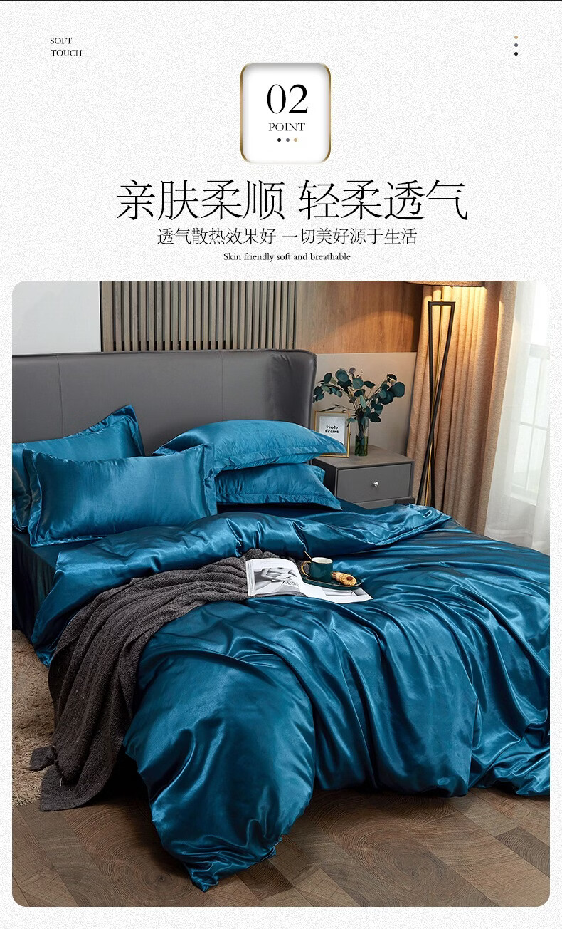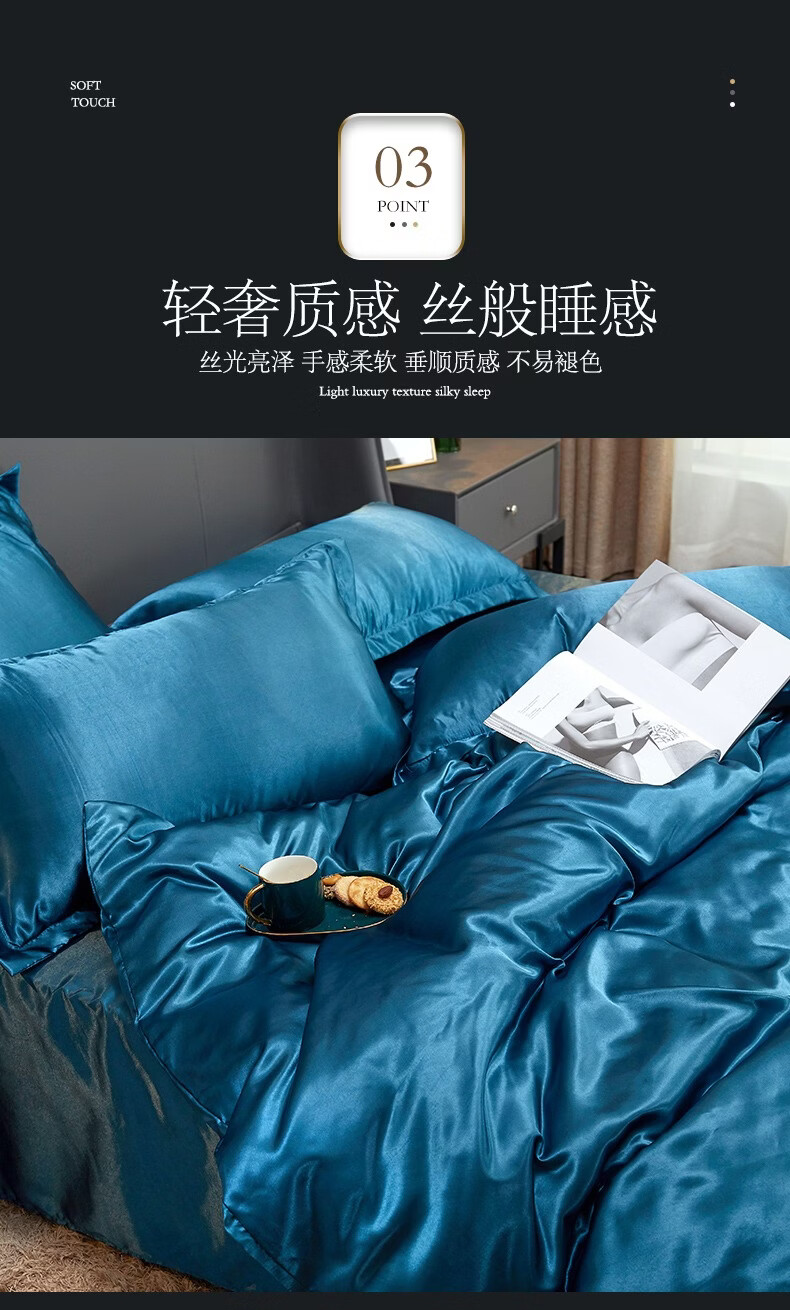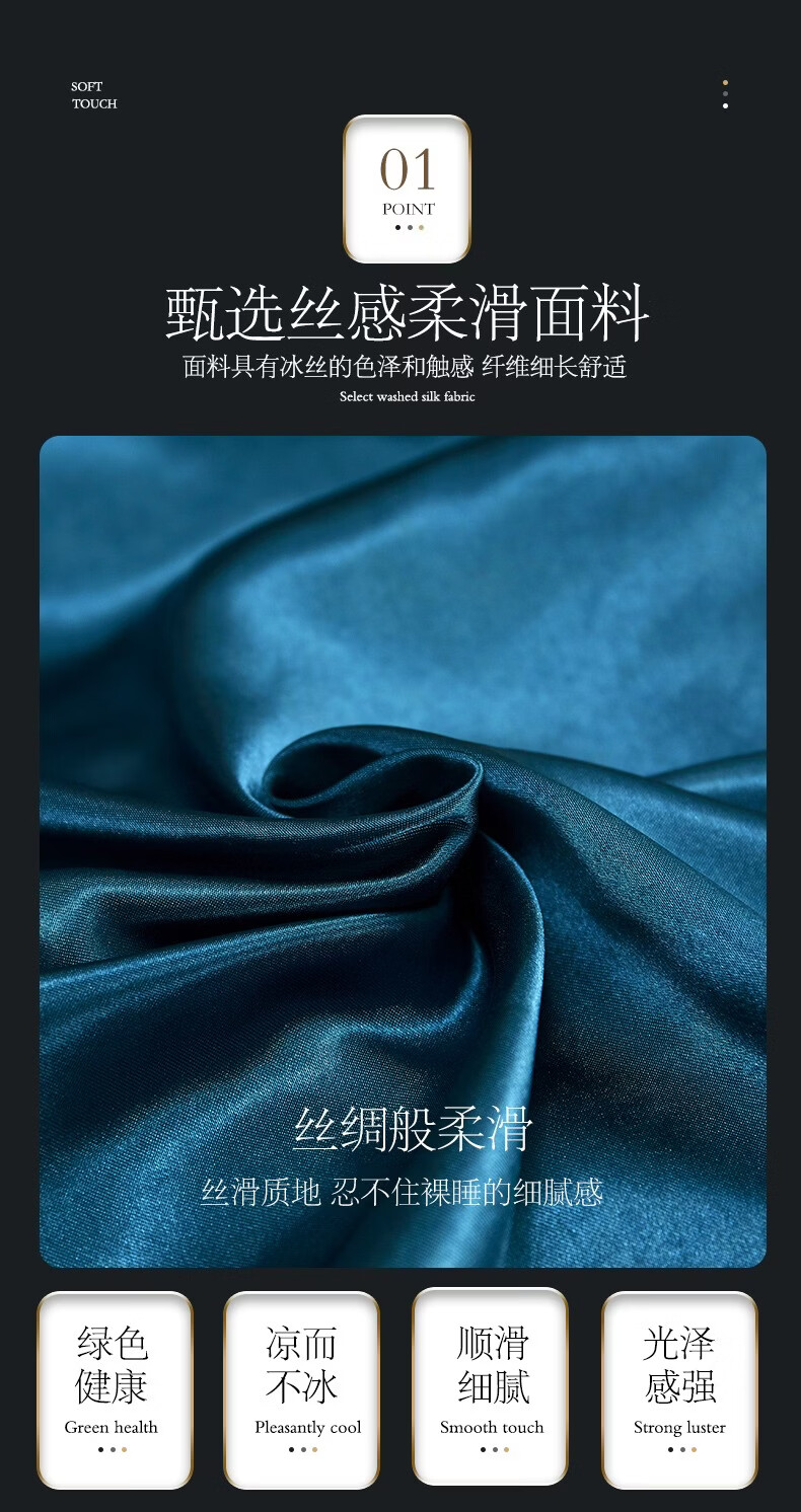 雅鹿春夏水洗真丝四件套冰丝夏季床上用品轻奢高级感床单被罩可水洗4 巴黎蓝 【一盖即凉 免开空调】 1.8m四件套 床笠款 (被套200*230cm)