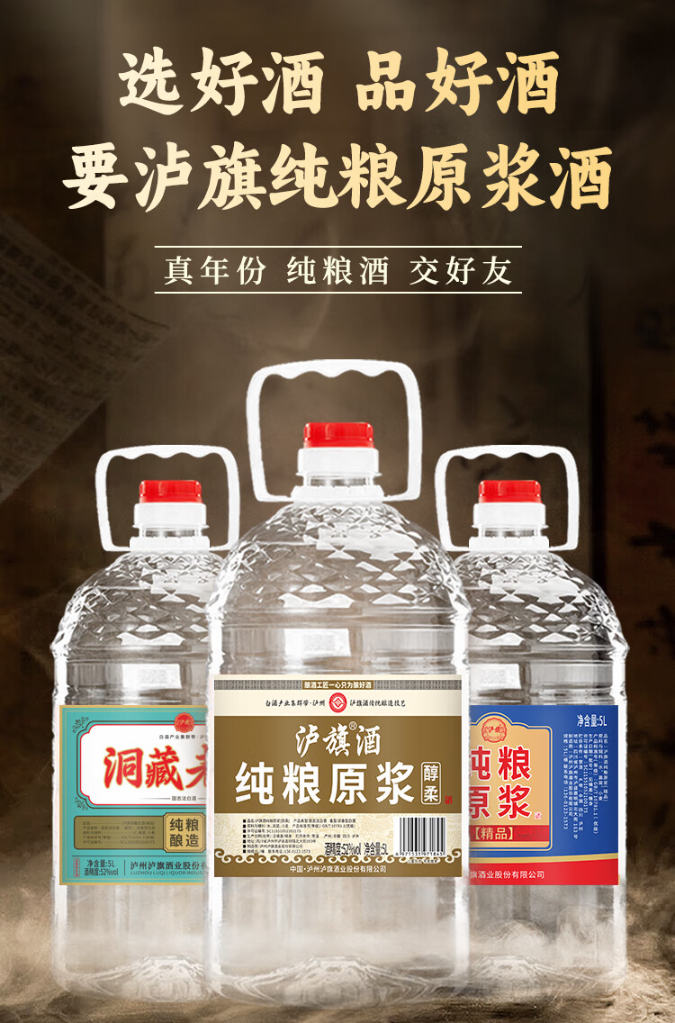 泸旗高粱酒桶装散装泡酒白酒 浓香型纯粮食白酒 52度 5L 1桶 纯粮原浆【醇柔】