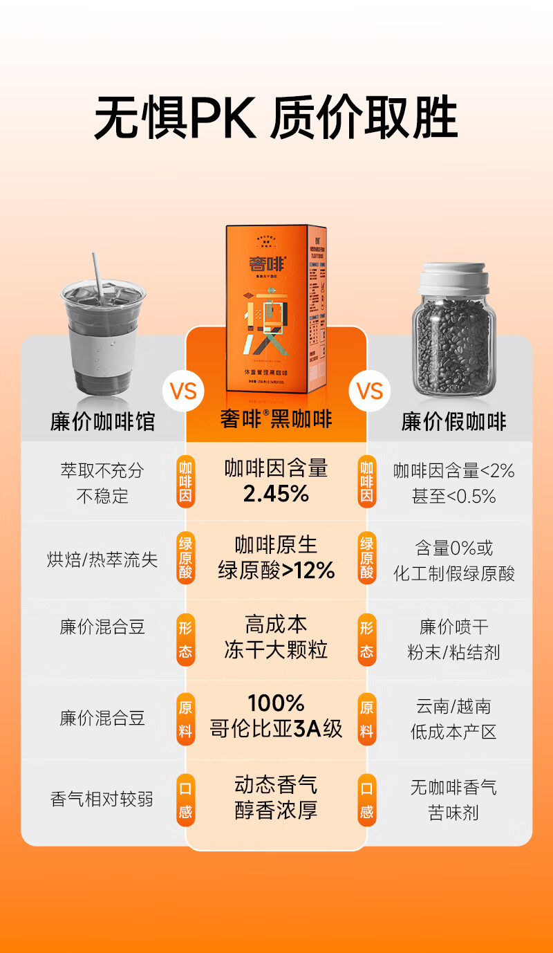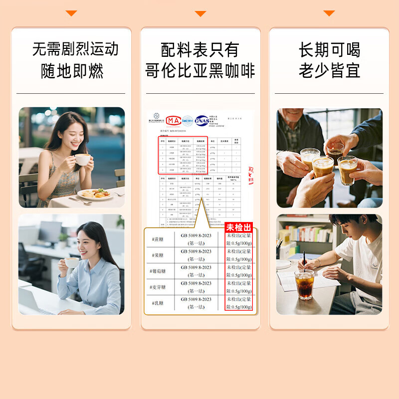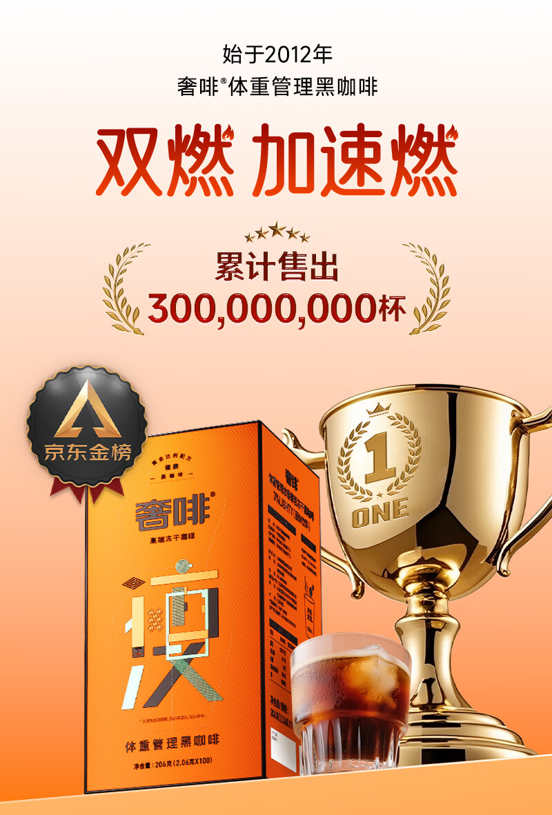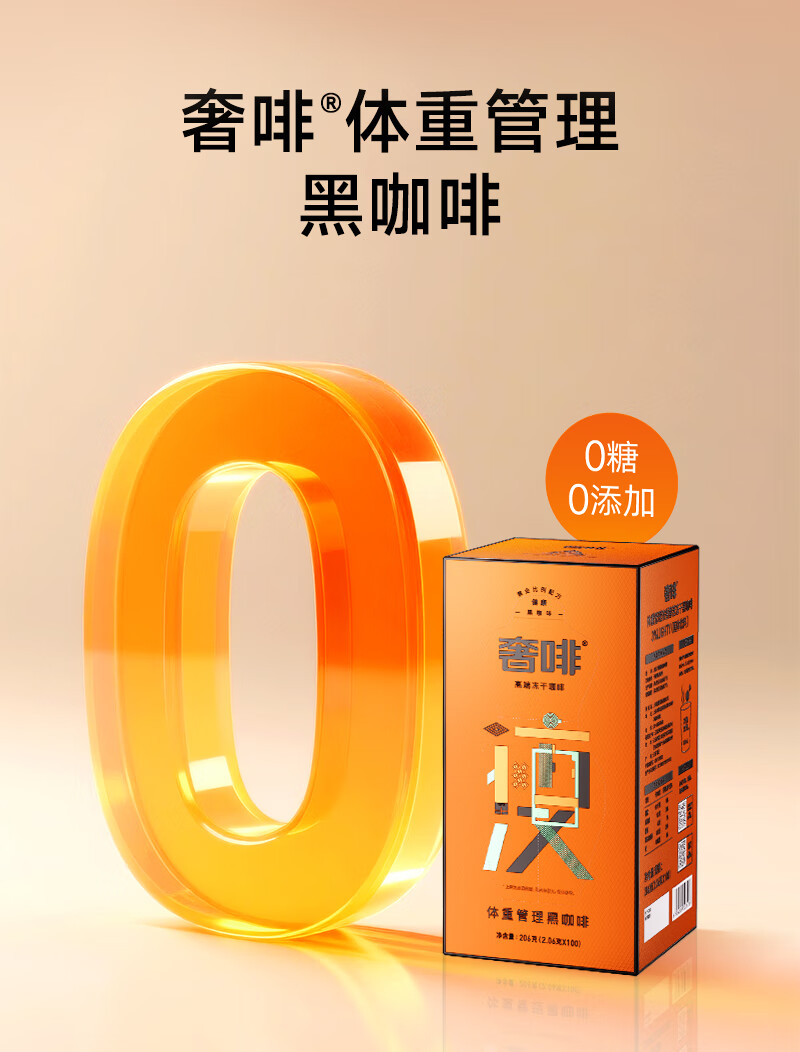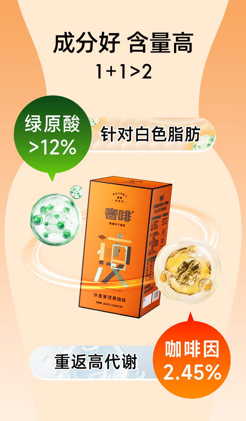 奢啡加速燃高端体重管理冻干黑咖啡瘦健康饮料无糖0糖0添加纯咖啡豆粉 绿原酸|加速燃腰2.06g*100杯